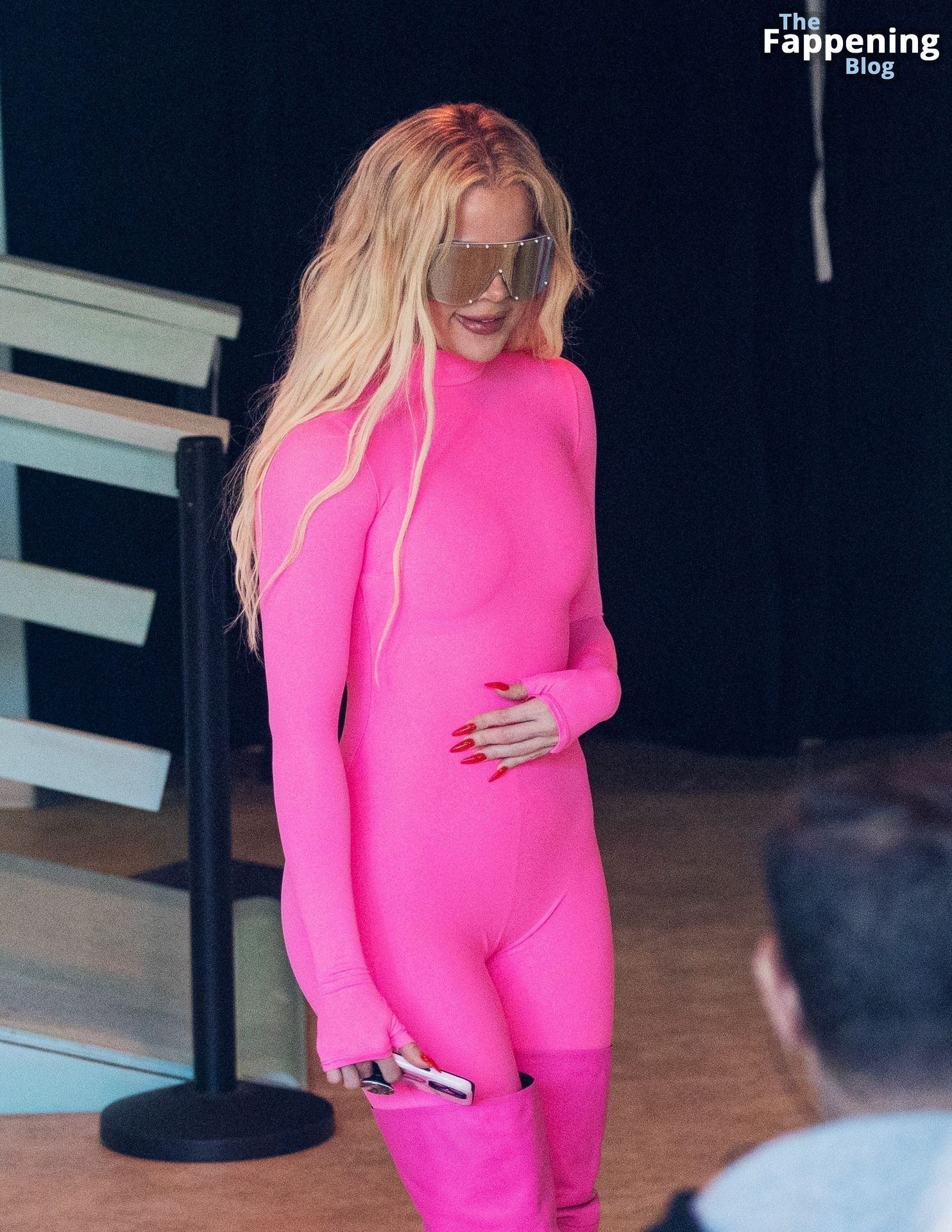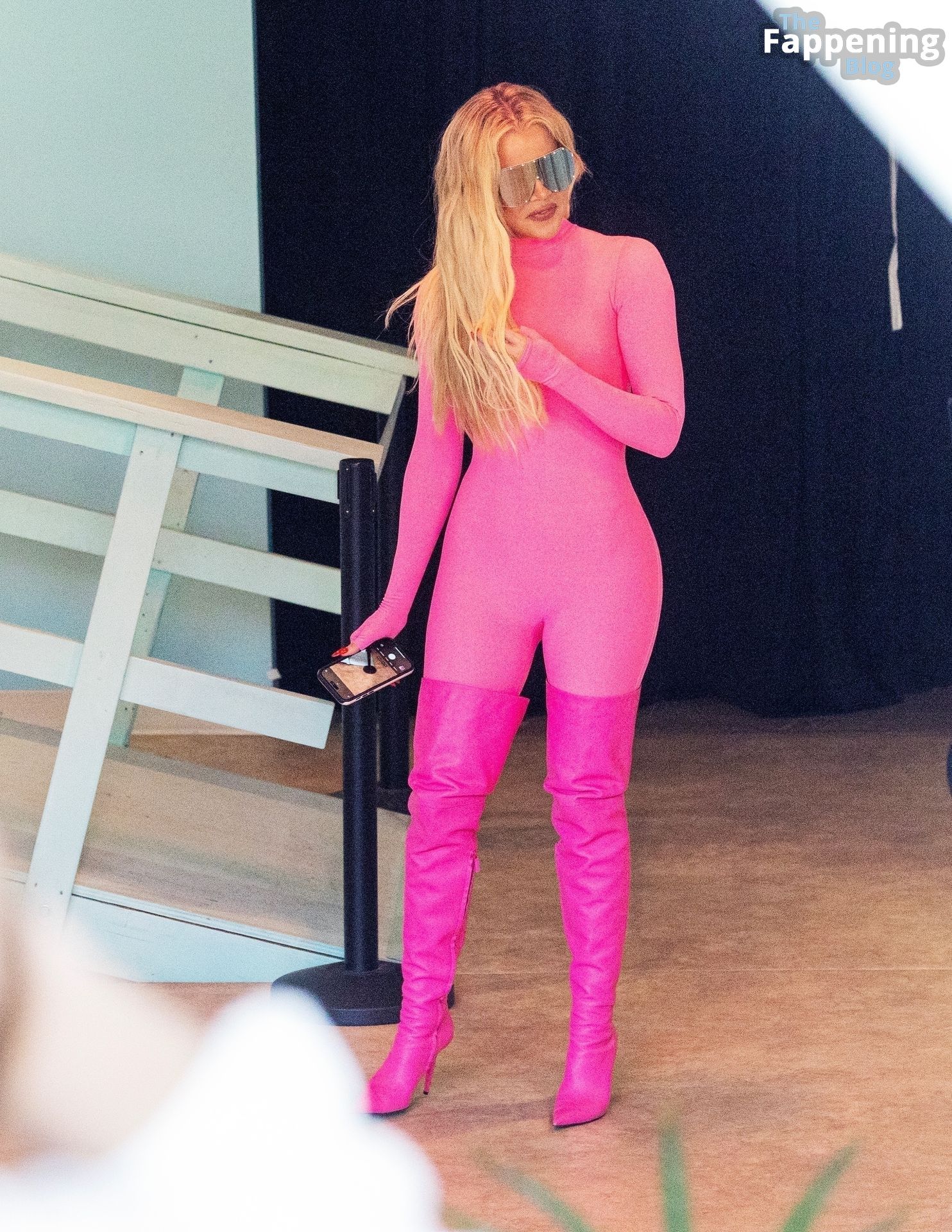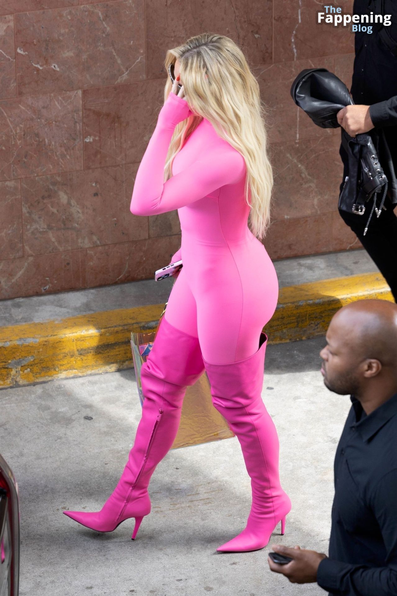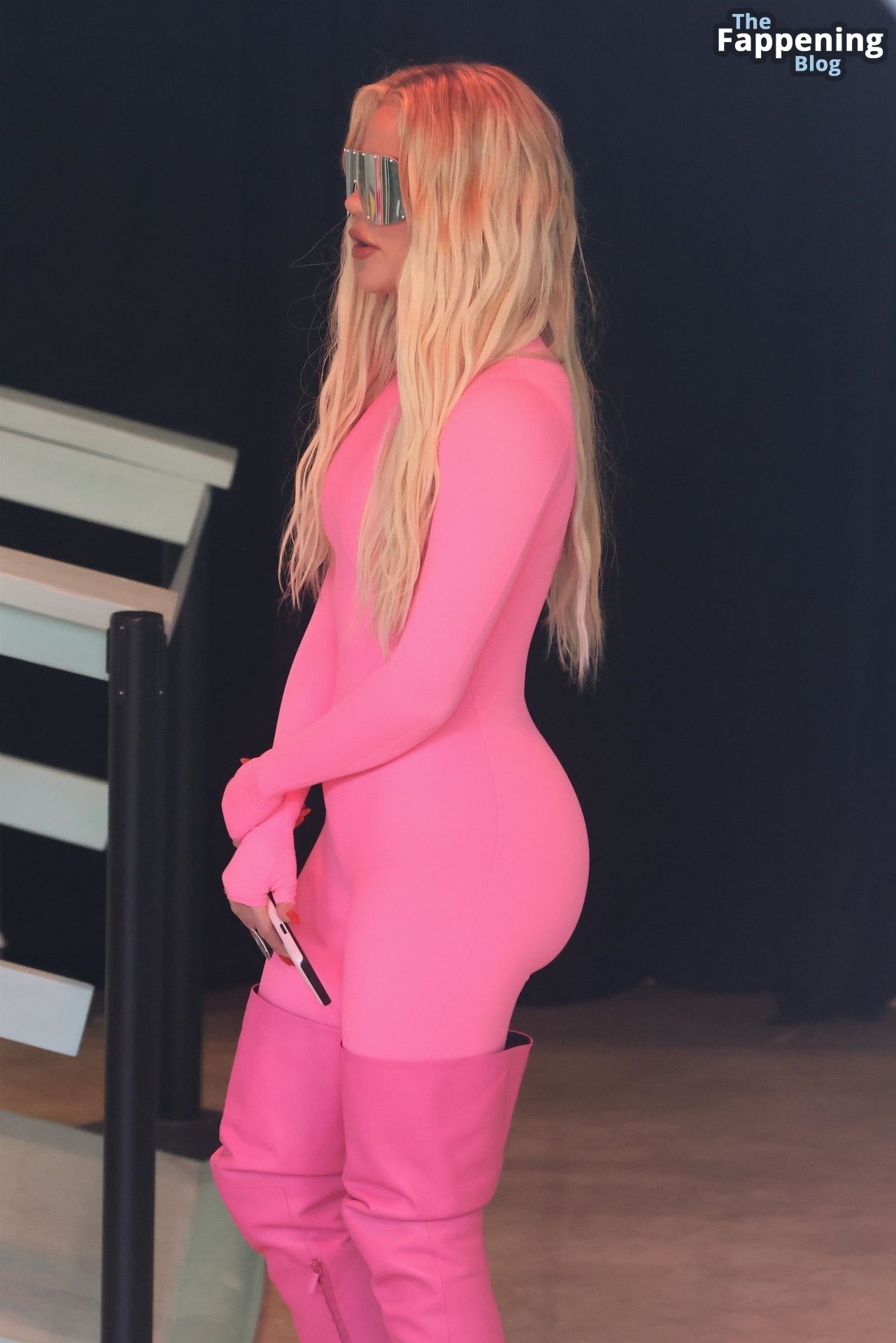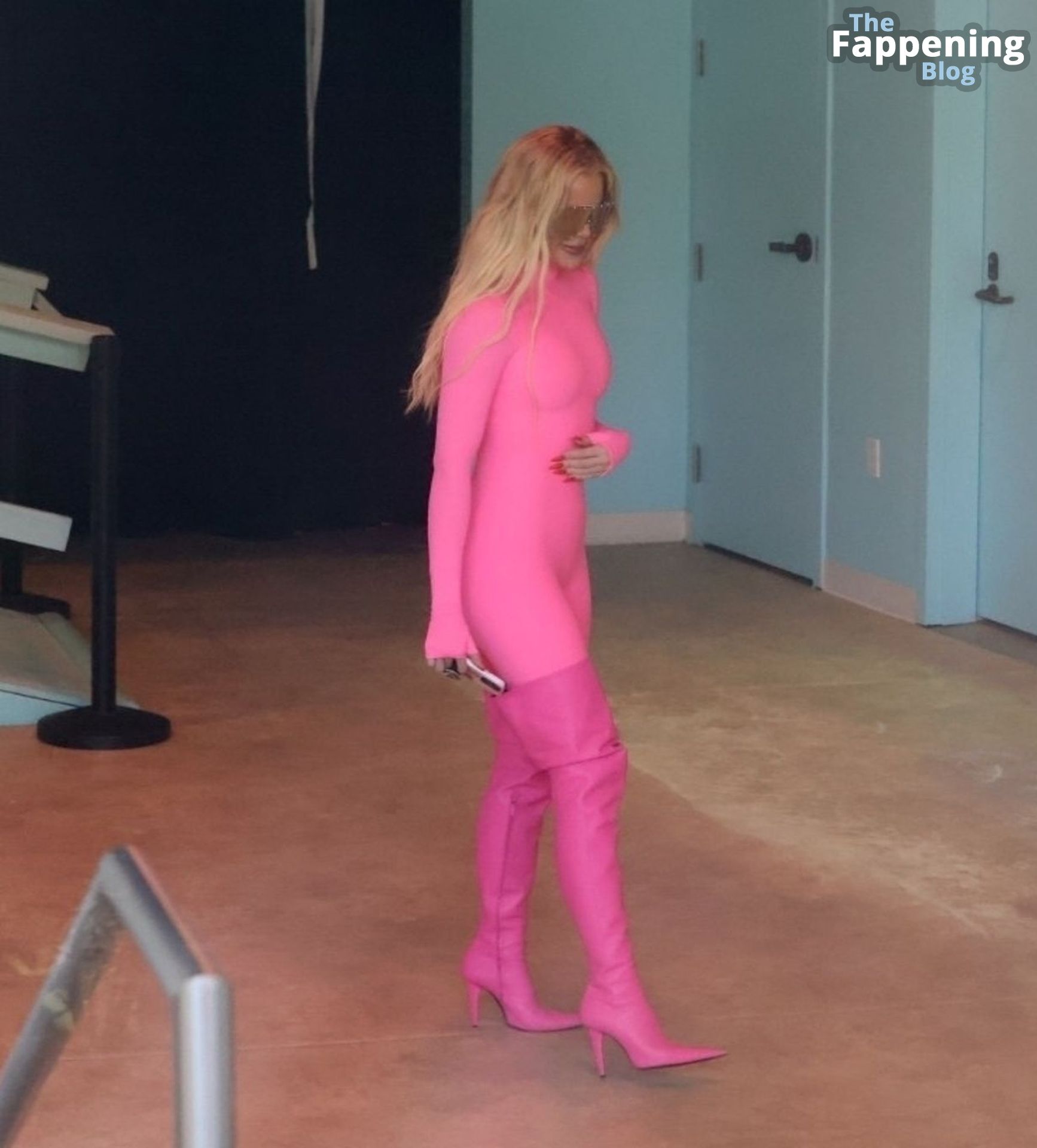 Khloe luce un conjunto rosa de pies a cabeza, y sus hijos están todos coordinados en el mismo color. Mientras tanto, Kim se estiliza con un elegante atuendo negro y muestra su apoyo a su hermana mientras se van del lugar.