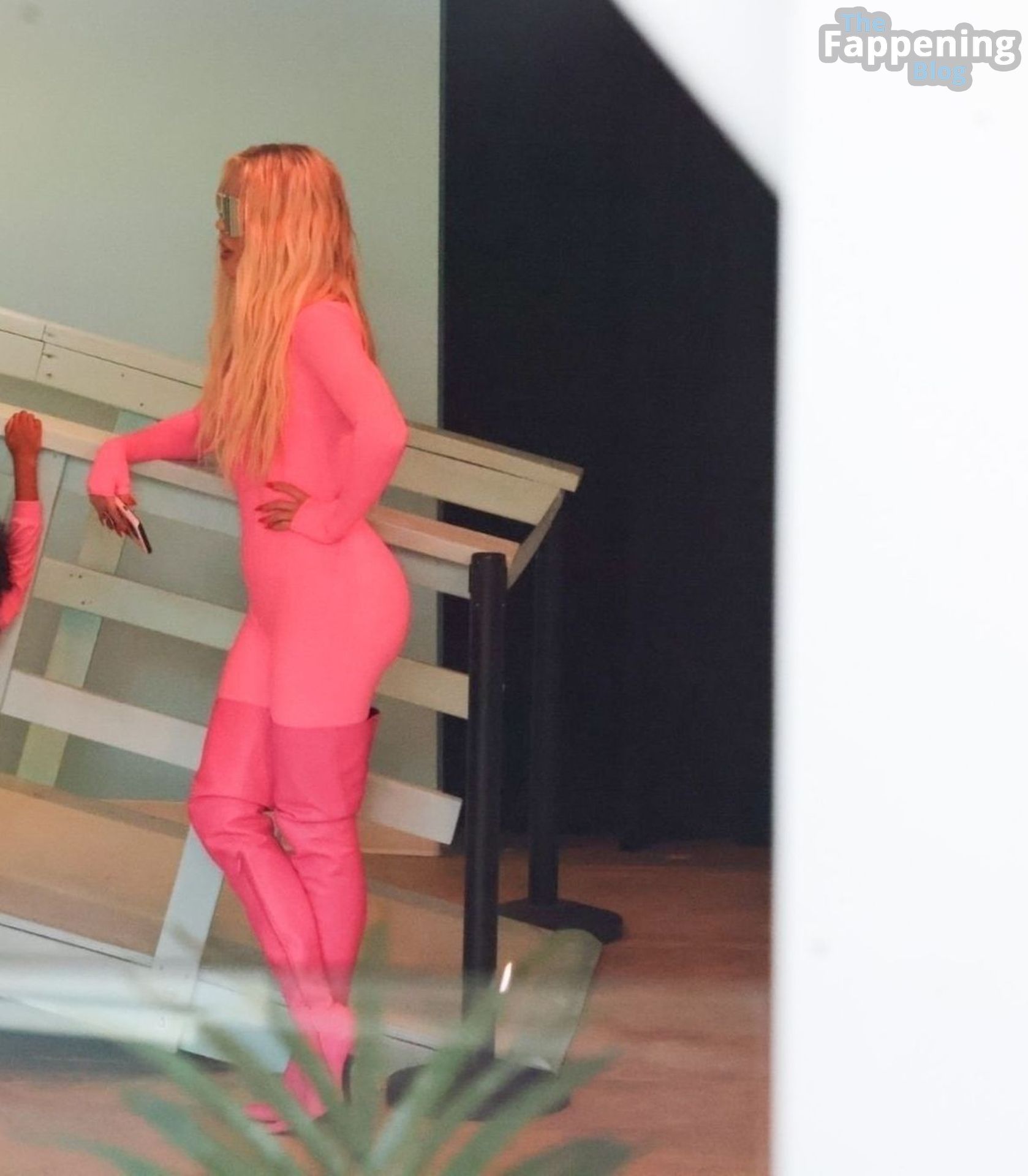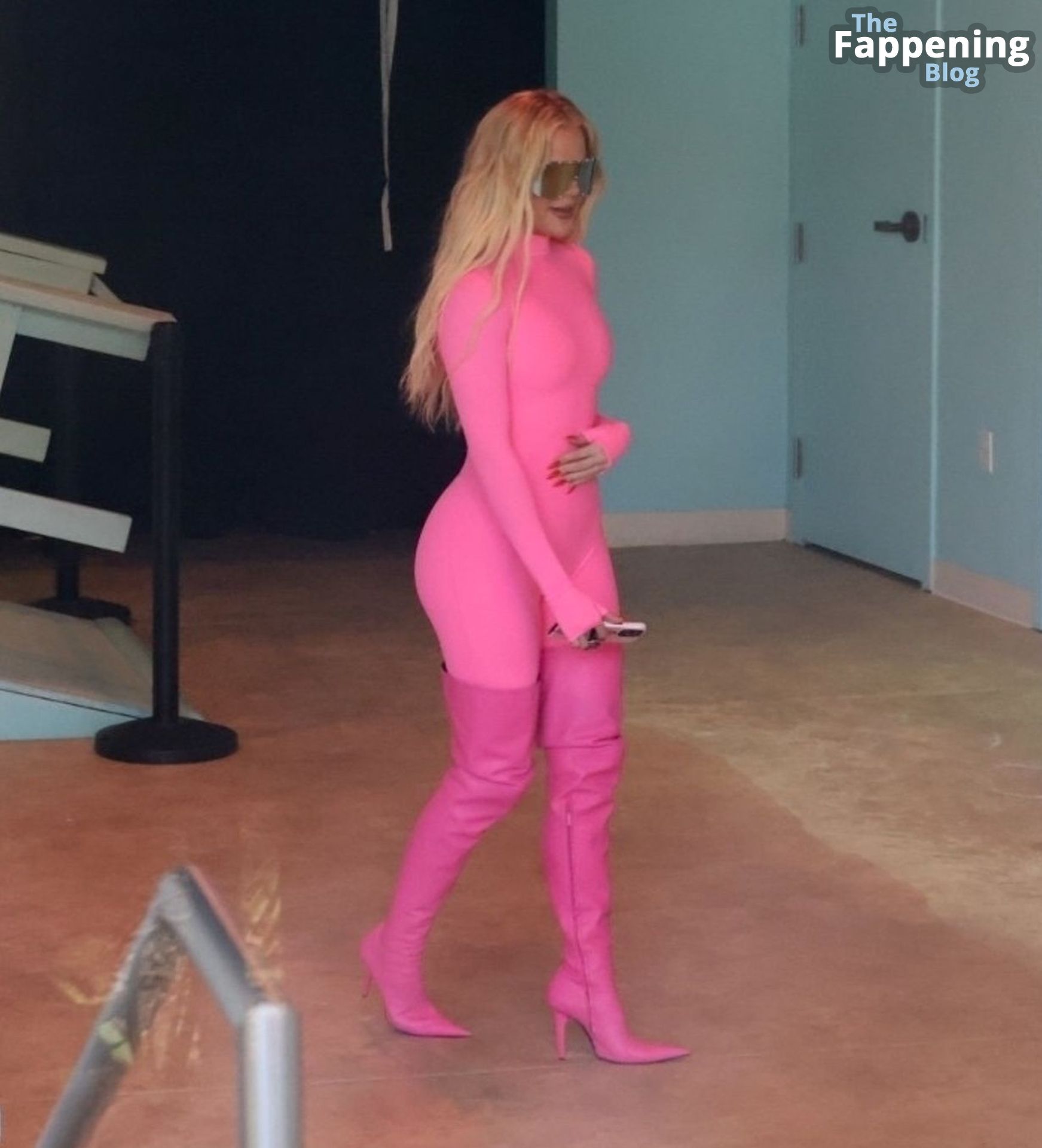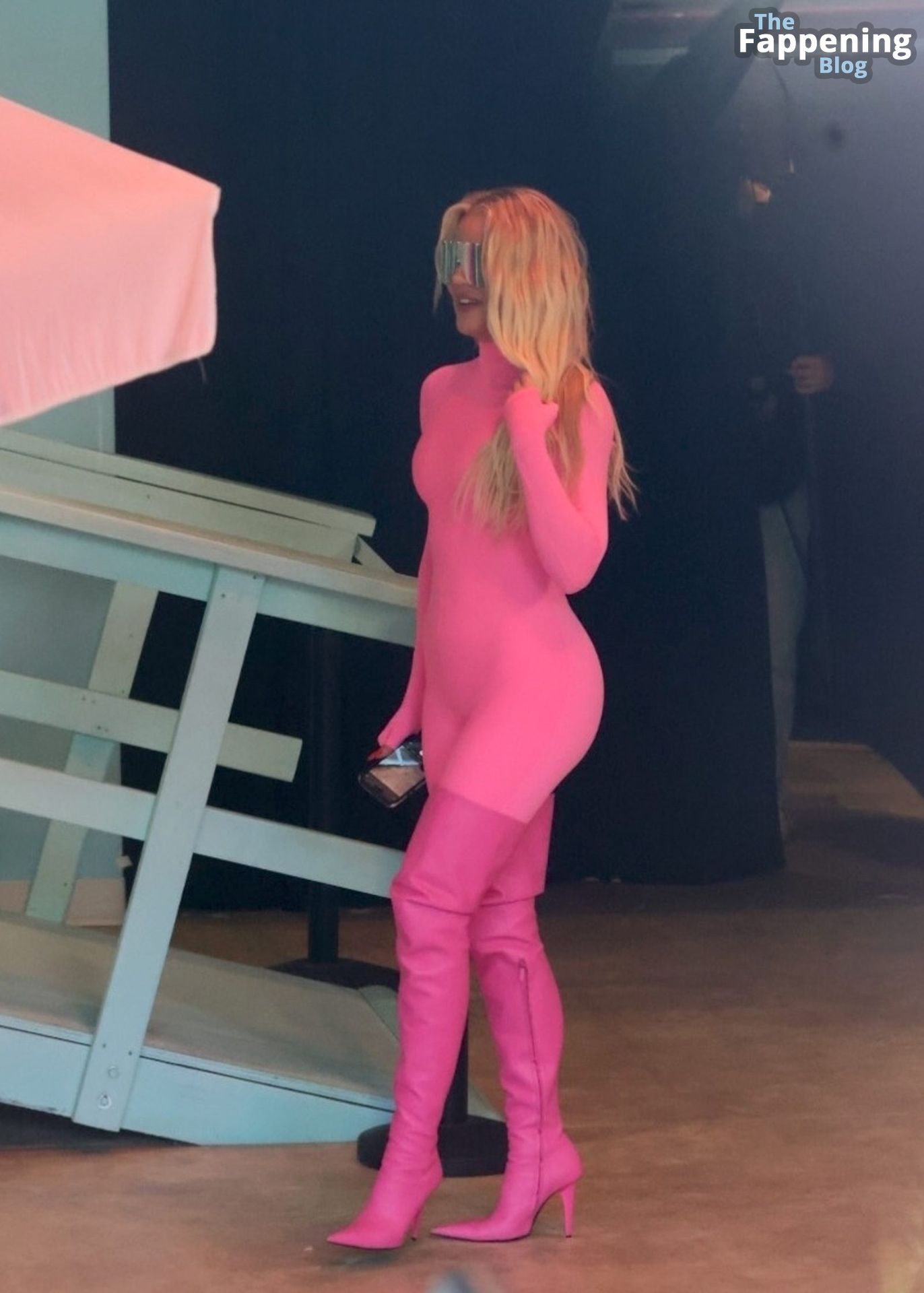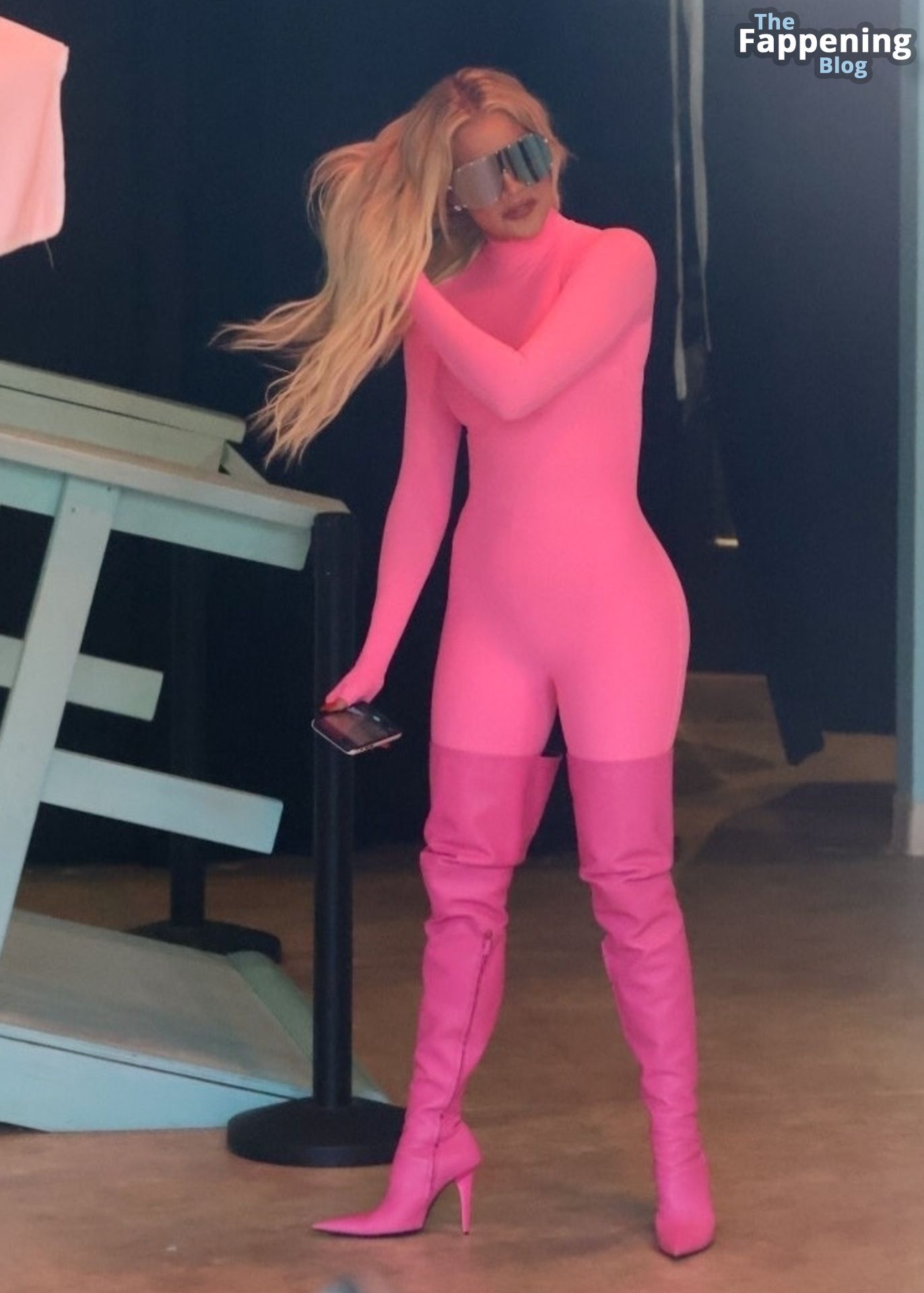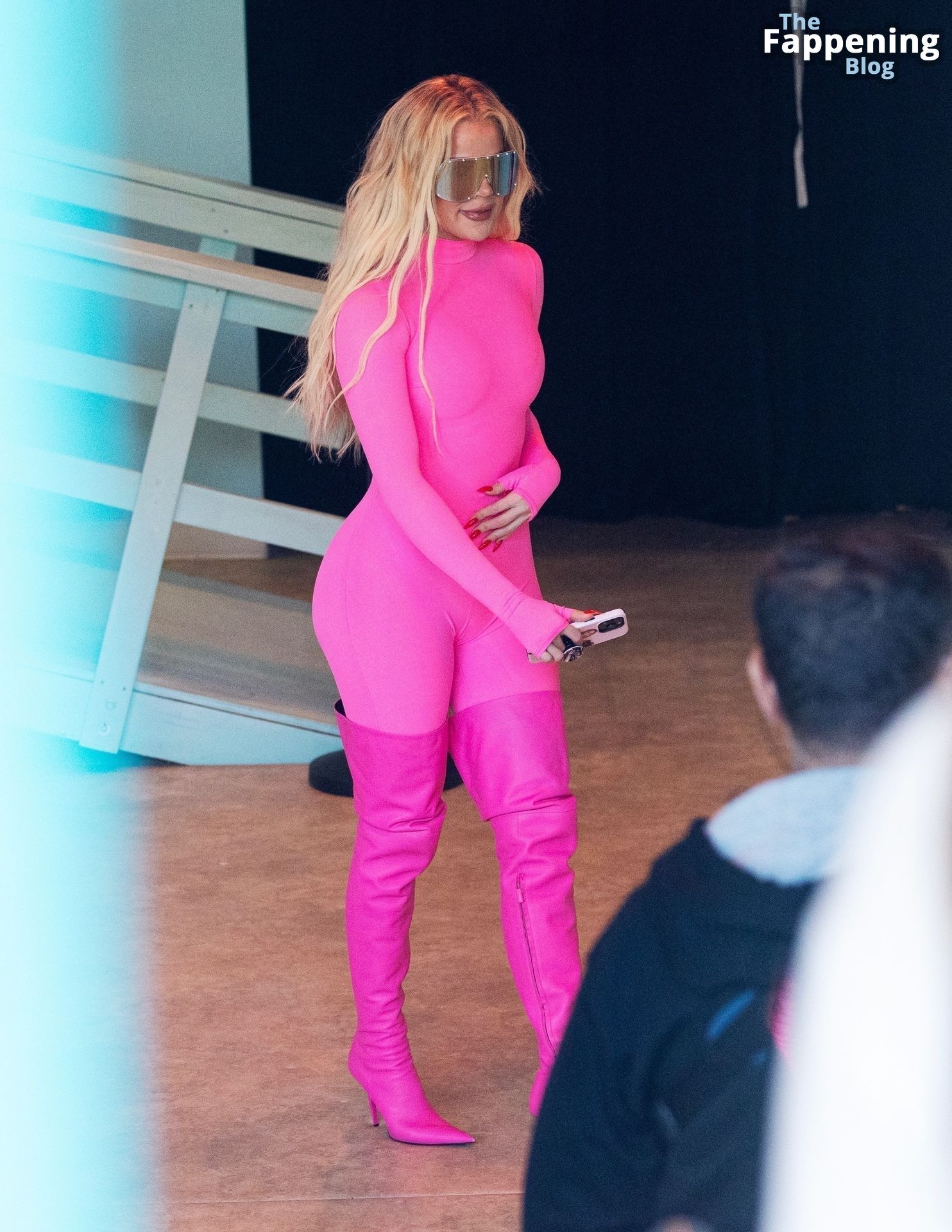 Khloe luce un conjunto rosa de pies a cabeza, y sus hijos están todos coordinados en el mismo color. Mientras tanto, Kim se estiliza con un elegante atuendo negro y muestra su apoyo a su hermana mientras se van del lugar.