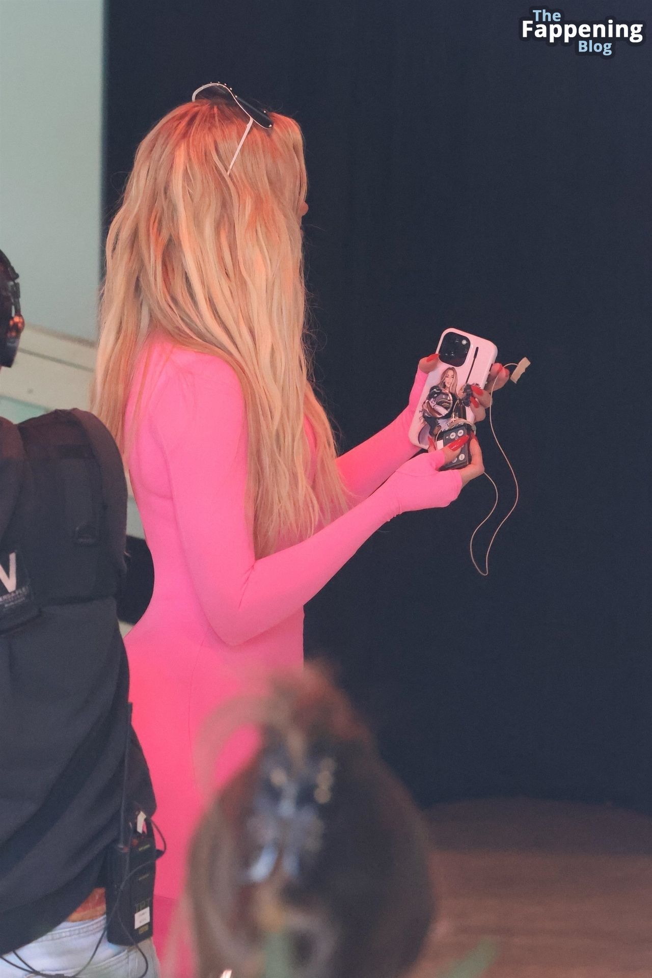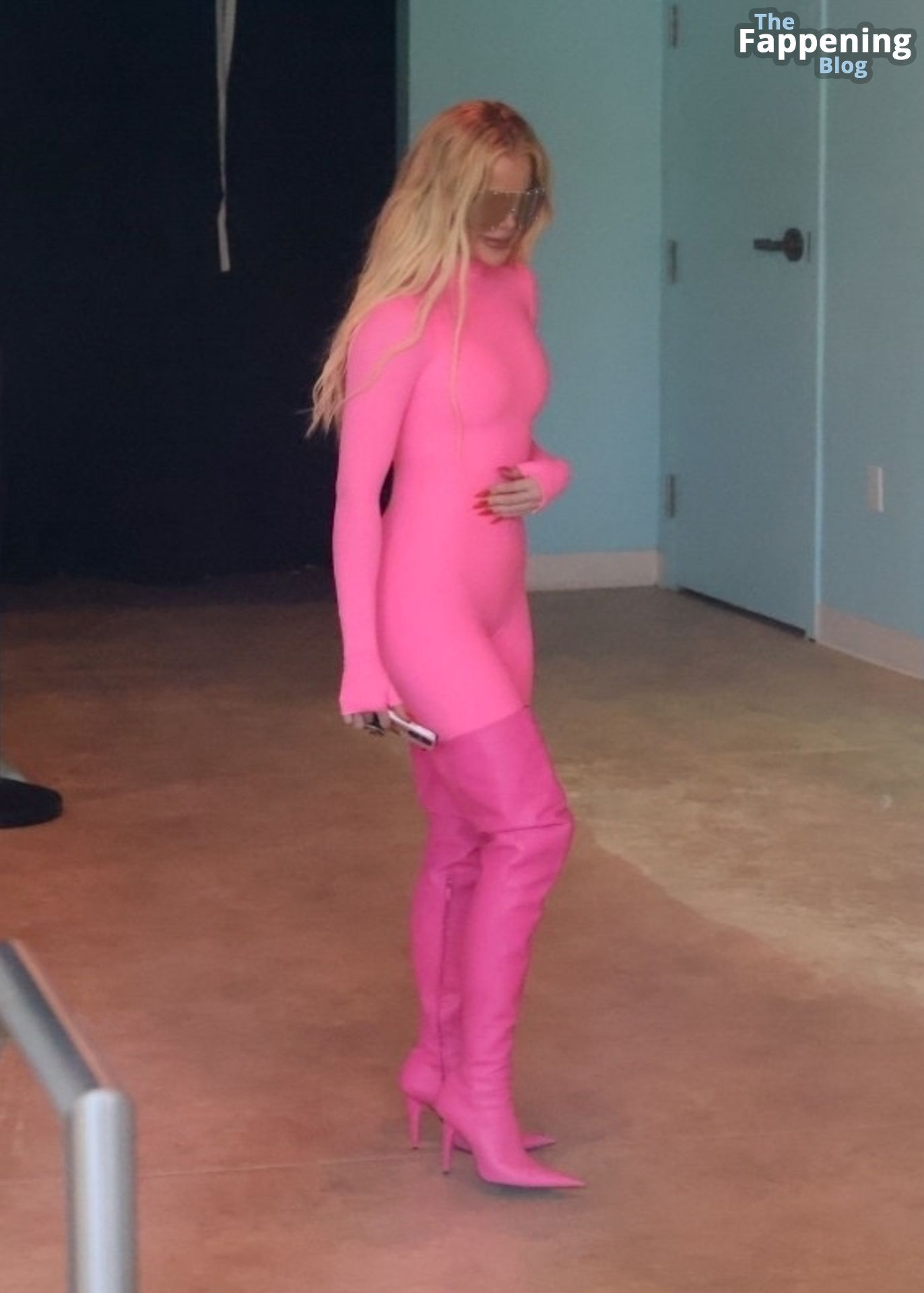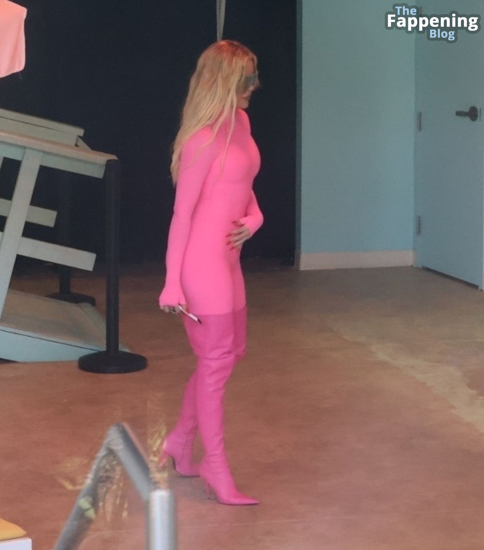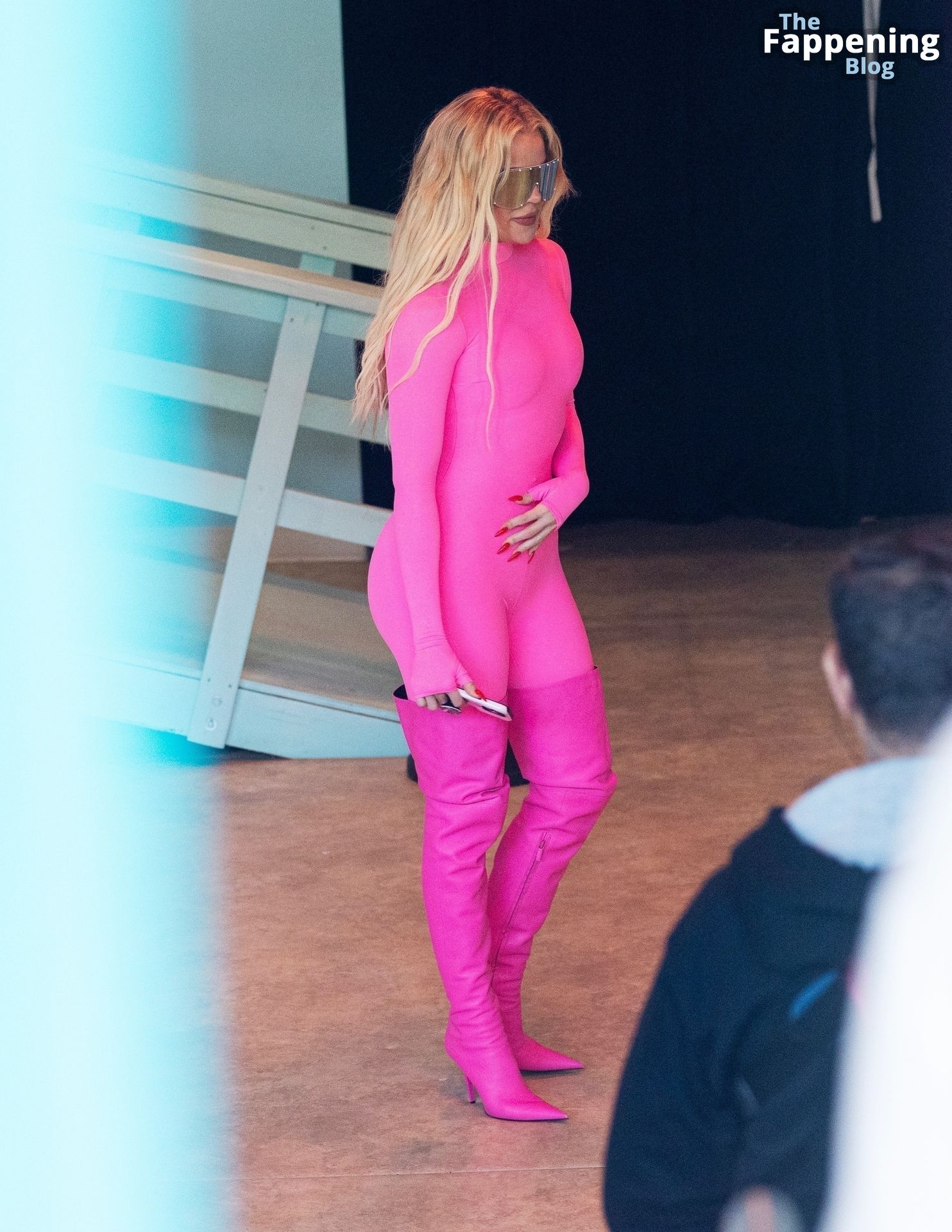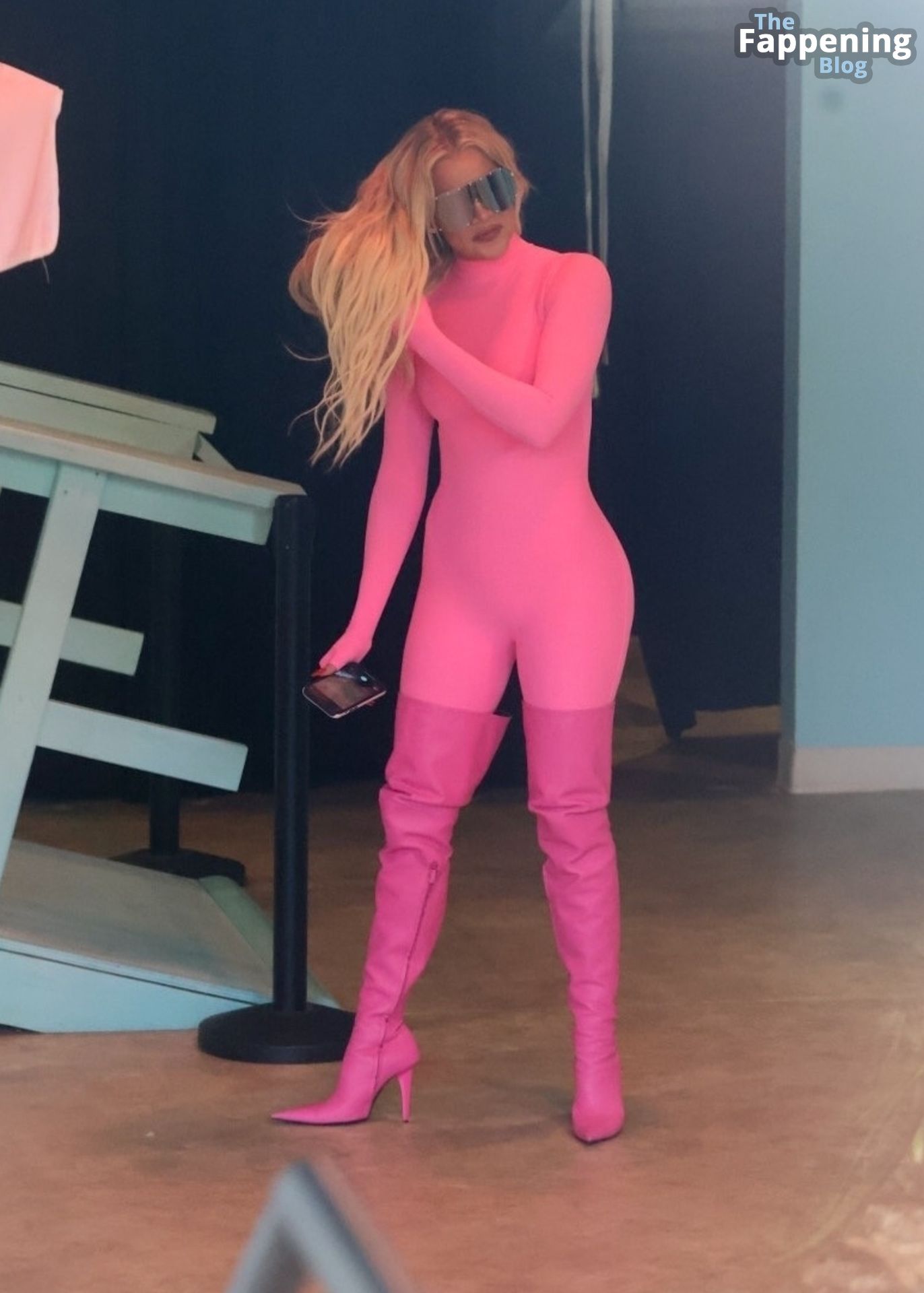 Khloe luce un conjunto rosa de pies a cabeza, y sus hijos están todos coordinados en el mismo color. Mientras tanto, Kim se estiliza con un elegante atuendo negro y muestra su apoyo a su hermana mientras se van del lugar.
