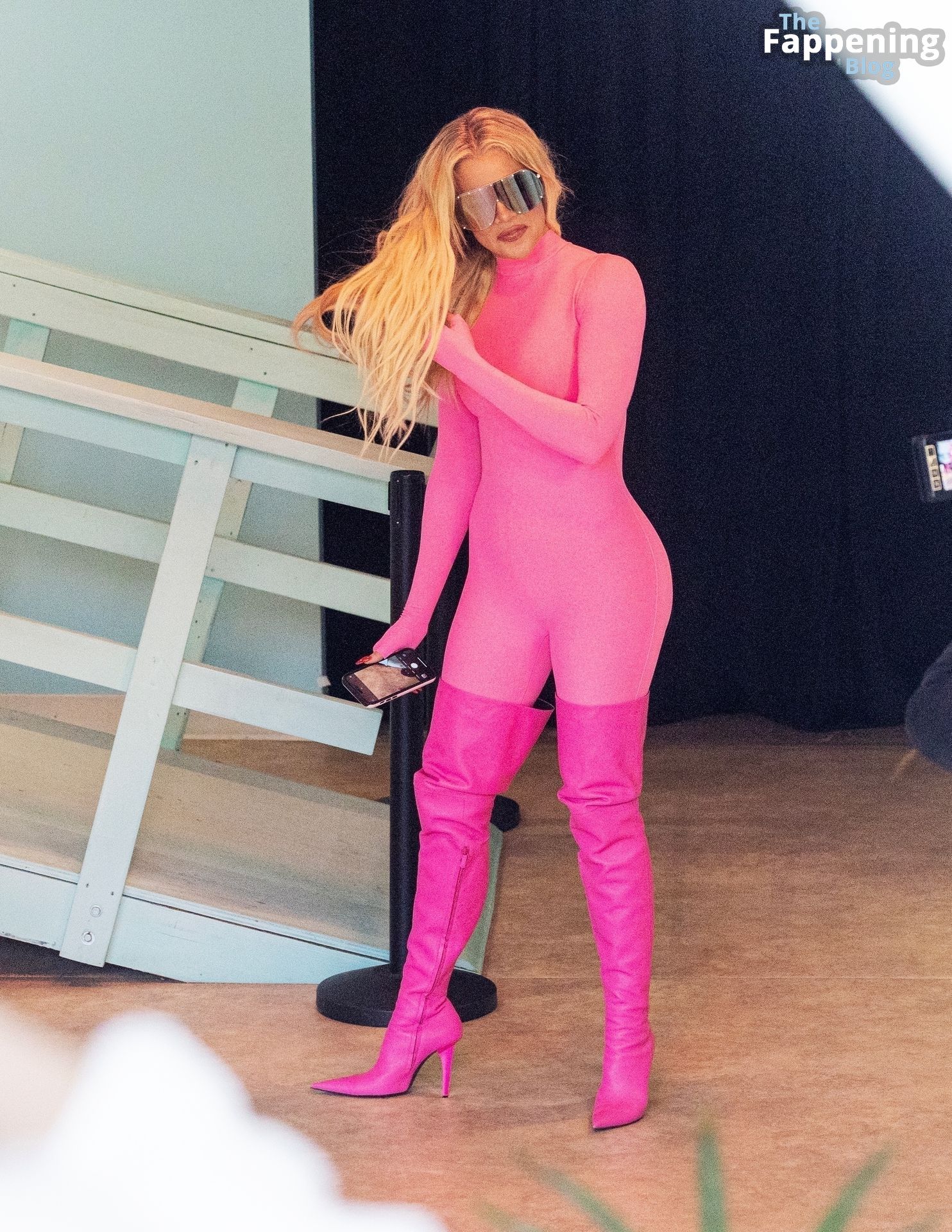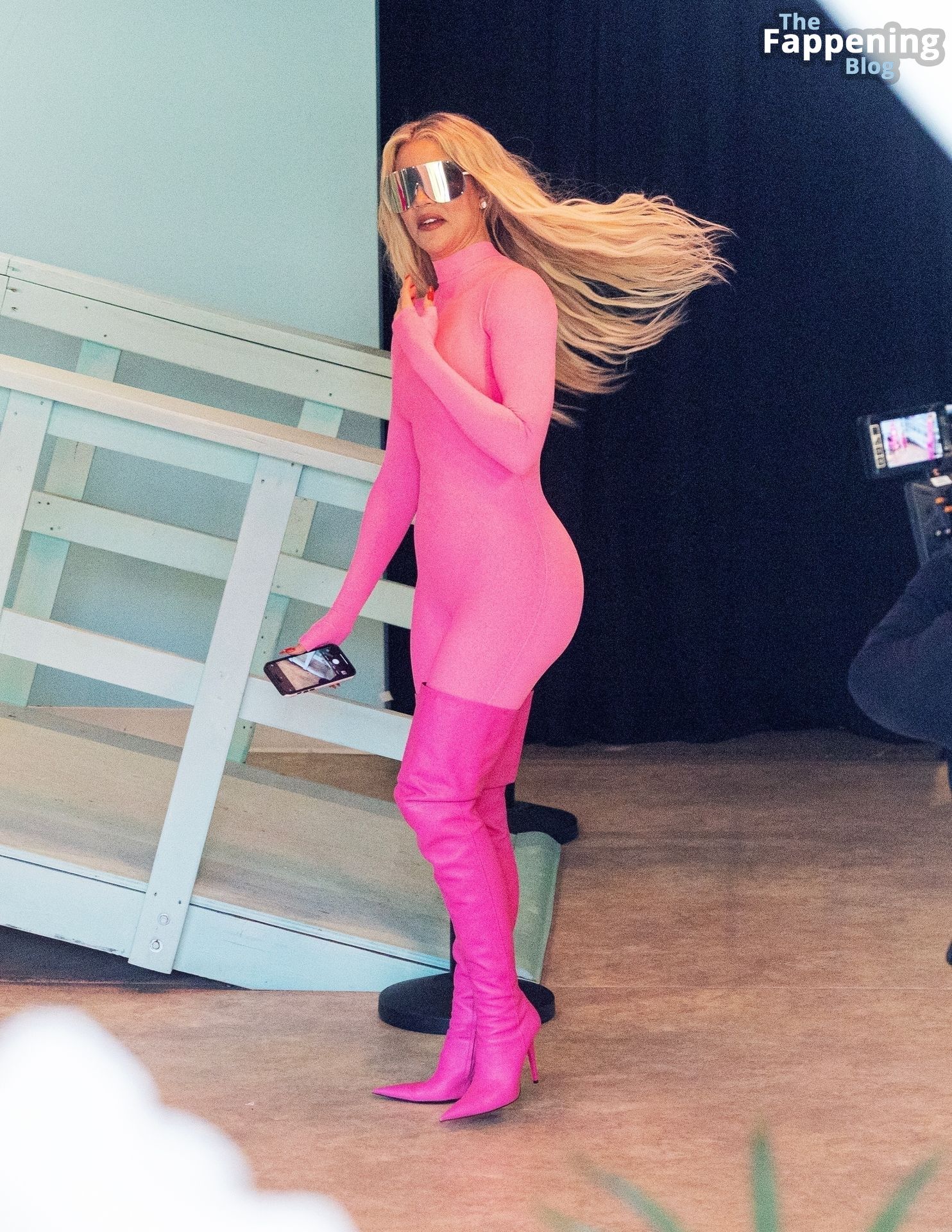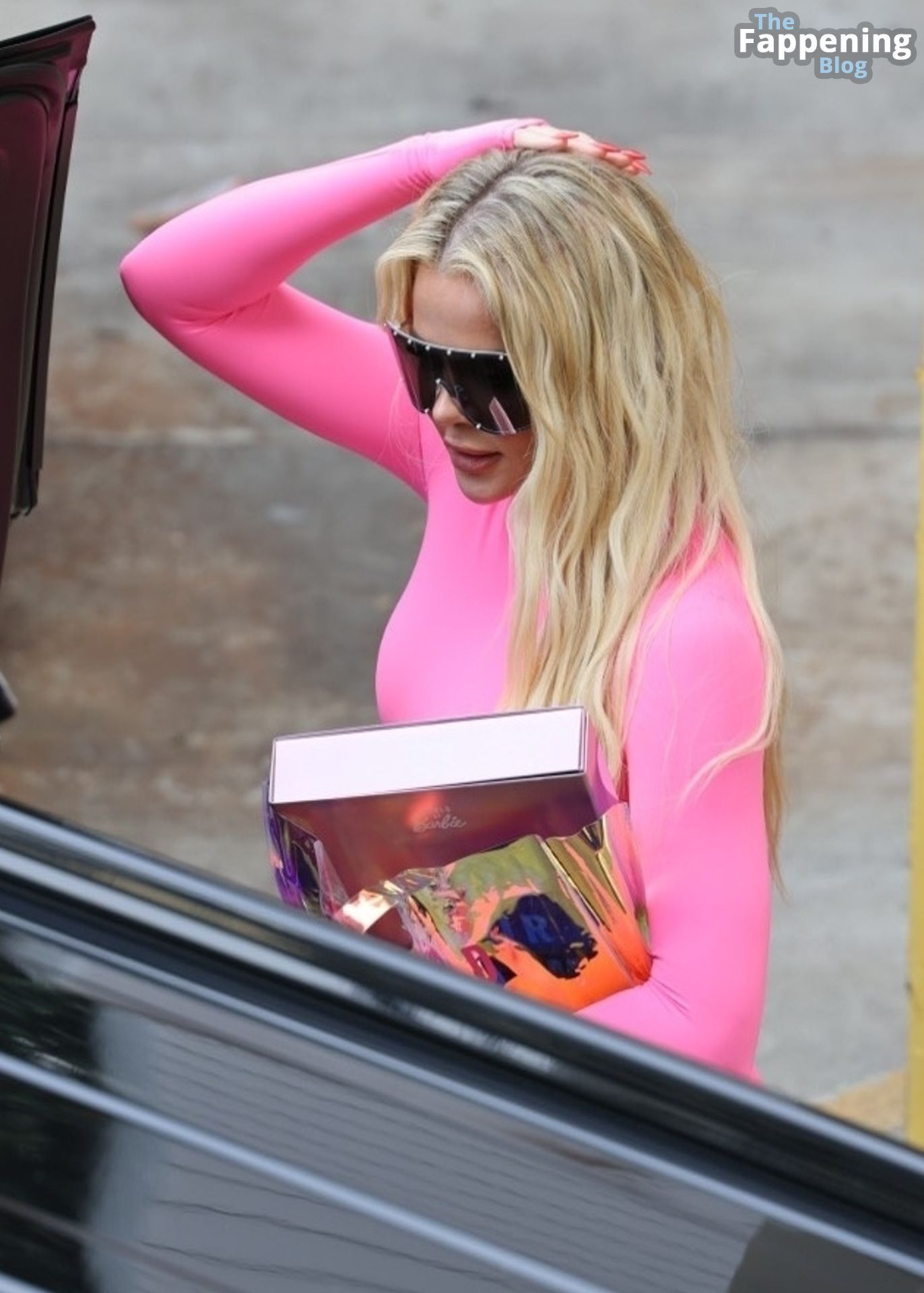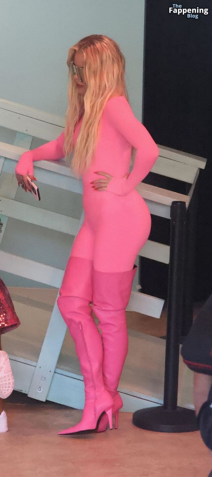 Se trata de las vibras rosas para Khloe y Kim Kardashian mientras pasean con sus hijas True y Chicago, junto con sus sobrinas Dream y Storm, a la exhibición Barbie World x Paul Mitchell en Santa Monica Place en Santa Mónica.