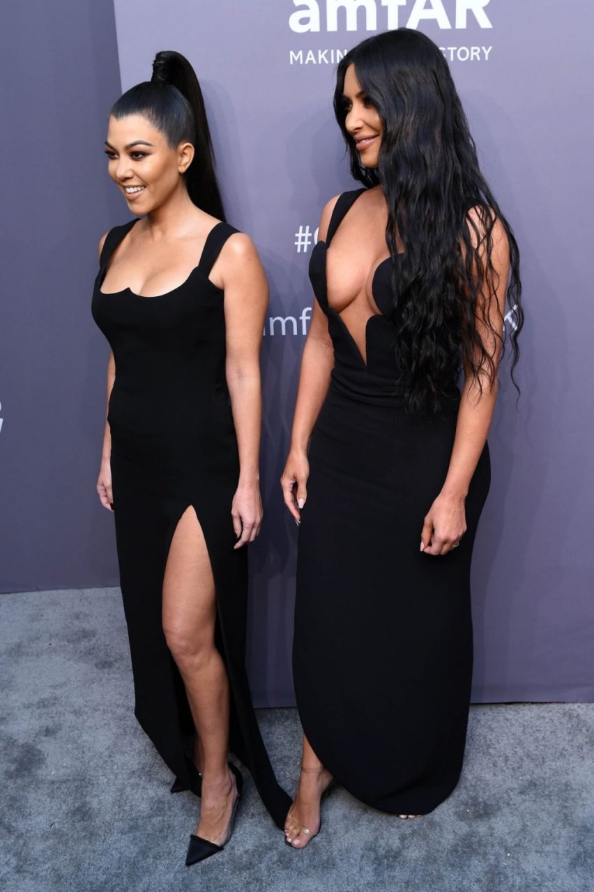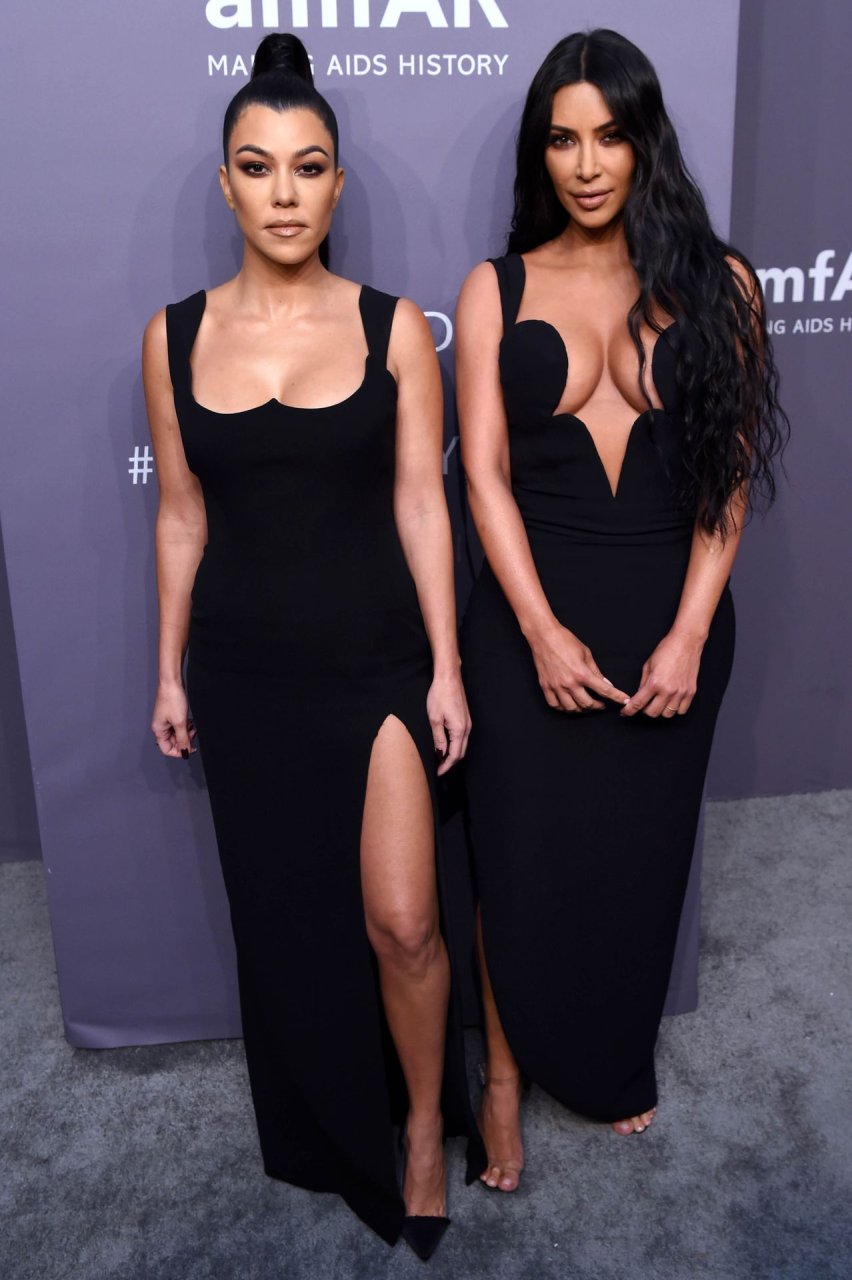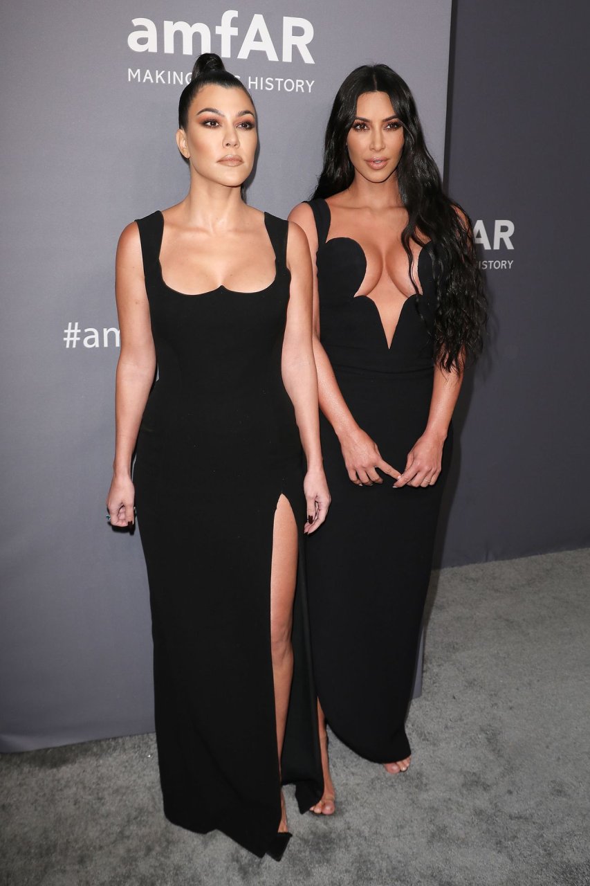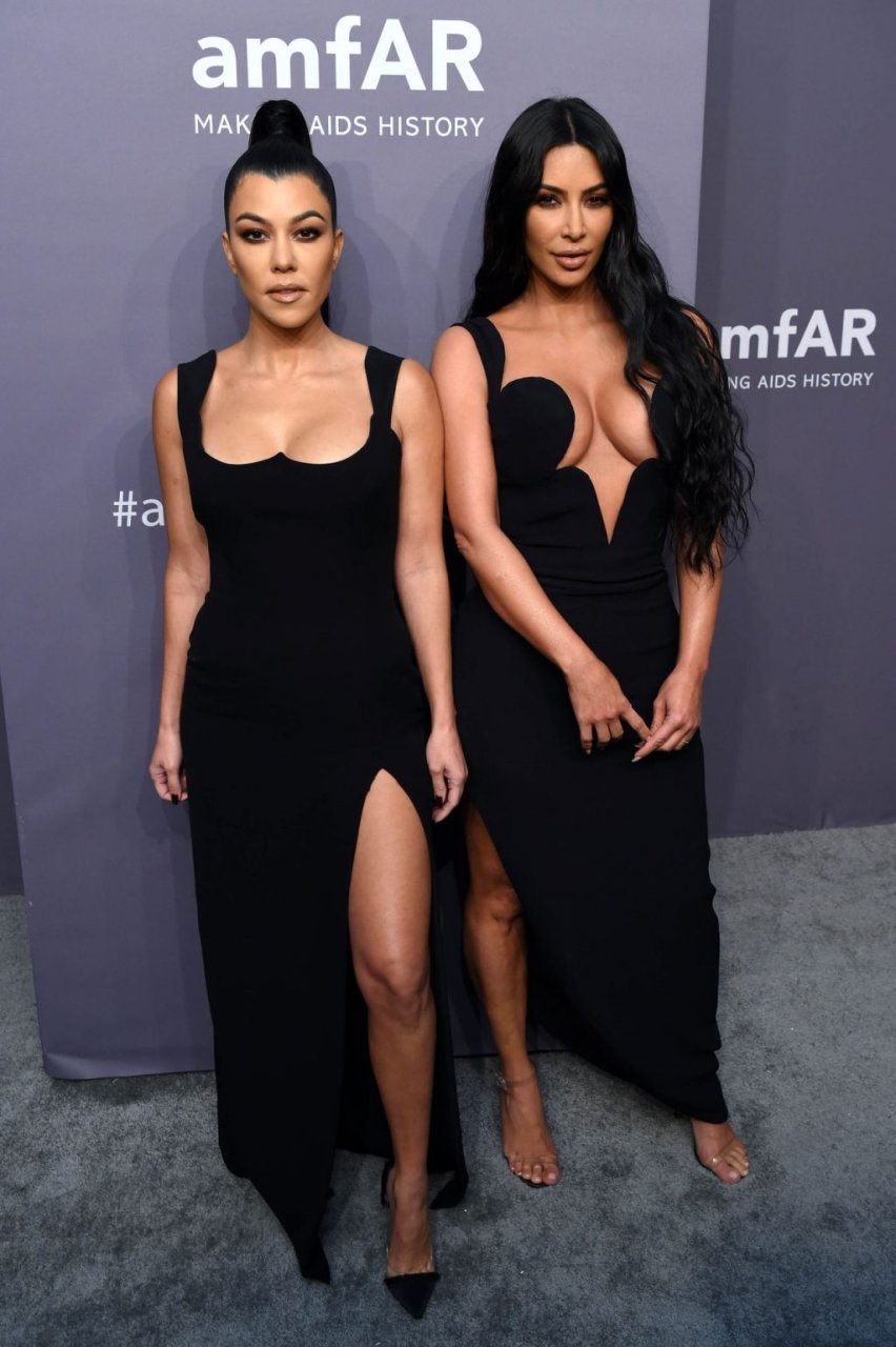 Kim Kardashian West y su hermana mayor Kourtney Kardashian asistieron juntas a la Gala amFAR Otoño/Invierno 2019 en Nueva York, 06/02/2019. Las hermanas llevaban vestidos largos negros, pero el estilo de Kim era mucho más atrevido.