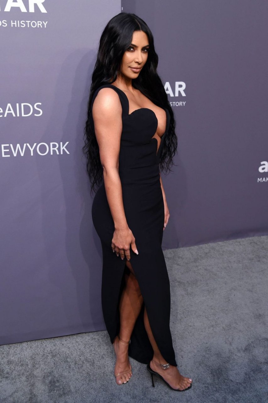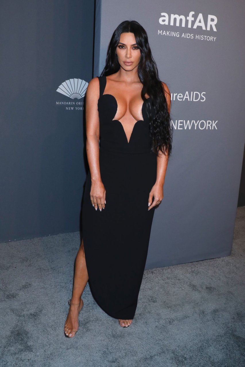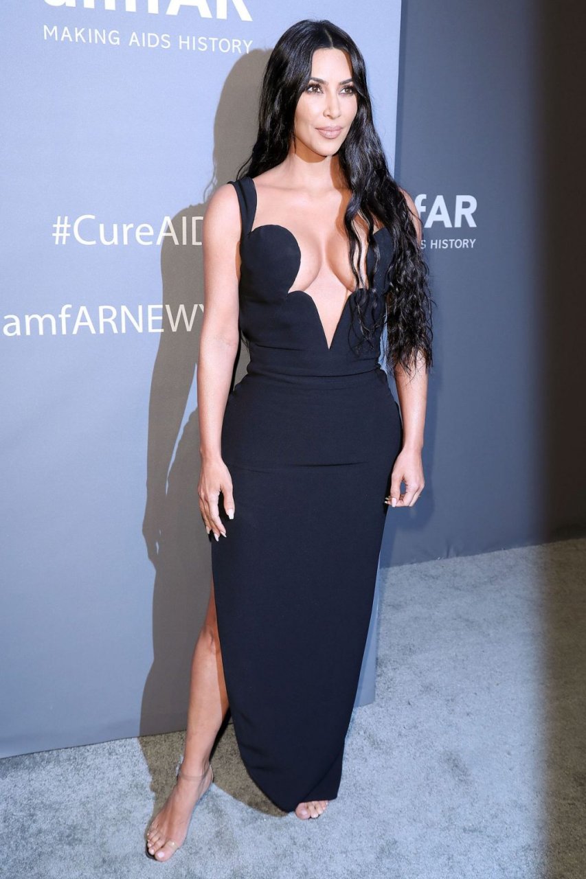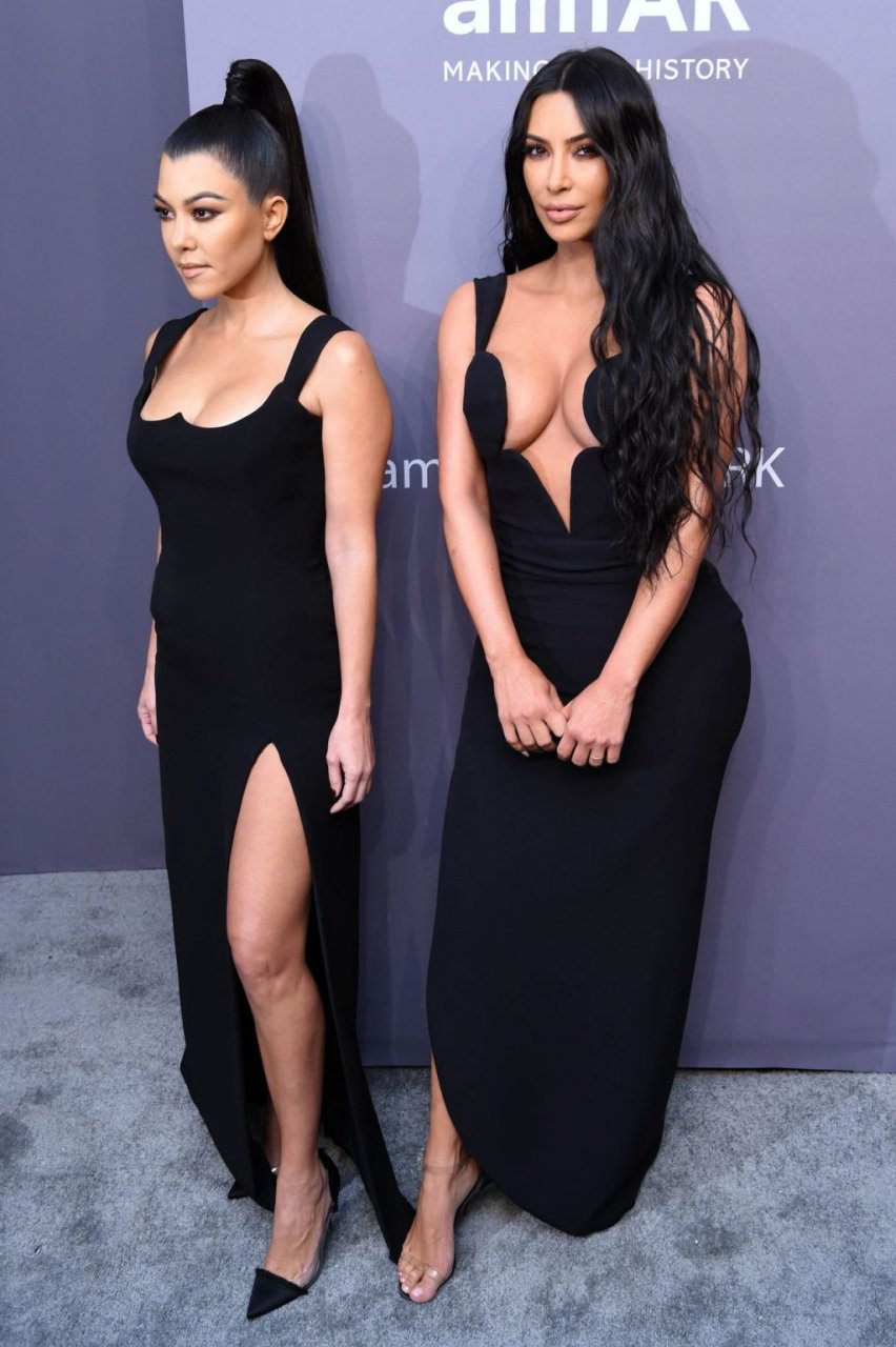 Kim Kardashian West y su hermana mayor Kourtney Kardashian asistieron juntas a la Gala amFAR Otoño/Invierno 2019 en Nueva York, 06/02/2019. Las hermanas llevaban vestidos largos negros, pero el estilo de Kim era mucho más atrevido.