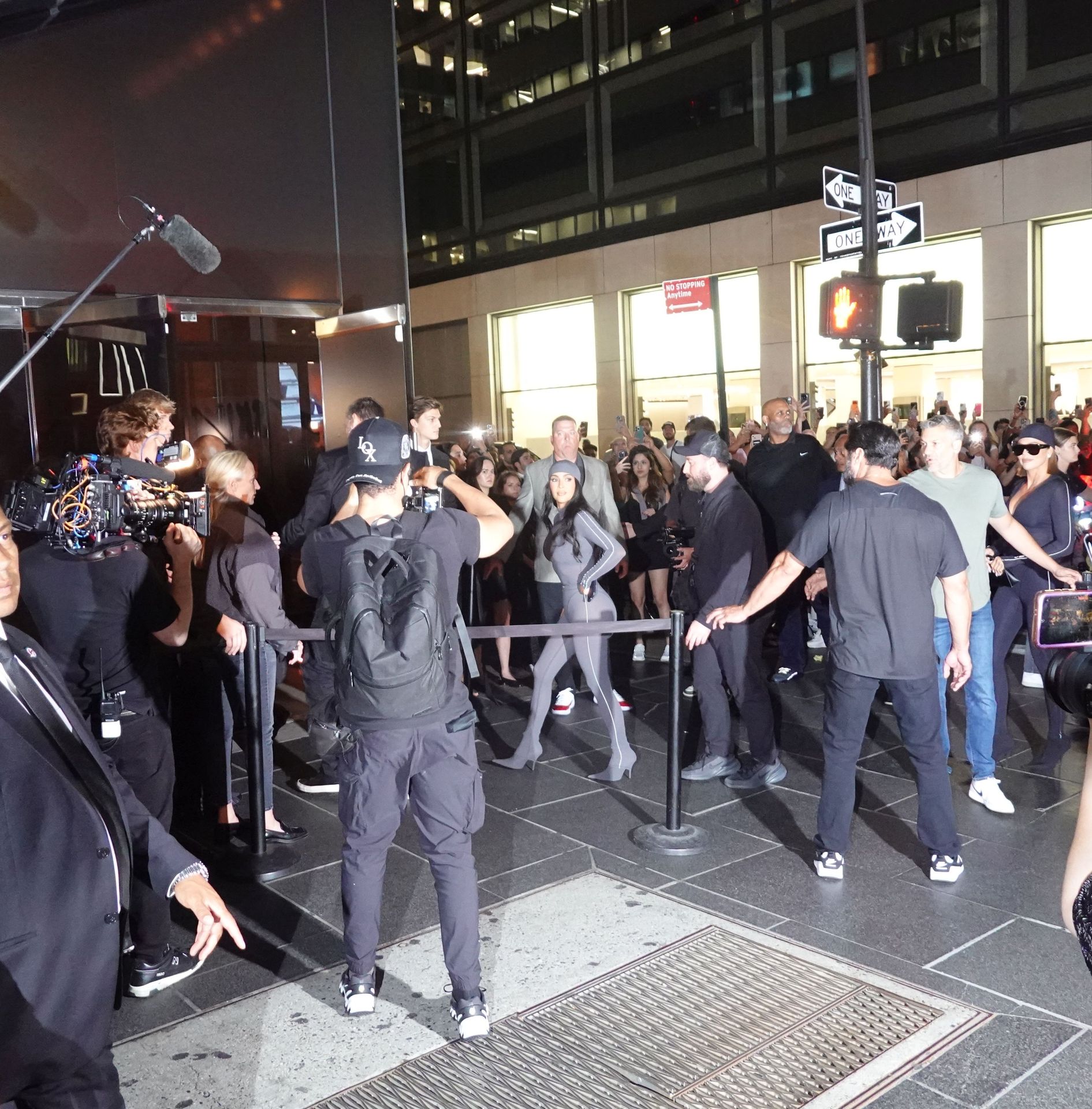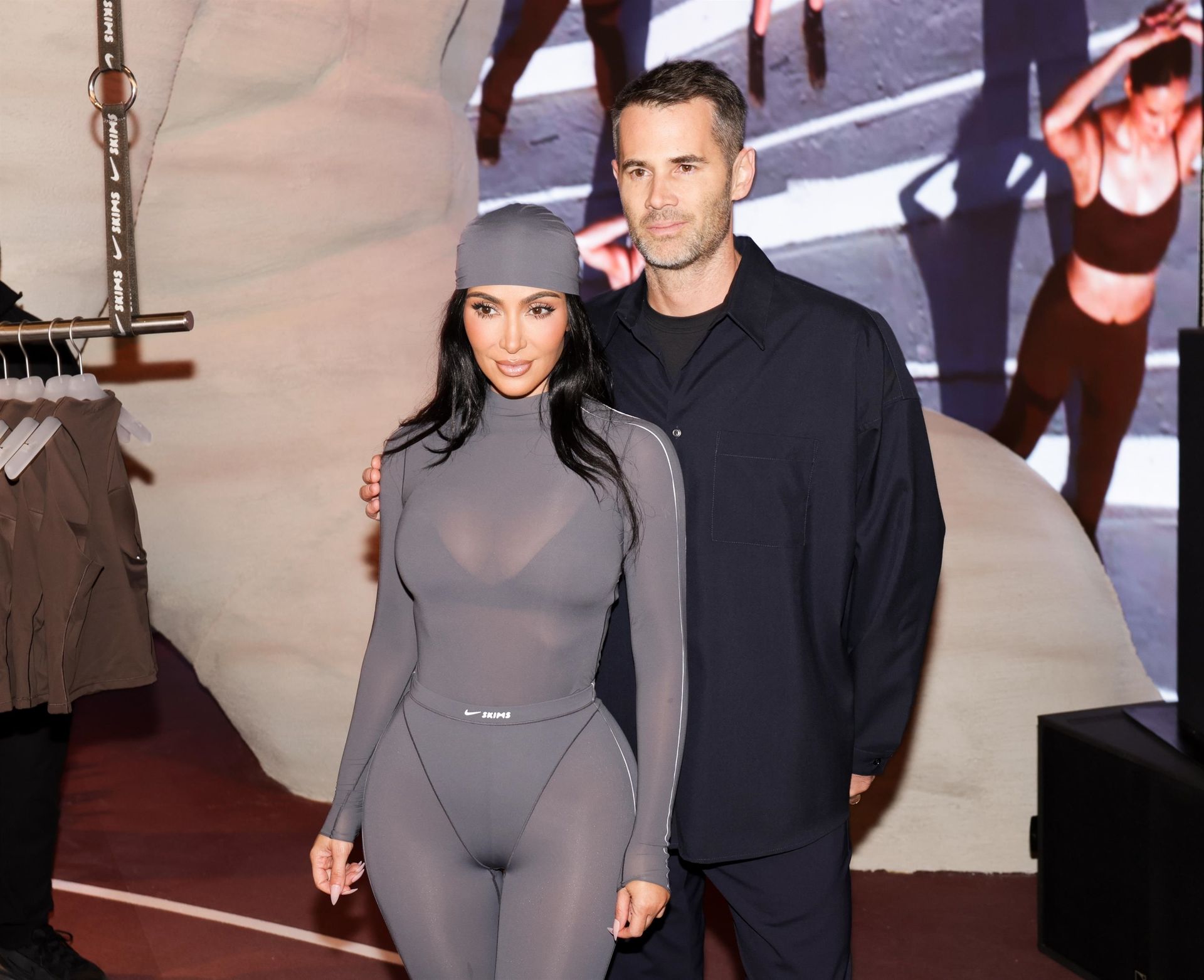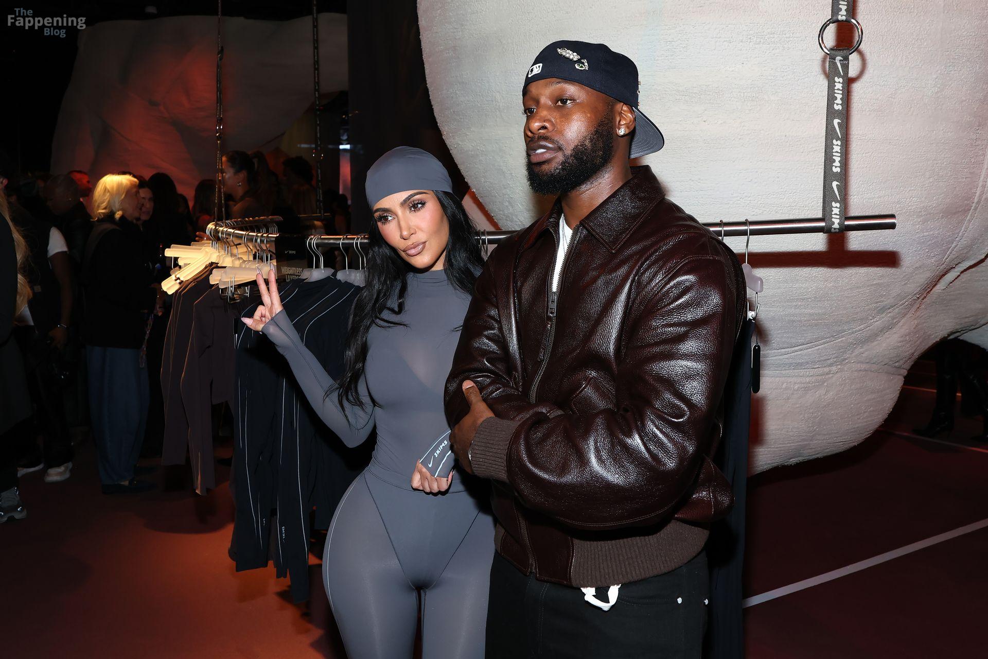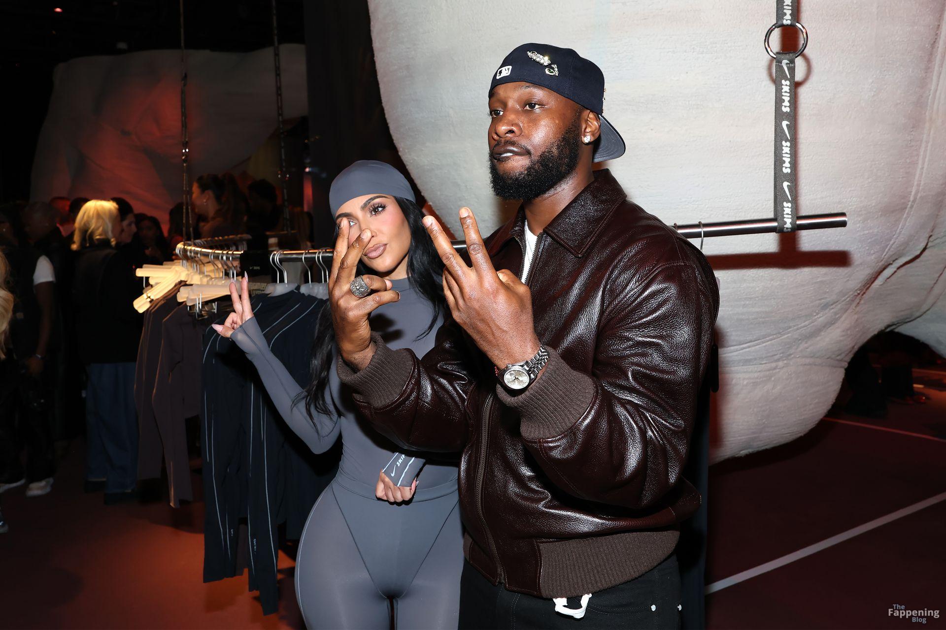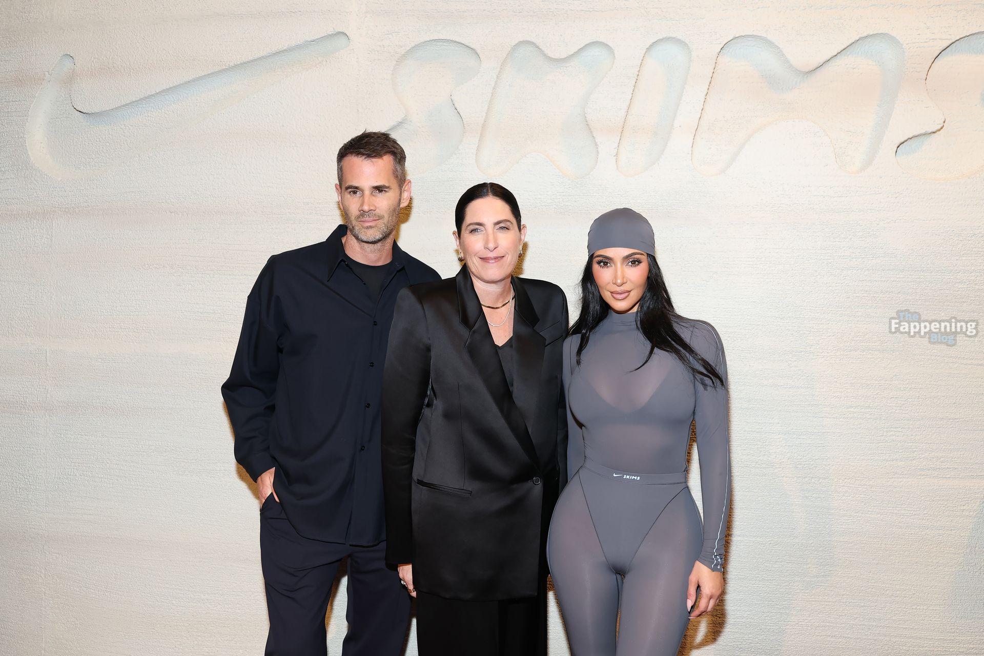 [caption id="attachment_2211671" align="alignnone" width="1371"] New York, NY Kim Kardashian turned heads at the Nike House of Innovation in New York City, where she celebrated the launch of NikeSKIMS’ “Bodies At Work.” The mogul rocked a sleek gray bodysuit from the new line, striking poses as fans and photographers captured the moment.