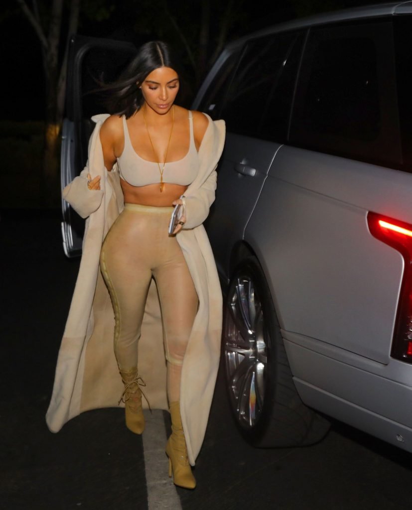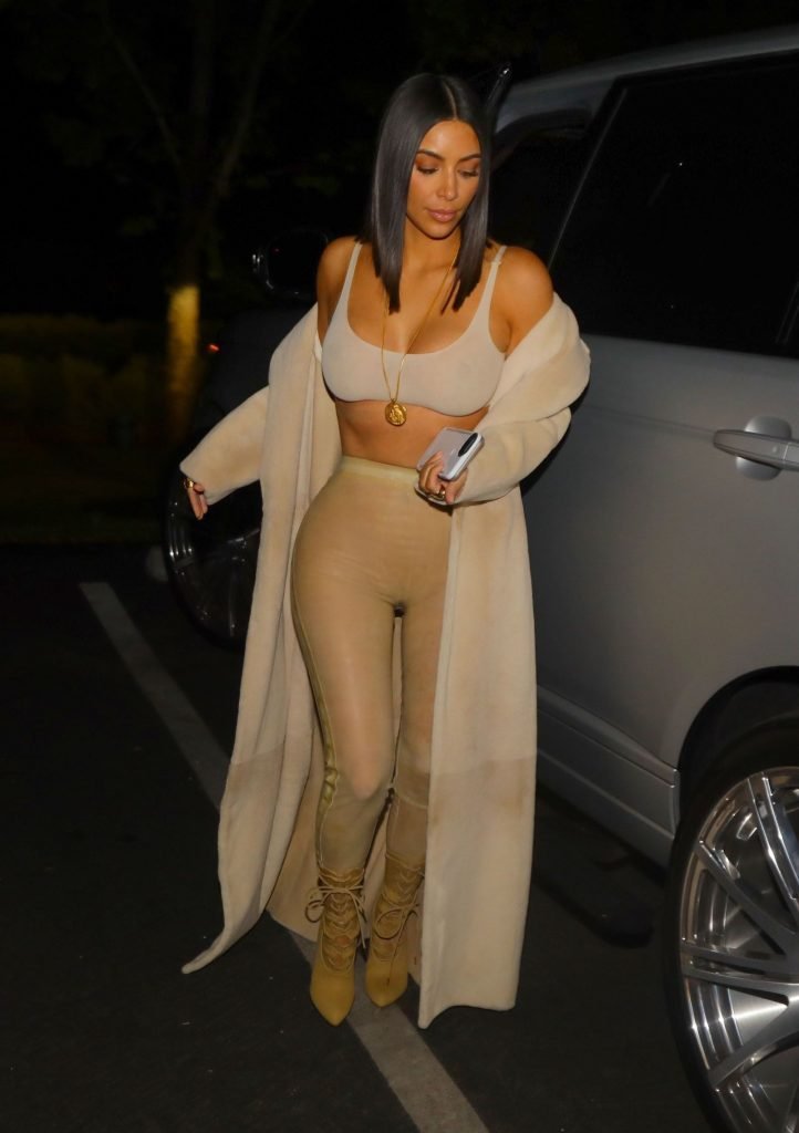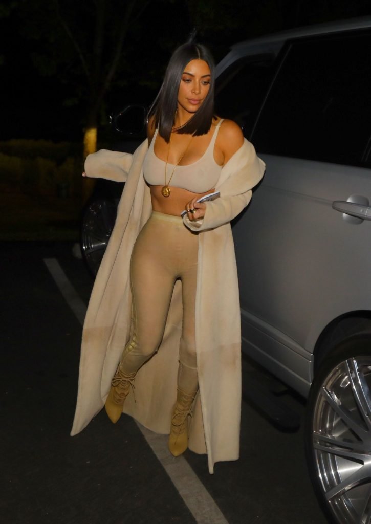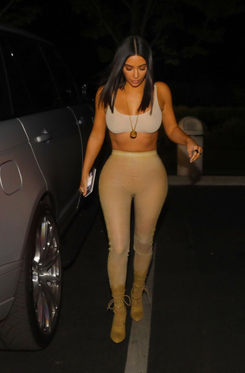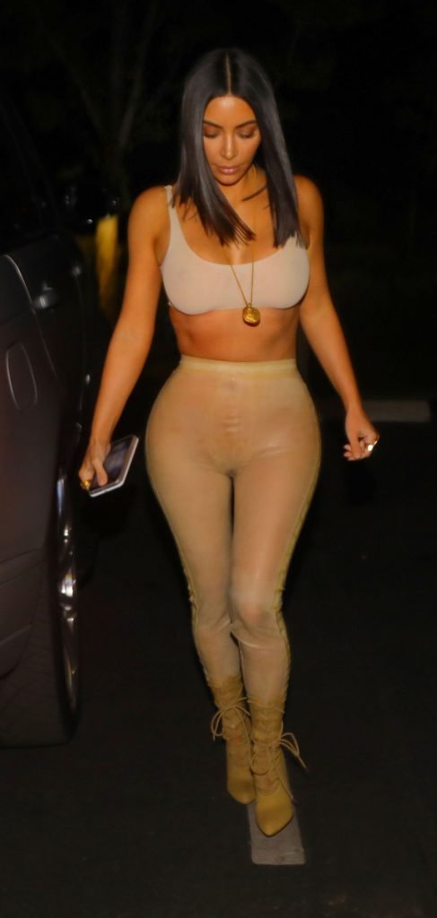 Kim Kardashian sale con una blusa transparente en Los Ángeles, 19/04/2017. Kim Kardashian West es una modelo estadounidense, estrella de reality y medios, actriz (Drop Dead Diva (Serie de TV)), empresaria, socialité. Edad – 36 años (nacida el 21 de octubre de 1980).
