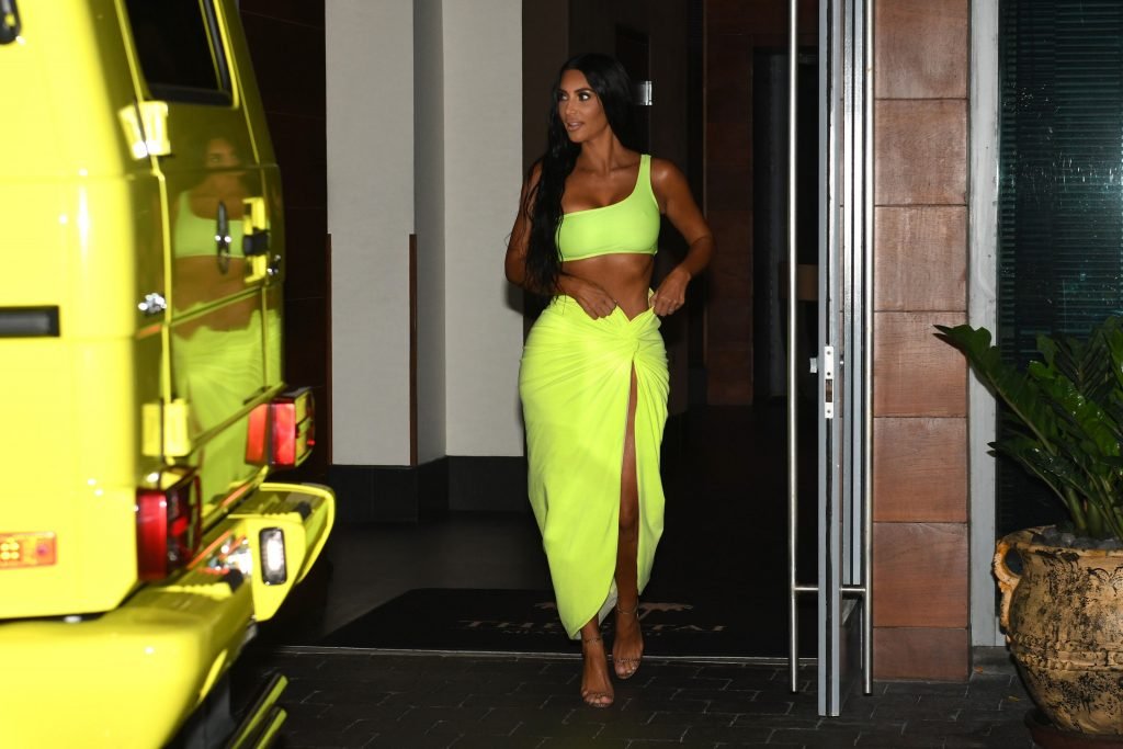 Mientras salía de su vehículo de gran tamaño, la estrella de reality de 37 años tuvo un pequeño fallo de vestuario (upskirt) cuando se le expusieron sus prendas interiores de neón verde.