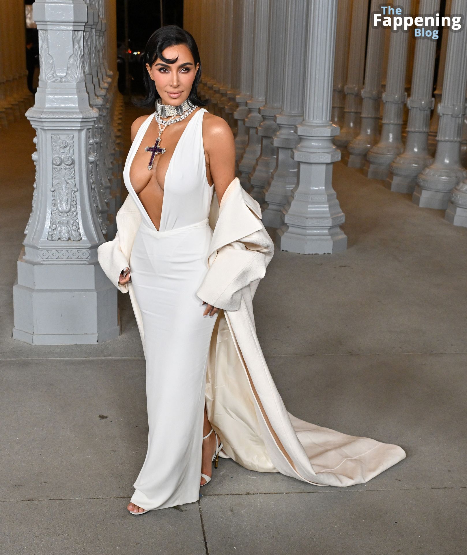 Kim Kardashian deslumbró en la Gala LACMA Art+Film 2024, mostrando sus generosos atributos y un escote impresionante con un vestido atrevido y llamativo.