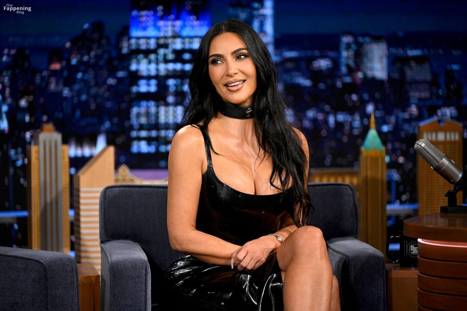 Kim Kardashian Presume de sus Sexy Piernas y Pechos en un Vestido de Látex en el Tonight Show (13 Fotos + Video)