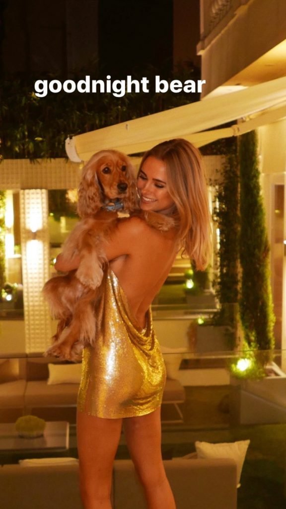 Kimberley Garner lleva un vestido dorado diminuto en el lanzamiento de White Forest en Londres, 11/09/2017. Kimberley Garner es una diseñadora inglesa de trajes de baño, estrella de televisión, actriz y socialité. Edad – 27 años (7 de marzo de 1990).
