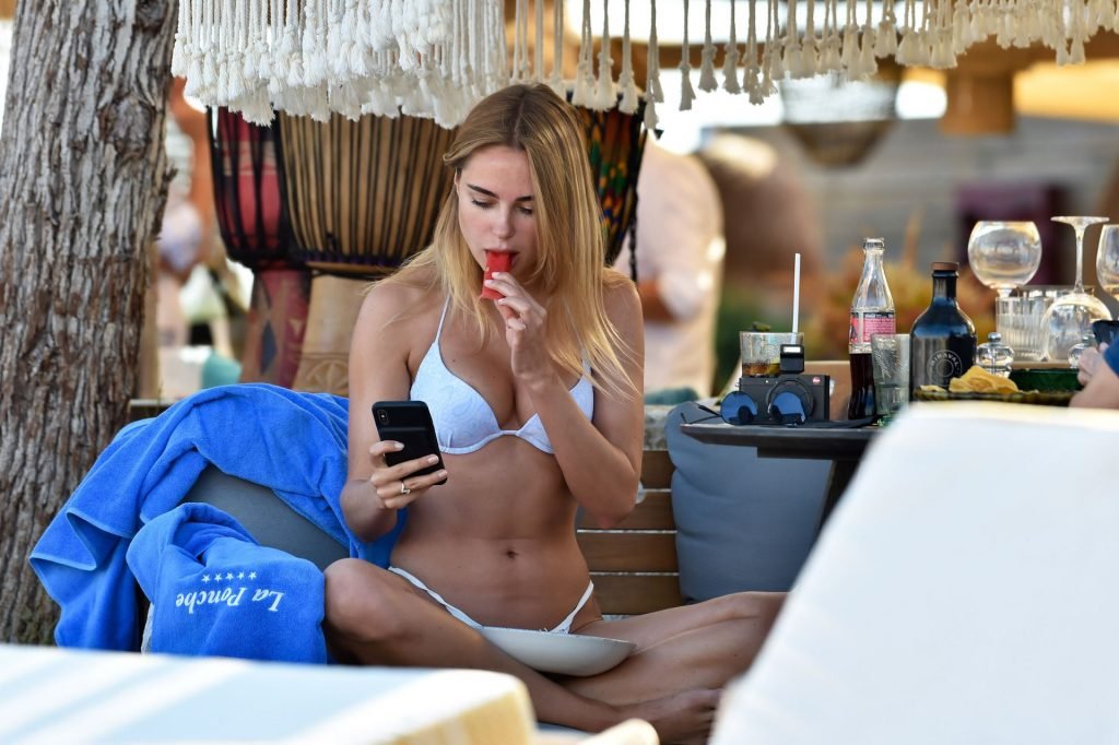 Kimberley Garner disfruta del sol con un diminuto bikini blanco en unas recientes vacaciones en St Tropez, 30/08/2019.
