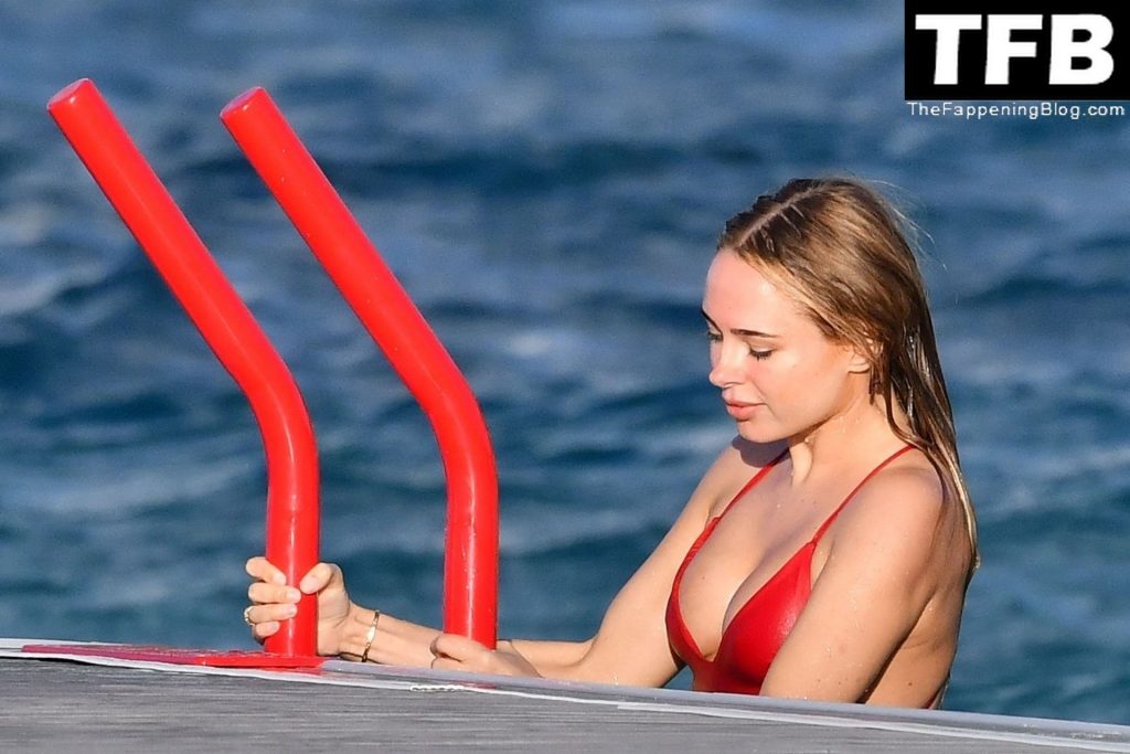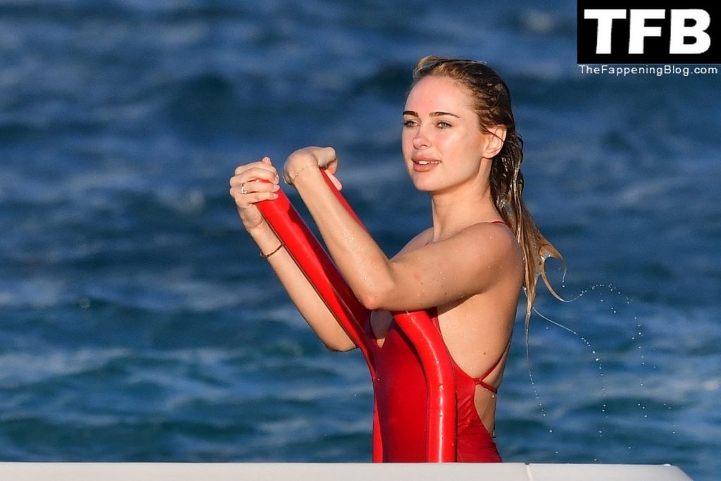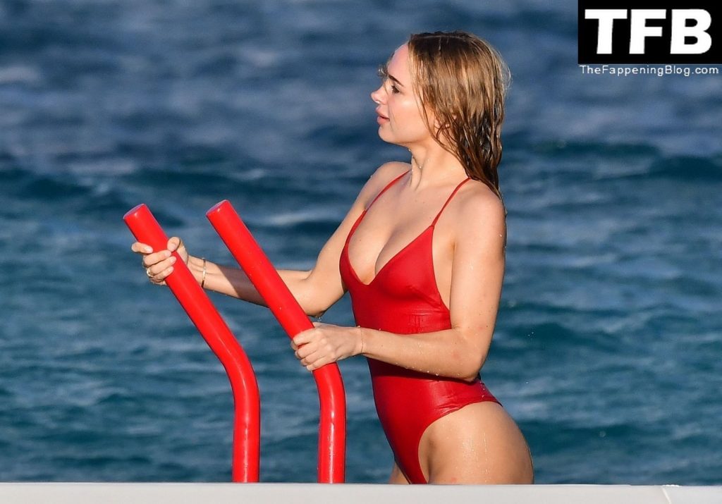 La ex estrella de “Made In Chelsea” Kimberley Garner deslumbra con su sexy traje de baño rojo mostrando sus voluptuosas curvas en una exhibición realmente ardiente durante sus vacaciones en la playa Eden Rock en la Bahía de Saint Jean en Saint-Barthélemy, Indias Occidentales Francesas, 01/01/2022.