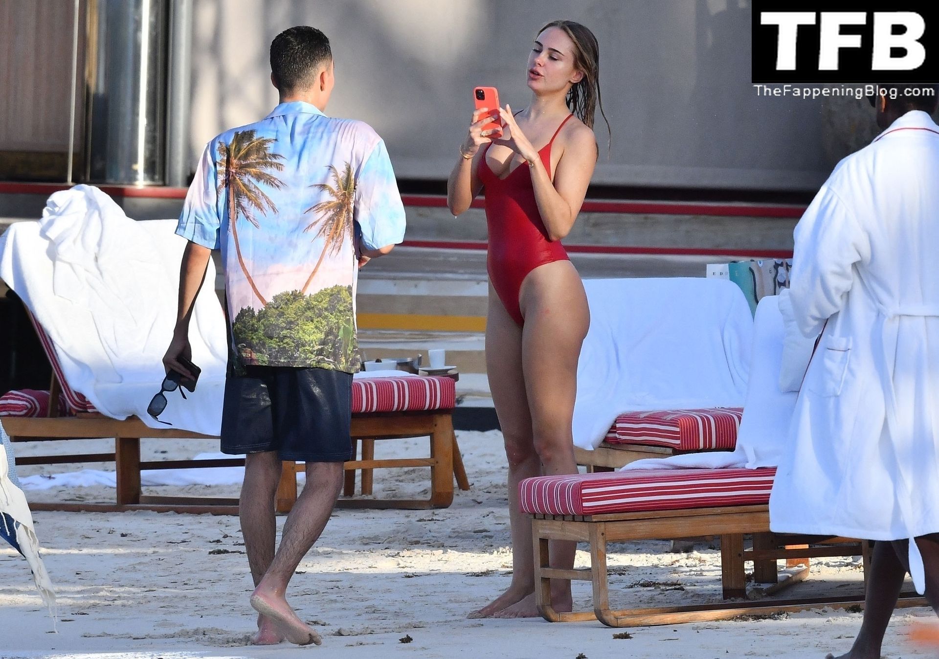 La ex estrella de “Made In Chelsea” Kimberley Garner deslumbra con su sexy traje de baño rojo mostrando sus voluptuosas curvas en una exhibición realmente ardiente durante sus vacaciones en la playa Eden Rock en la Bahía de Saint Jean en Saint-Barthélemy, Indias Occidentales Francesas, 01/01/2022.