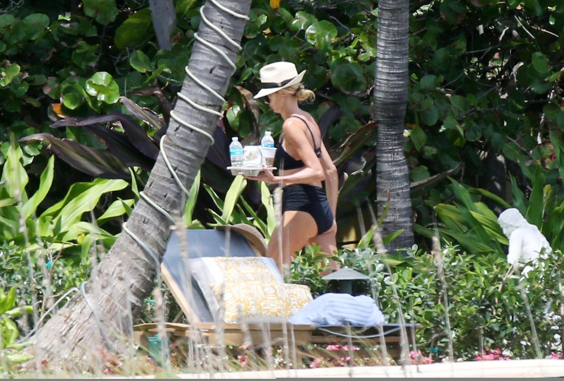 Kim Stewart luce un moderno bikini negro y un sombrero Panamá durante unas vacaciones con su padre rockero Rod y la familia – Palm Beach, FL, 07/04/2019. Kimberly Stewart es una actriz estadounidense de 39 años, productora de televisión, modelo de moda y diseñadora.