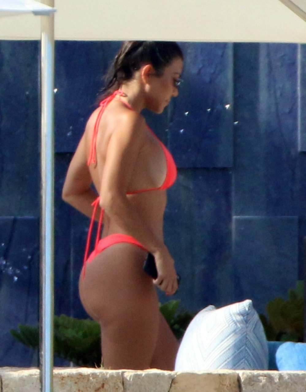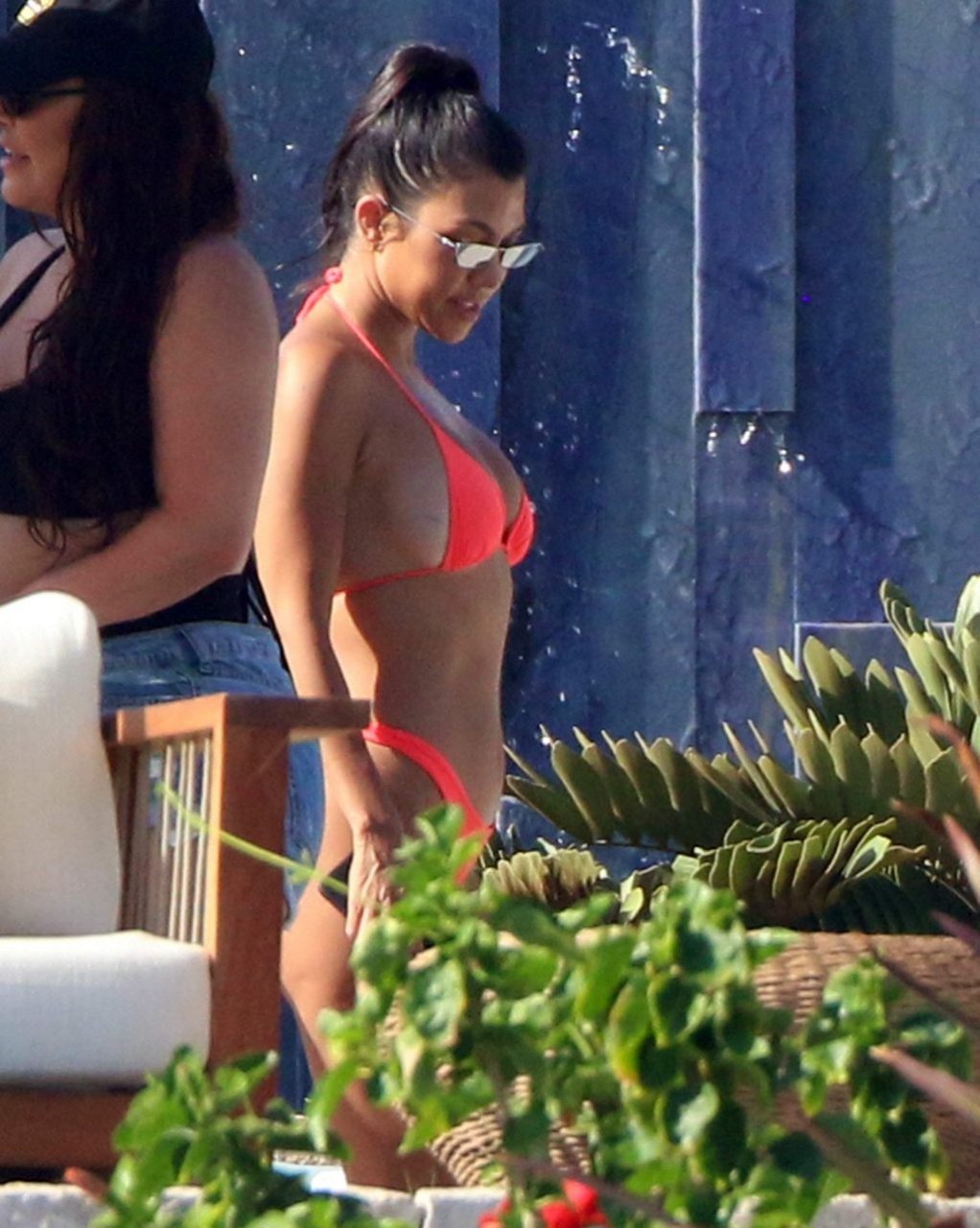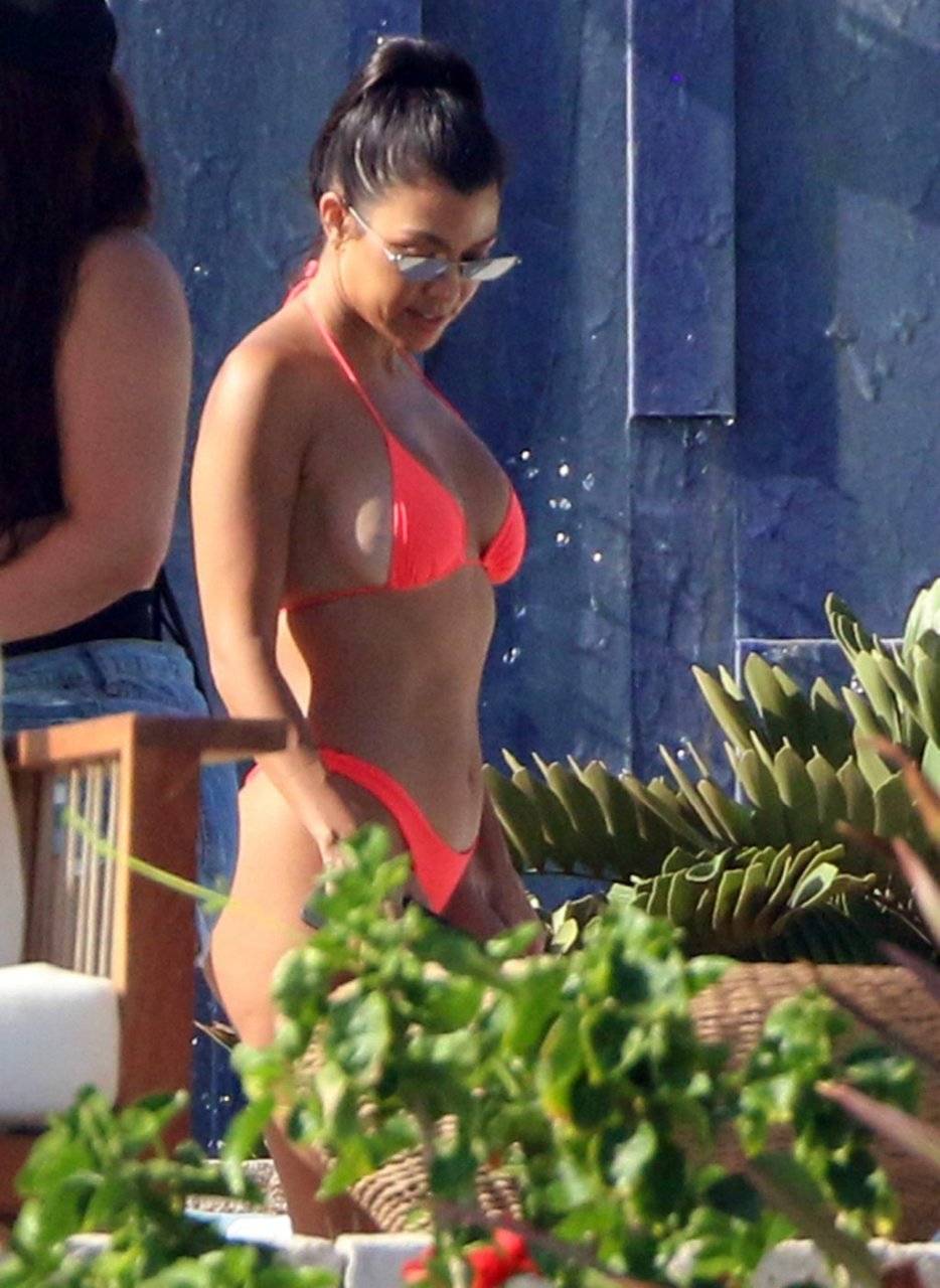 Kourtney Kardashian (39) continúa sus vacaciones ardientes con amigos en Cabo San Lucas, México, mientras sus hijos pasan el rato con el ex Scott Disick y su novia Sofia Richie, 25/08/2018. El grupo se reunió para almorzar en el restaurante de su resort, luego se dirigieron a la playa antes de regresar al resort.
