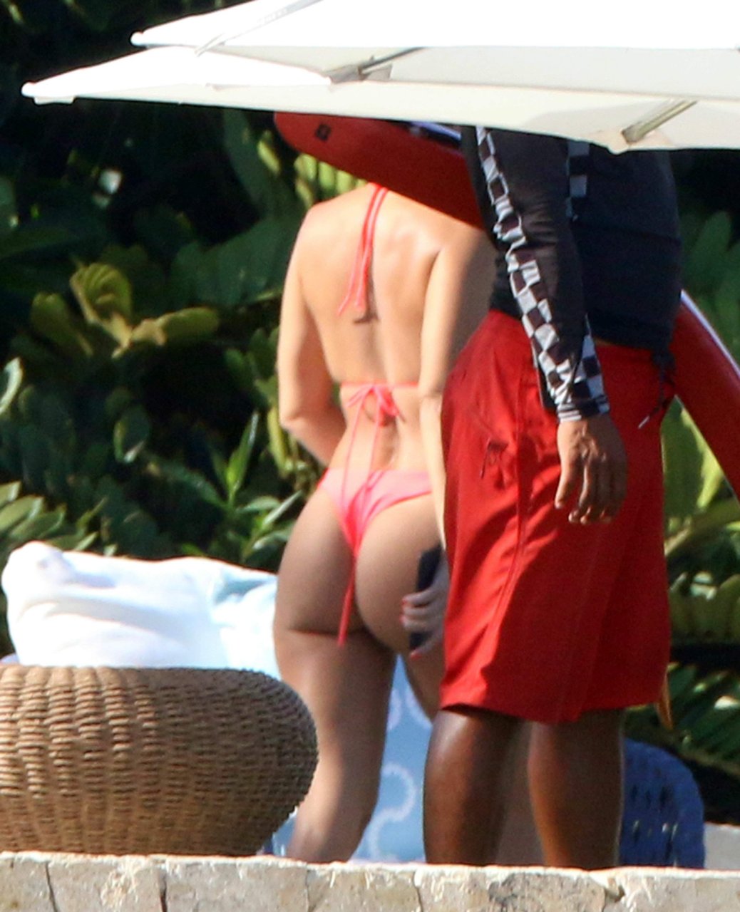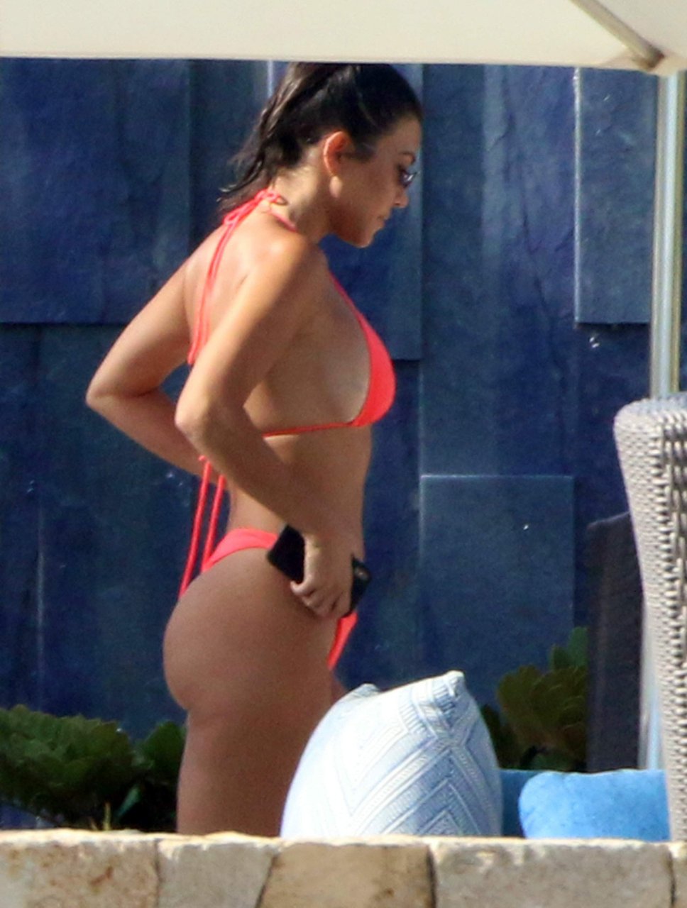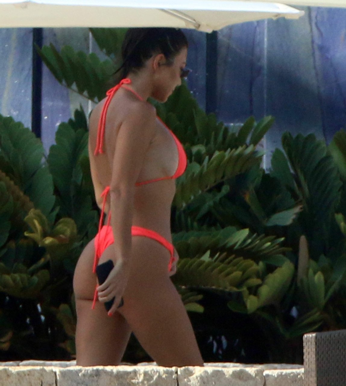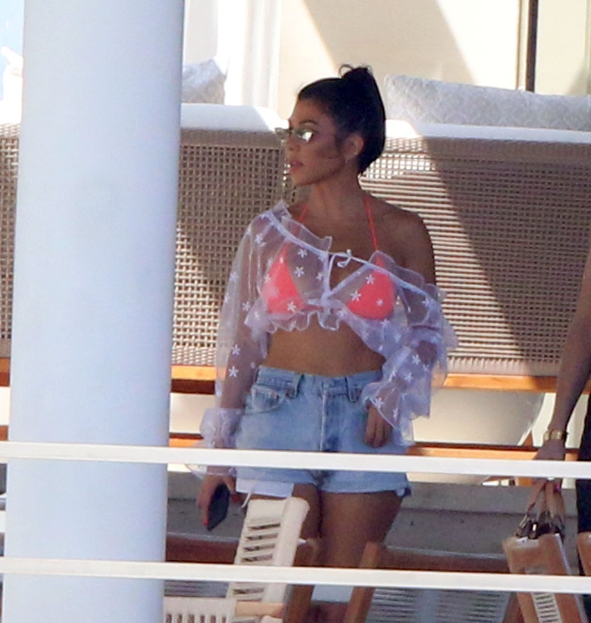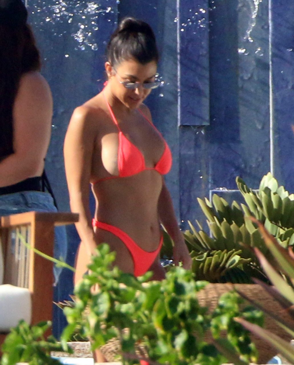 Kourtney Kardashian (39) continúa sus vacaciones ardientes con amigos en Cabo San Lucas, México, mientras sus hijos pasan el rato con el ex Scott Disick y su novia Sofia Richie, 25/08/2018. El grupo se reunió para almorzar en el restaurante de su resort, luego se dirigieron a la playa antes de regresar al resort.