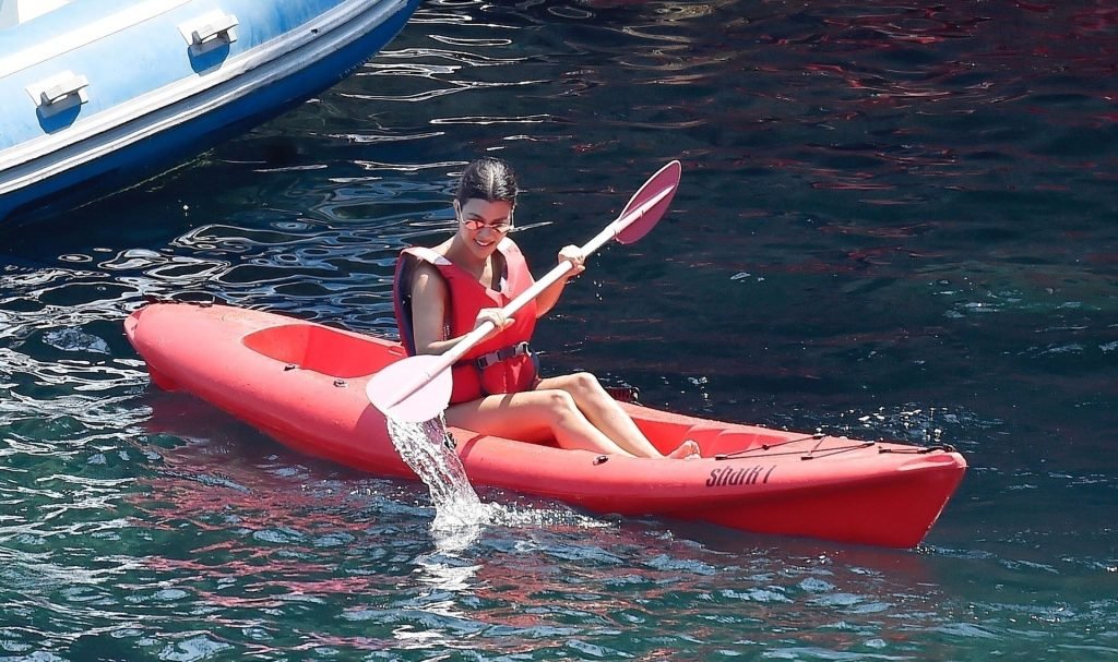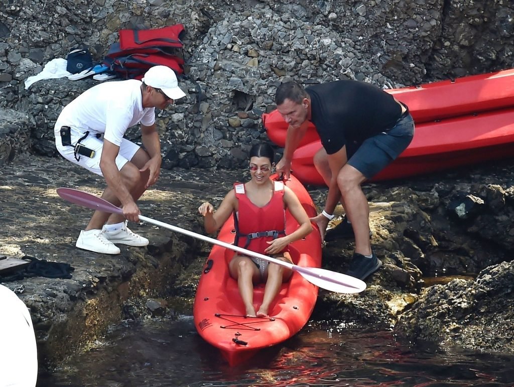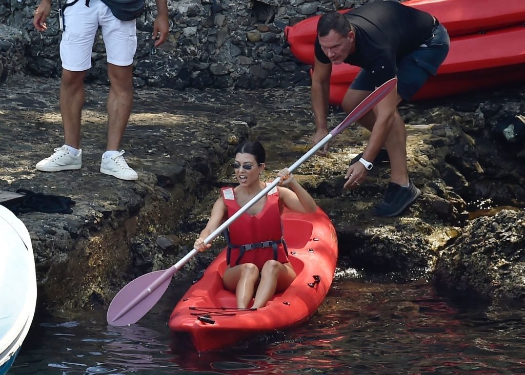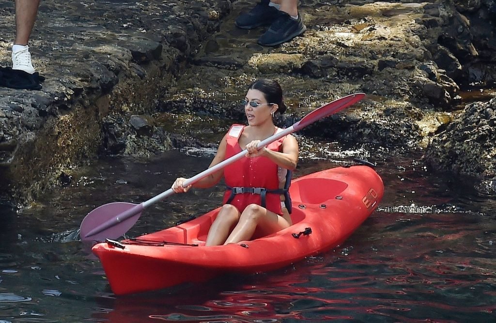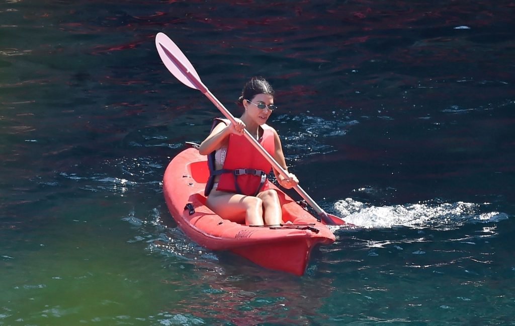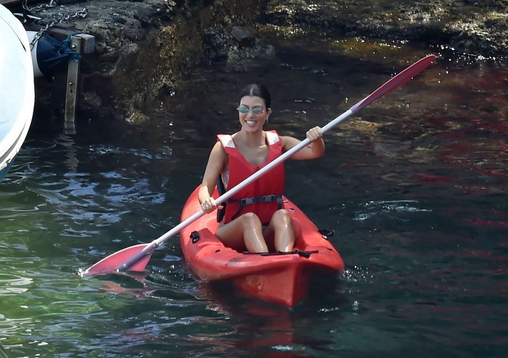 La estrella estadounidense de reality Kourtney Kardashian se aventura en el agua para un paseo en canoa durante sus vacaciones europeas con sus hijos en Portofino, 04/08/2019.