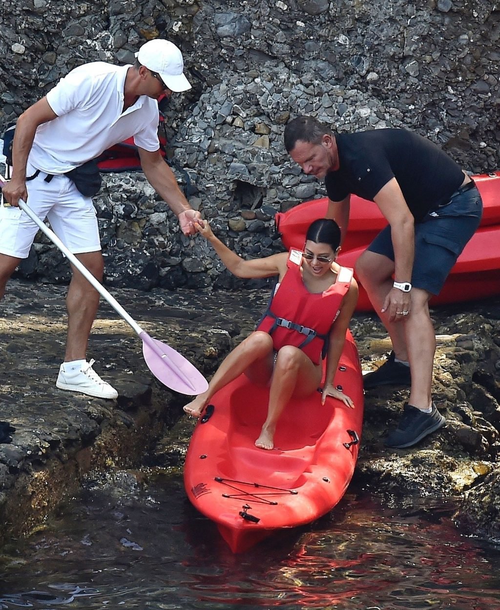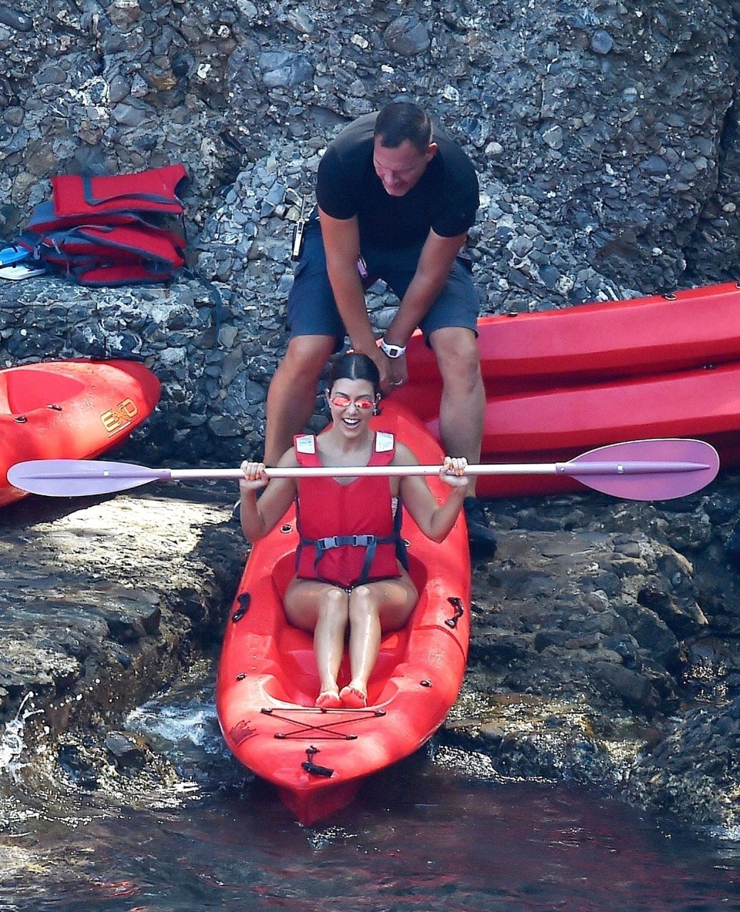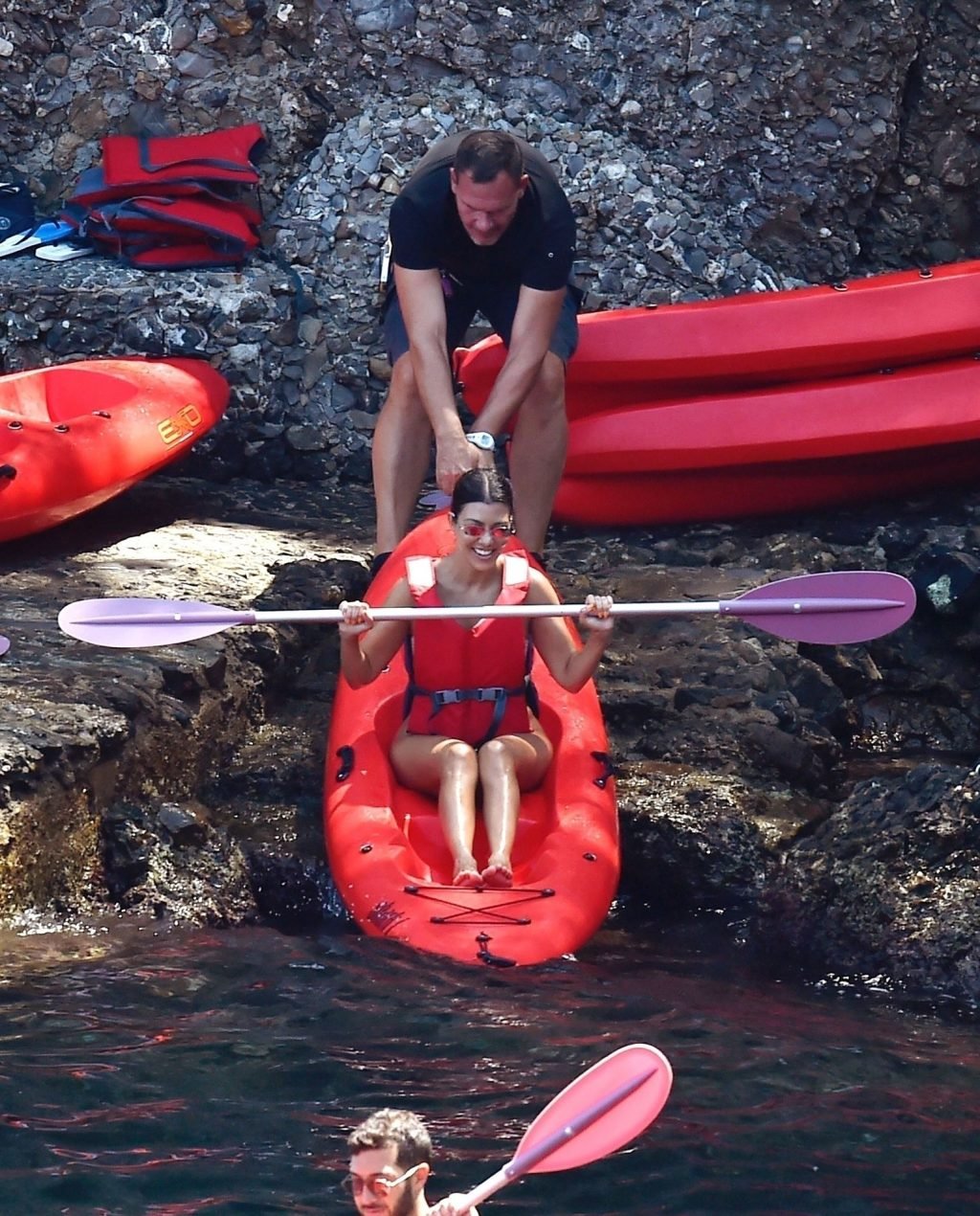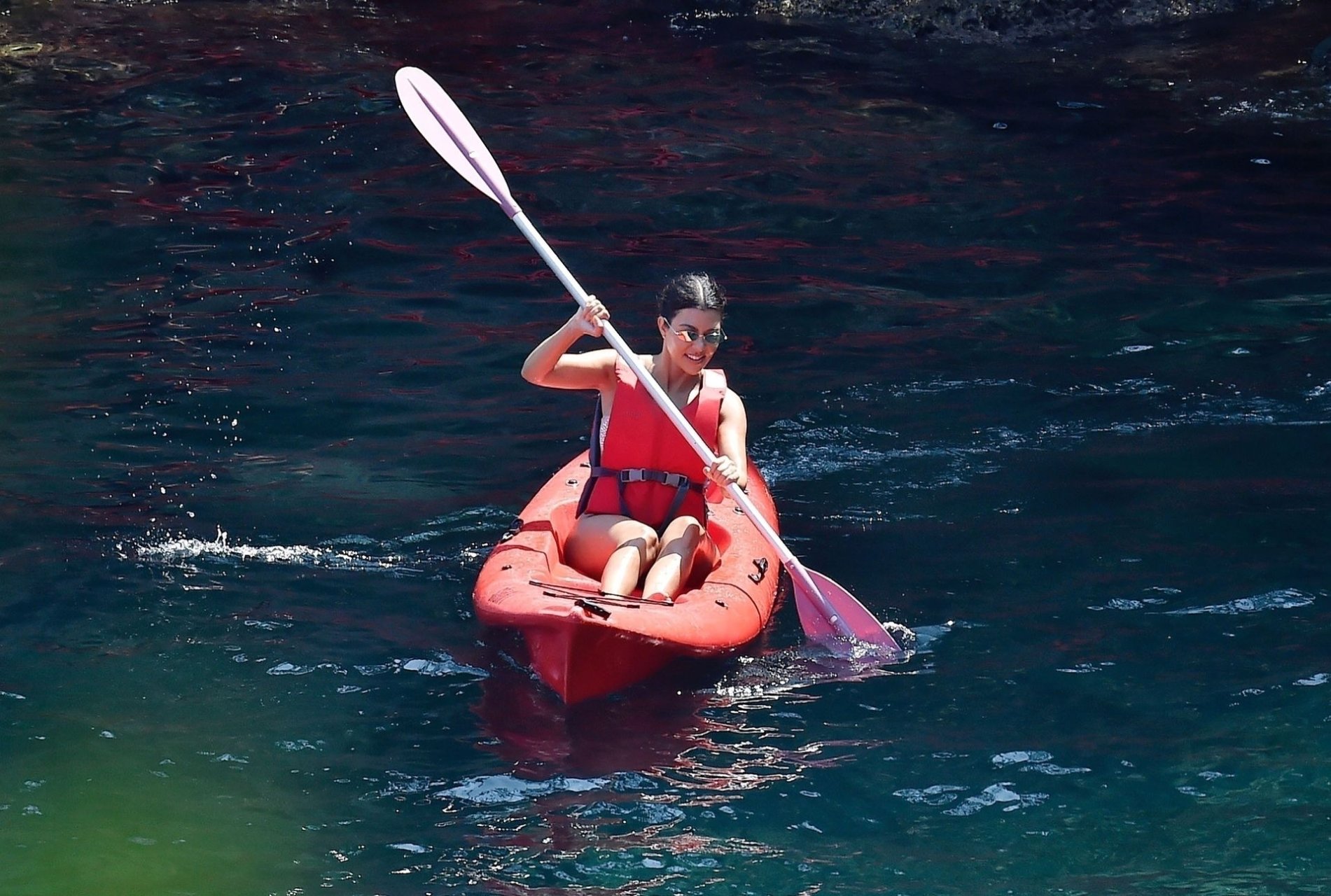La estrella estadounidense de reality Kourtney Kardashian se aventura en el agua para un paseo en canoa durante sus vacaciones europeas con sus hijos en Portofino, 04/08/2019.