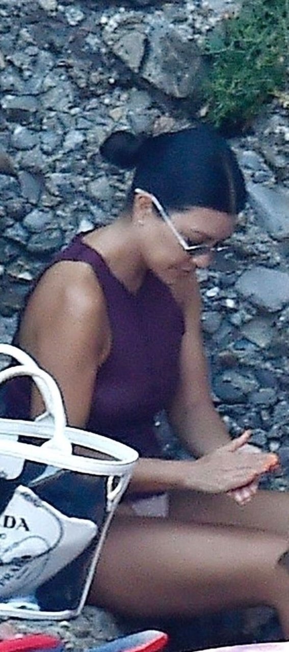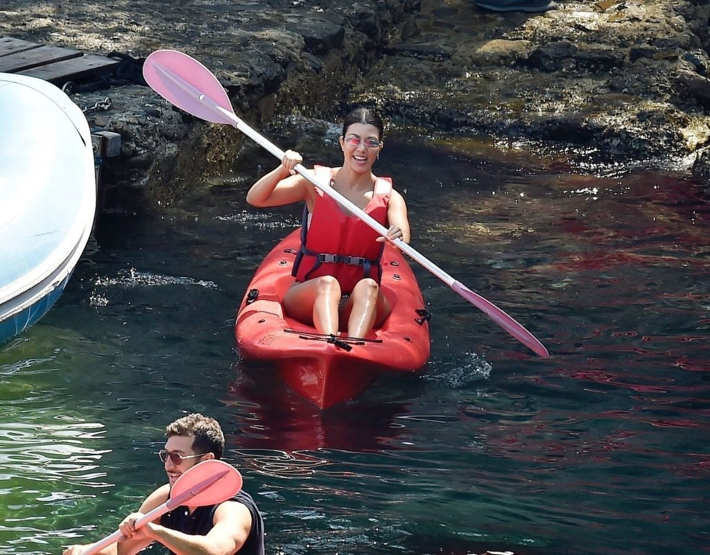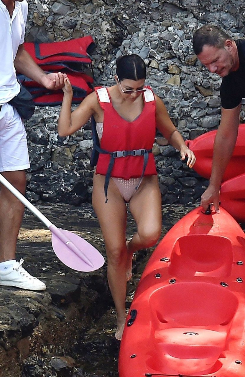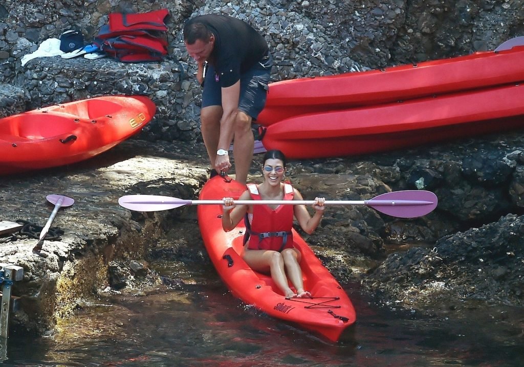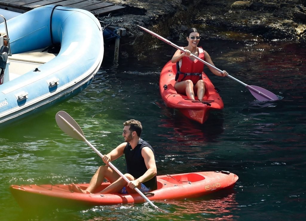 La estrella estadounidense de reality Kourtney Kardashian se aventura en el agua para un paseo en canoa durante sus vacaciones europeas con sus hijos en Portofino, 04/08/2019.