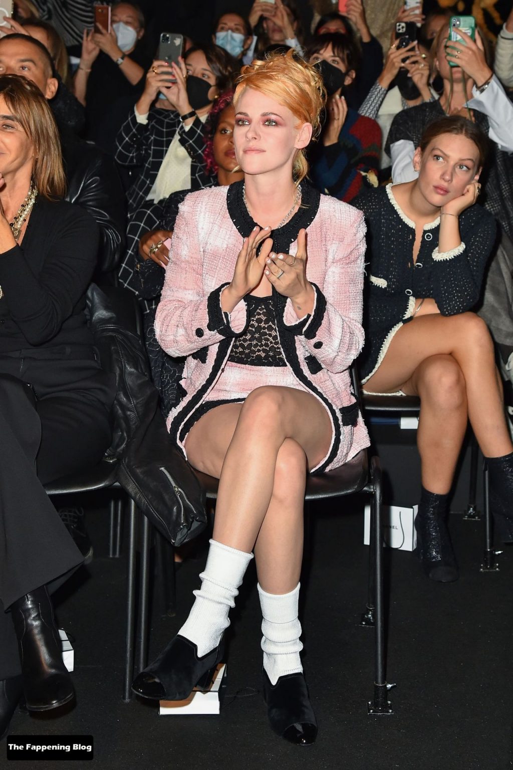 Kristen Stewart muestra sus piernas sexys y enseña sus bragas en el desfile de Chanel Womenswear Primavera/Verano 2022 (98 Fotos)