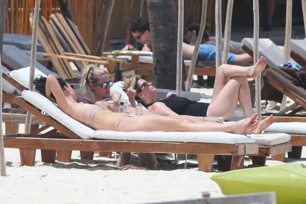 Hoy tenemos fotos en bikini del año pasado de Kristin Cavallari mientras disfrutaba de unas vacaciones de chicas con amigas en Tulum, 17/05/2018. La estrella se empapó del sol y jugó en las olas, mostrando su figura delgada en un pequeño bikini a rayas.