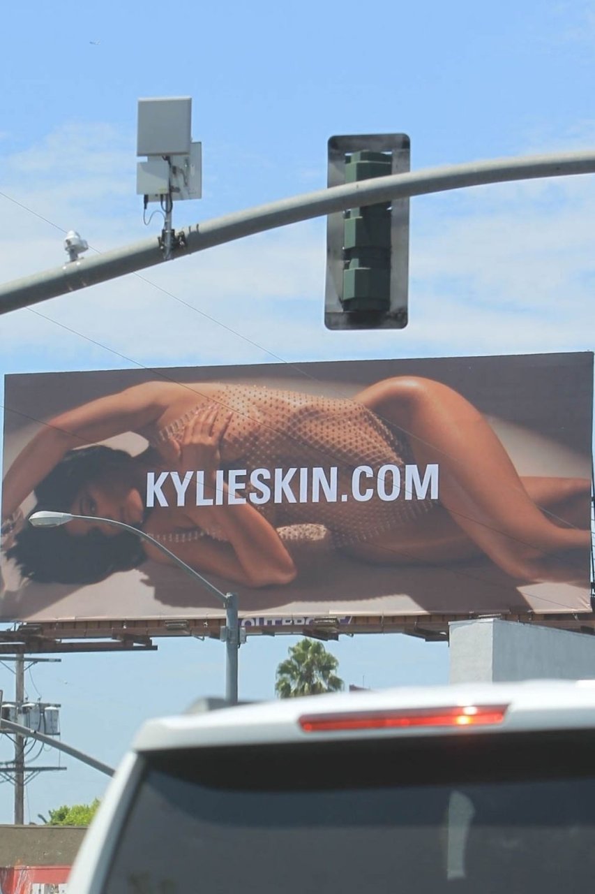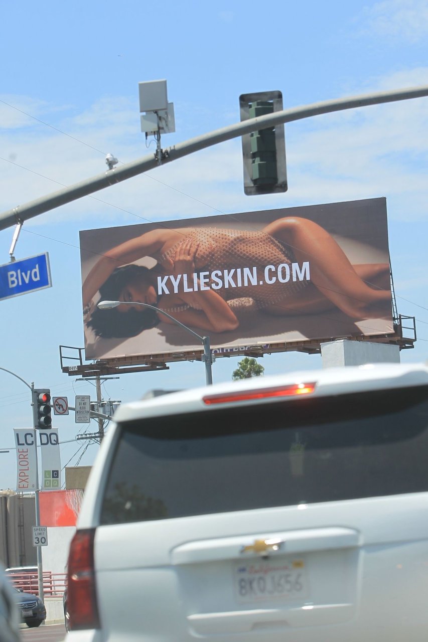 Consulta el anuncio de Kylie Jenner para la sobrevalorada Kylie Skin en La Cienga Blvd en Hollywood, 22/07/2019 + una foto más caliente de Instagram.