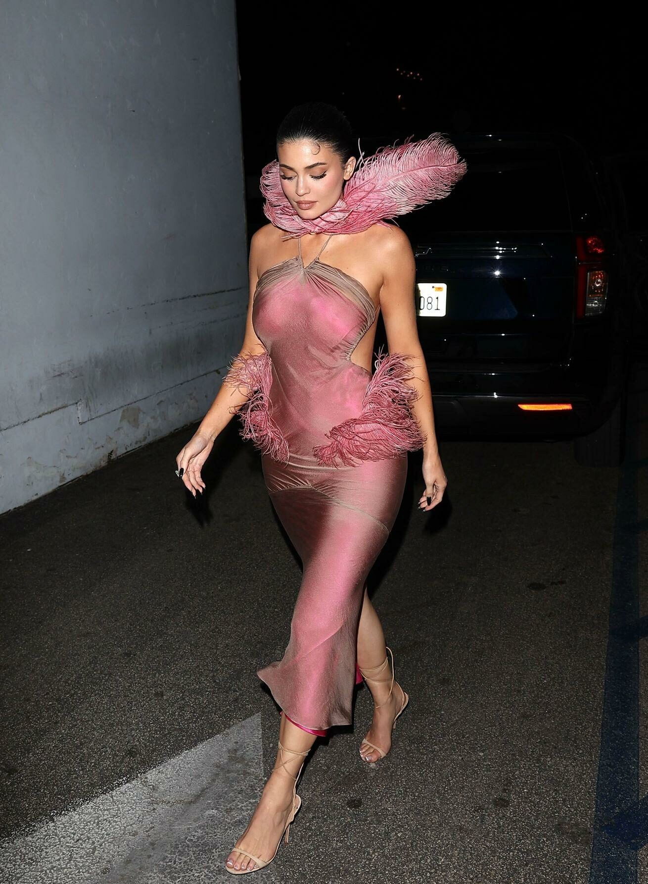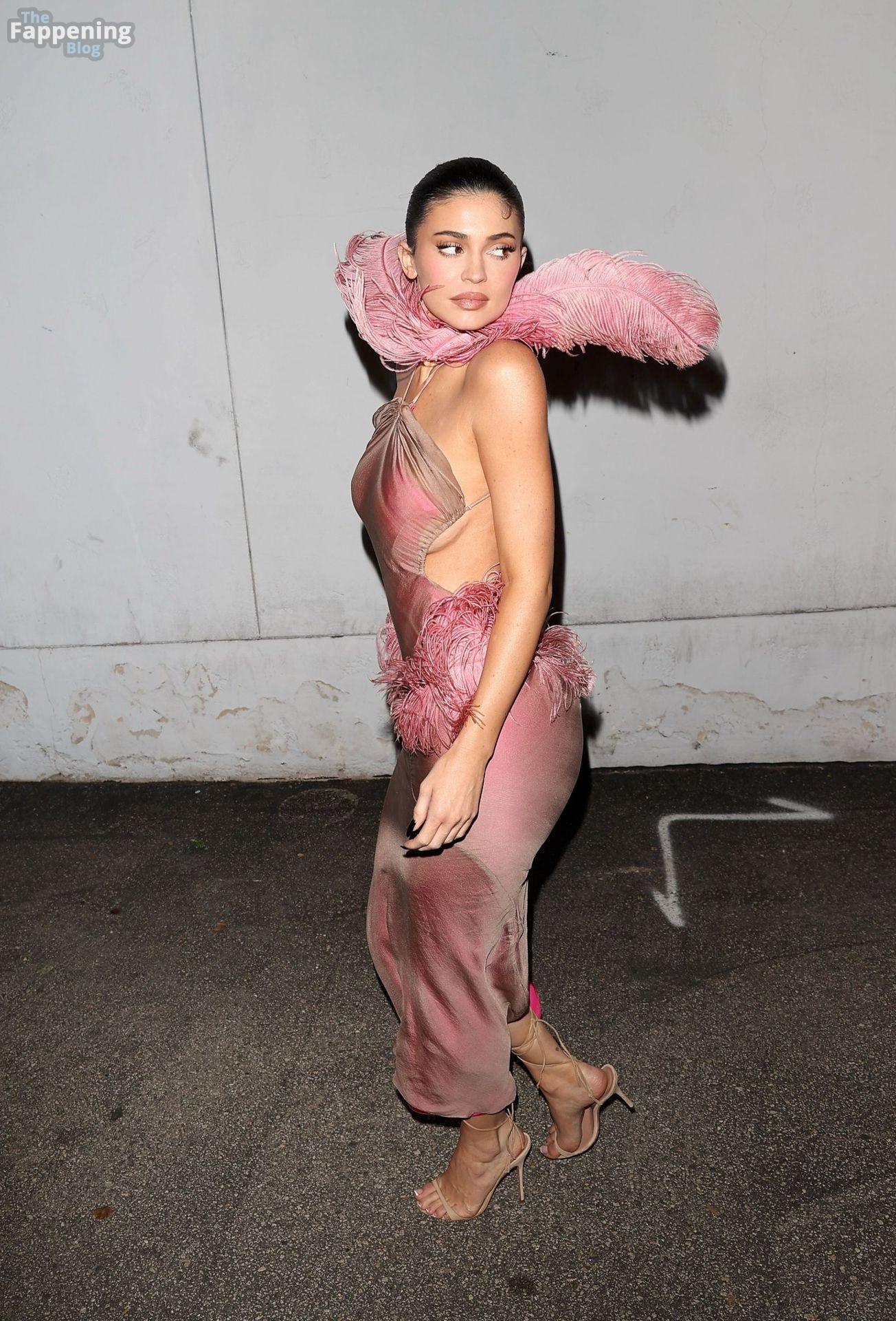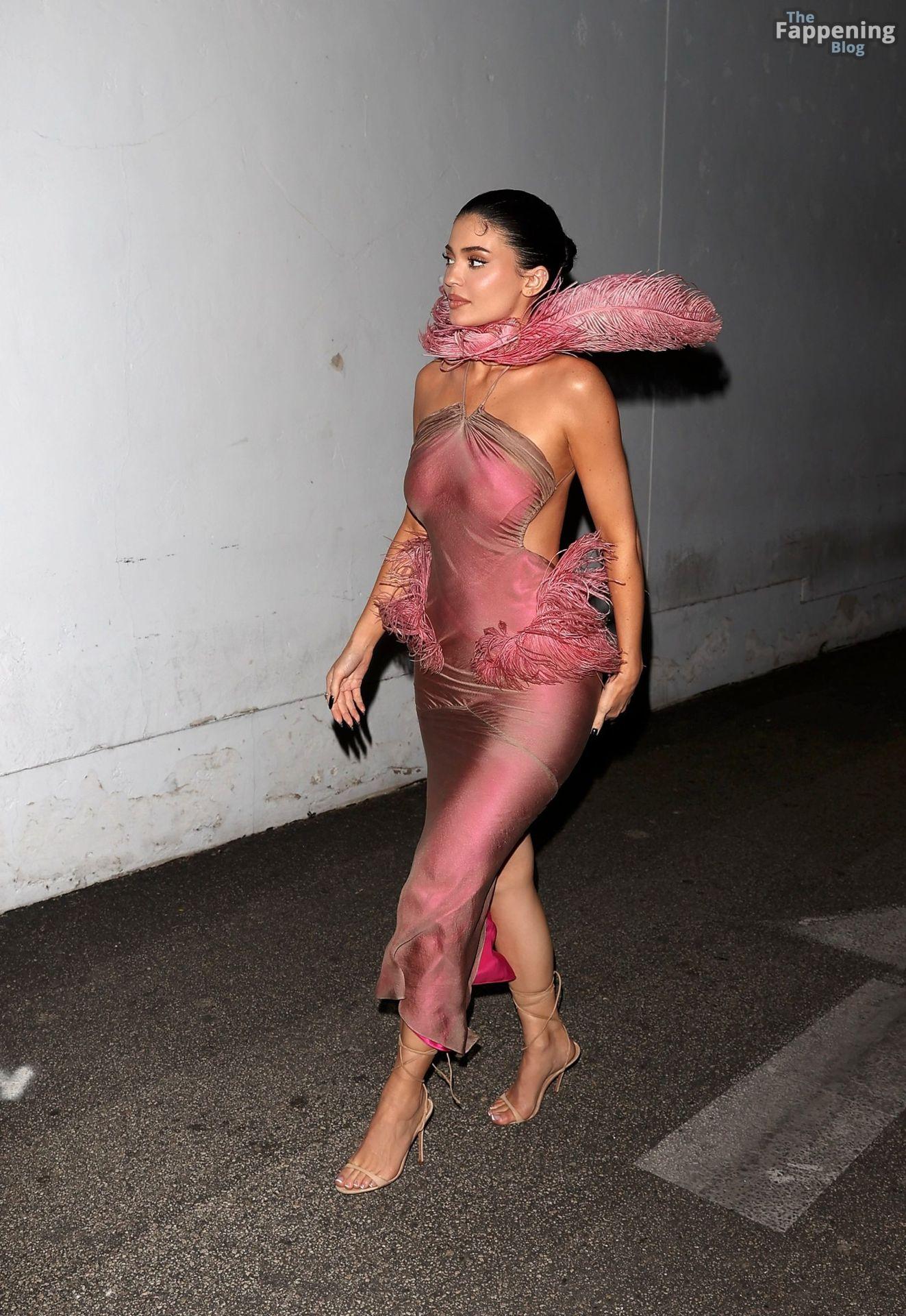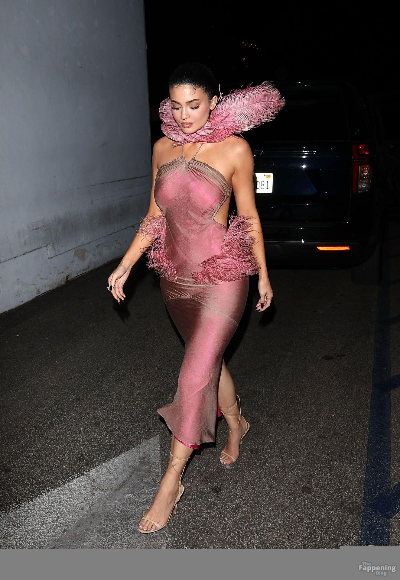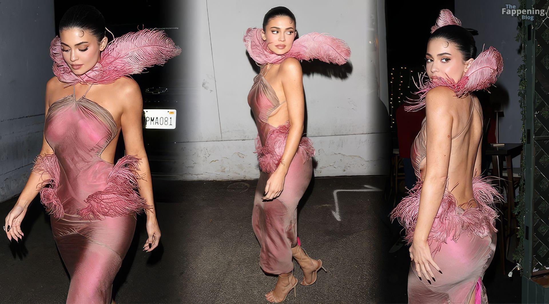 Kylie Jenner hizo una entrada sexy en la fiesta de Navidad de Kylie Cosmetics el martes por la noche, llegando al restaurante mexicano Casa Vega en Sherman Oaks con un llamativo vestido personalizado diseñado por Conner Ives.