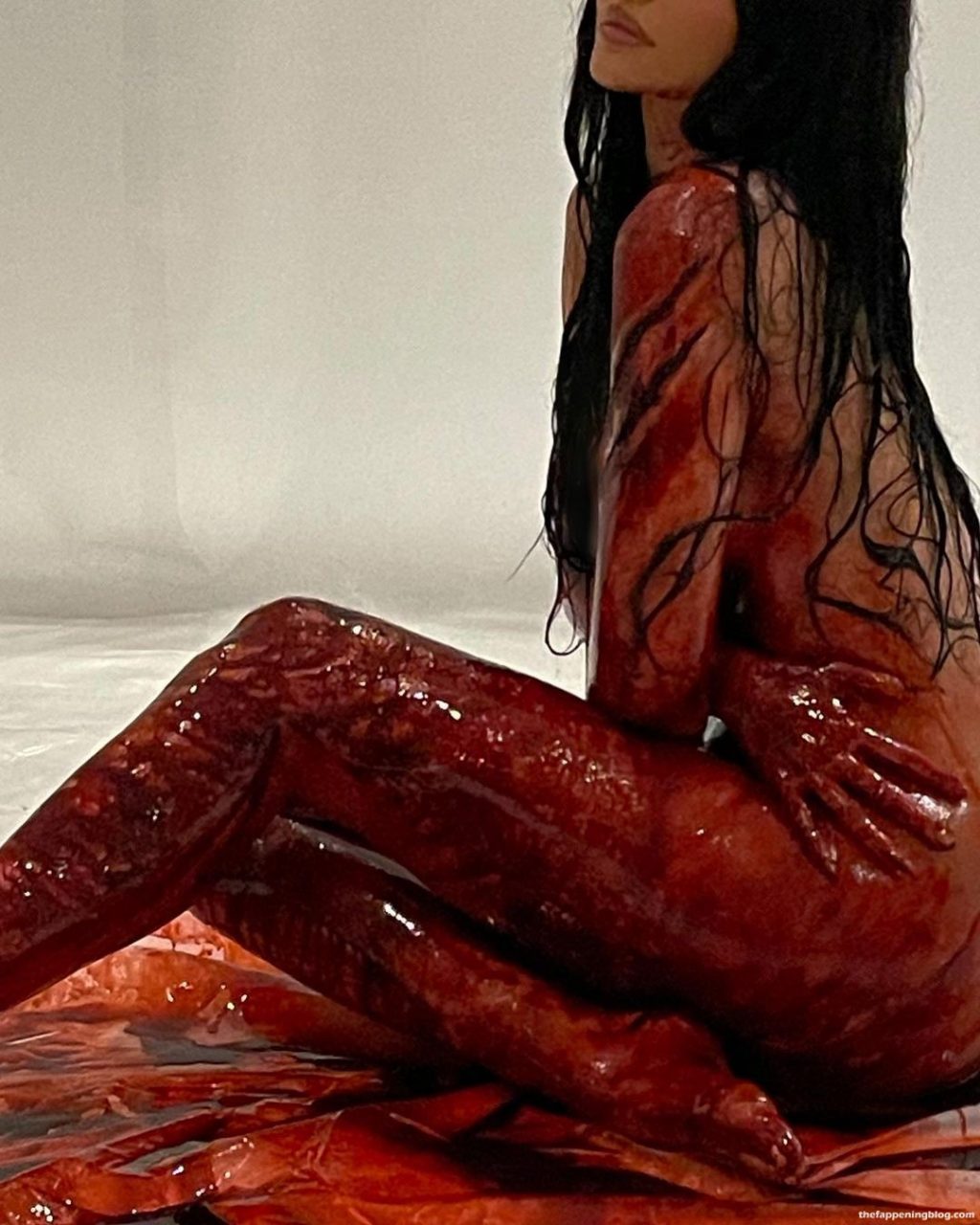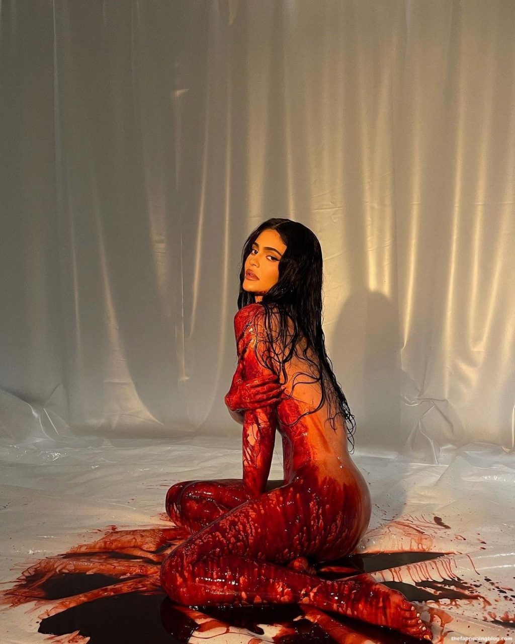Kylie Jenner posa completamente desnuda, promocionando su nueva línea de cosméticos ‘Pesadilla en Elm Street’, cubriendo sus pechos y glúteos desnudos – Instagram, 11/10/2021.