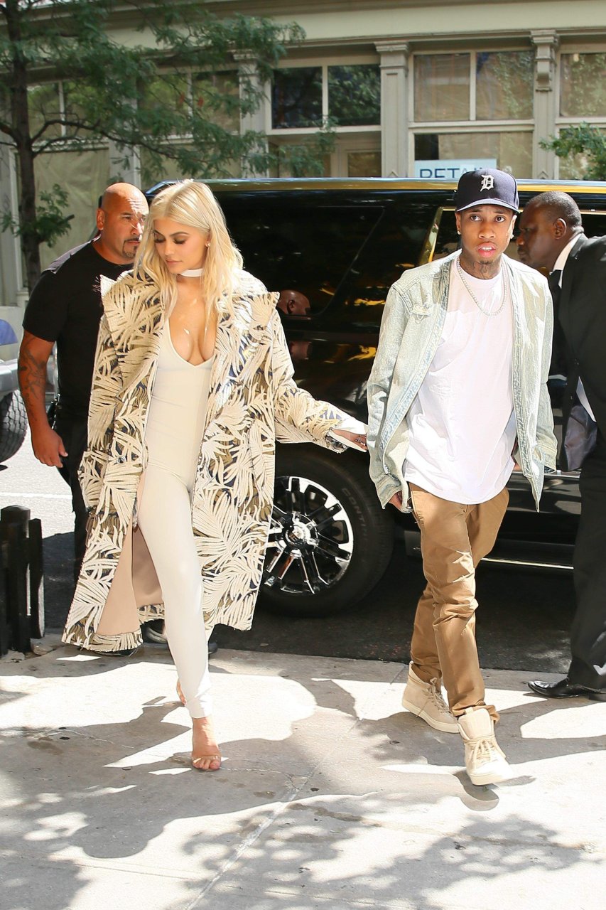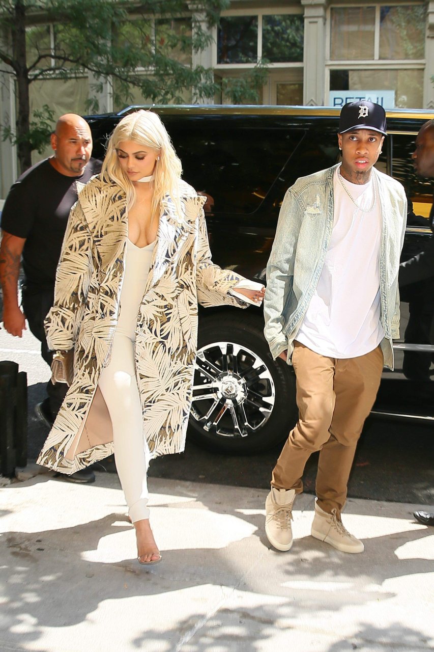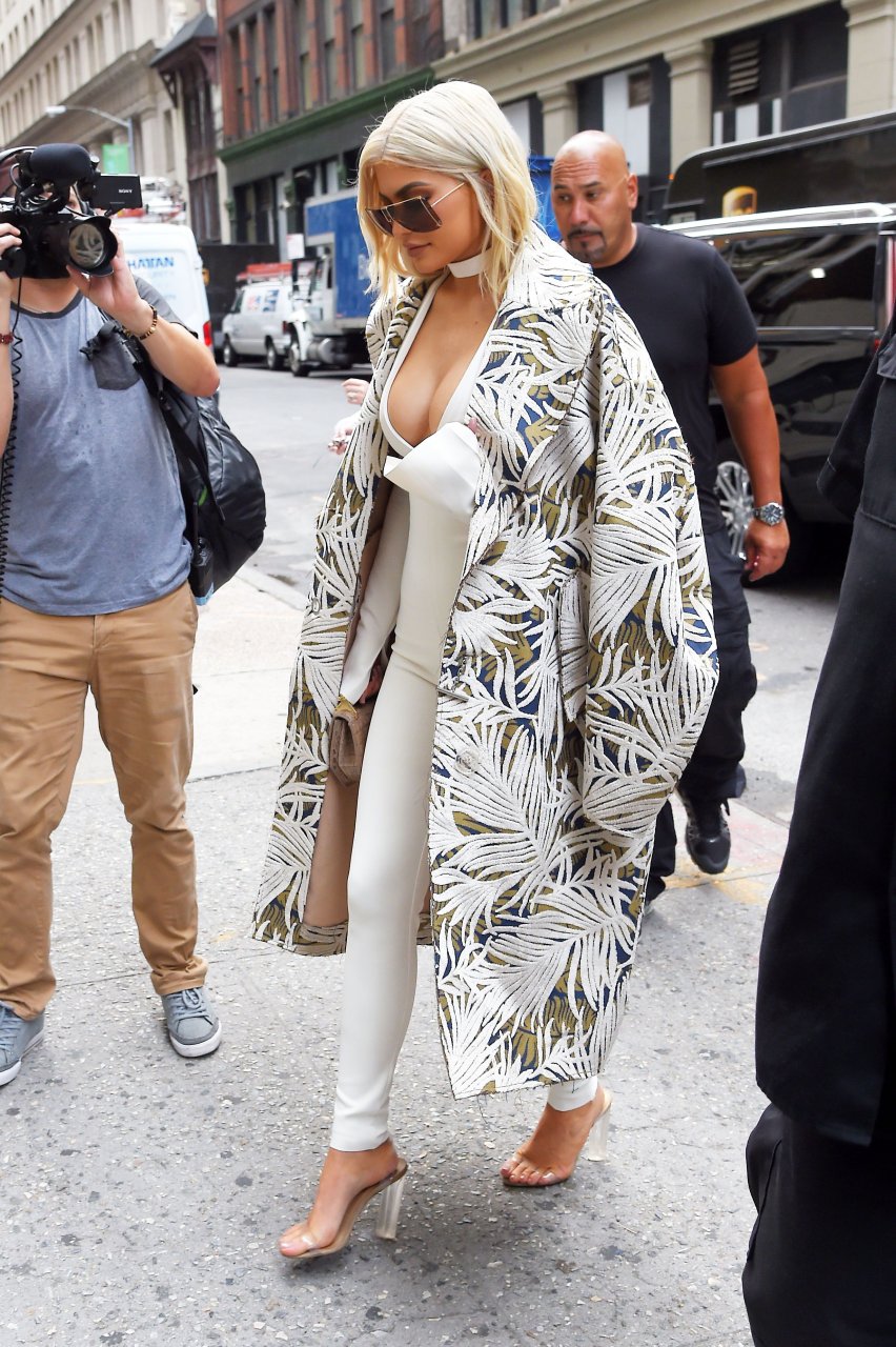 Kylie Jenner muestra un escote profundo y un nuevo peinado en Nueva York, 07/09/16. Kylie Jenner es una personalidad estadounidense de televisión de realidad, socialité, modelo y diseñadora de moda. Edad: 19 (10 de agosto de 1997).
