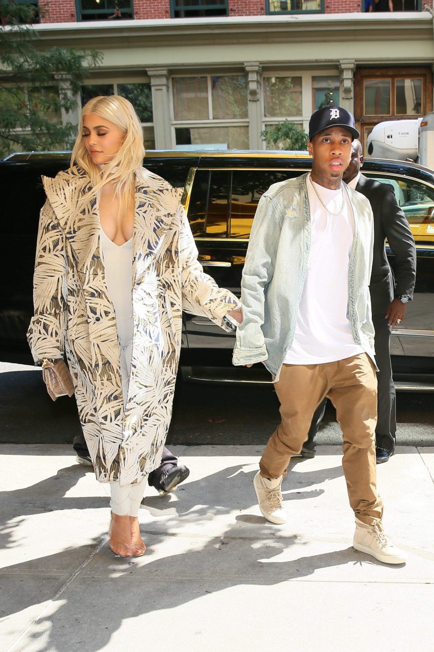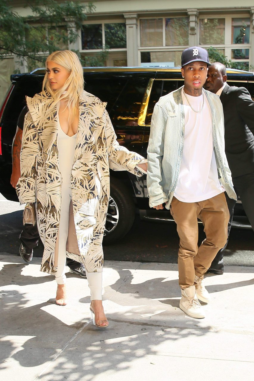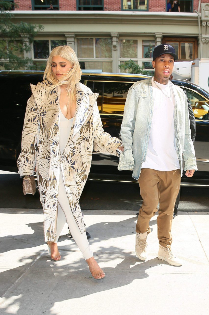 Kylie Jenner muestra un escote profundo y un nuevo peinado en Nueva York, 07/09/16. Kylie Jenner es una personalidad estadounidense de televisión de realidad, socialité, modelo y diseñadora de moda. Edad: 19 (10 de agosto de 1997).