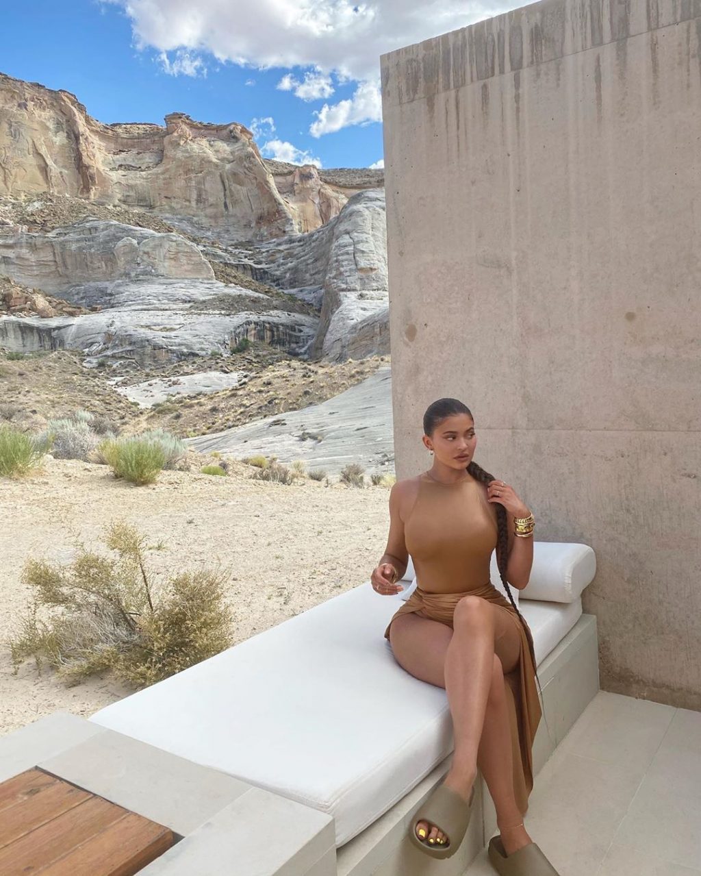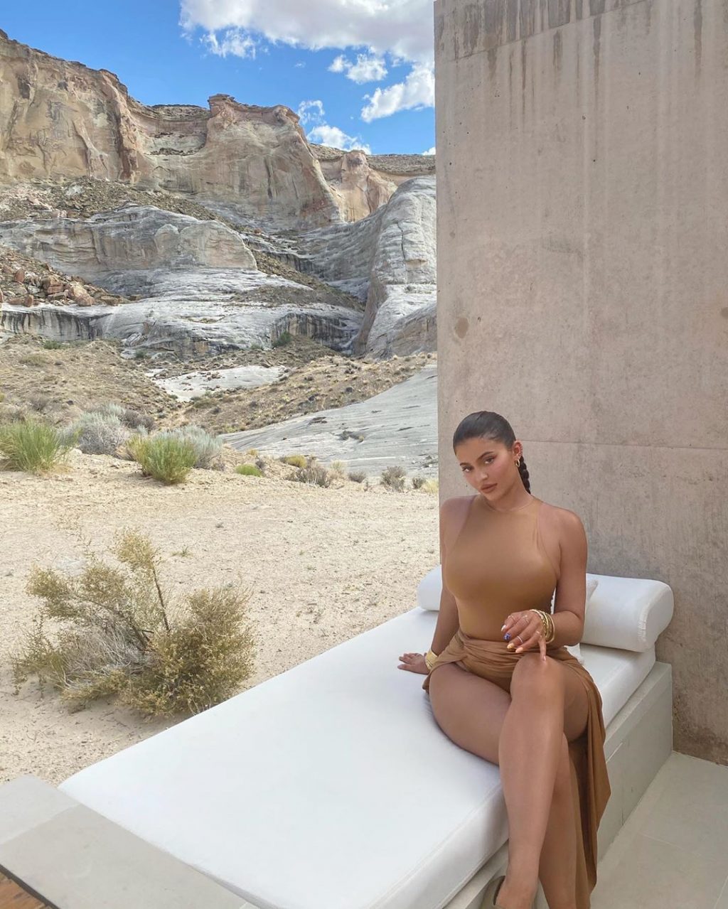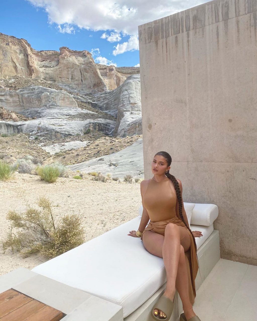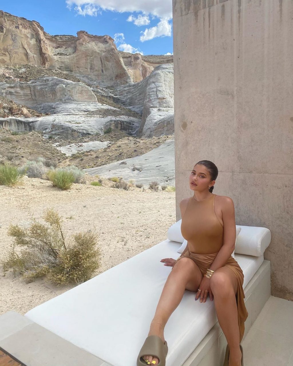 Fake Star Kylie Jenner muestra sus pechos y pies mientras posa con un vestido ajustado manteniendo la distancia social en Dakota del Sur – Instagram, 07/06/2020.