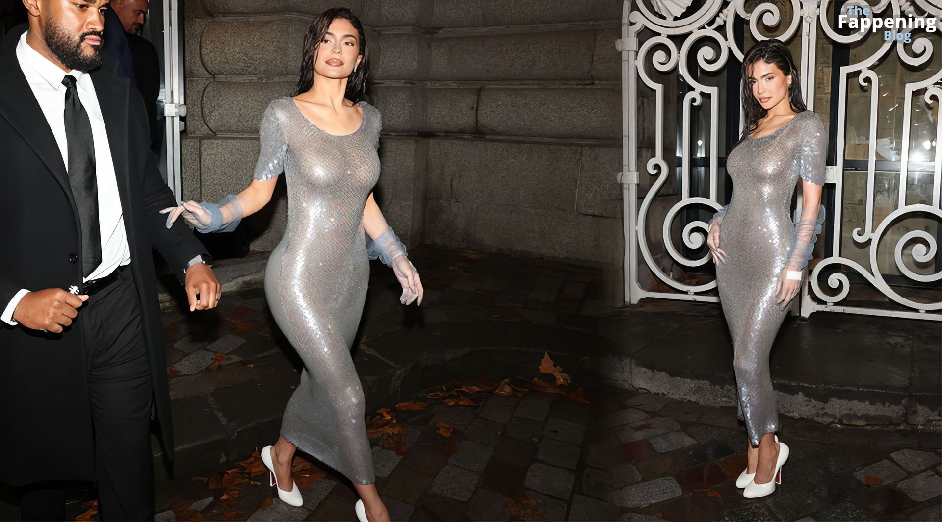 Kylie Jenner deslumbra con un vestido plateado en la Semana de la Moda de París (116 fotos)