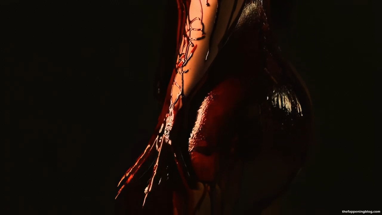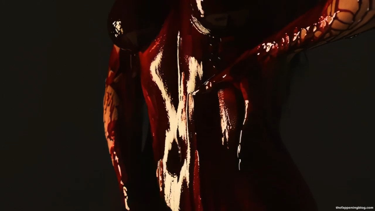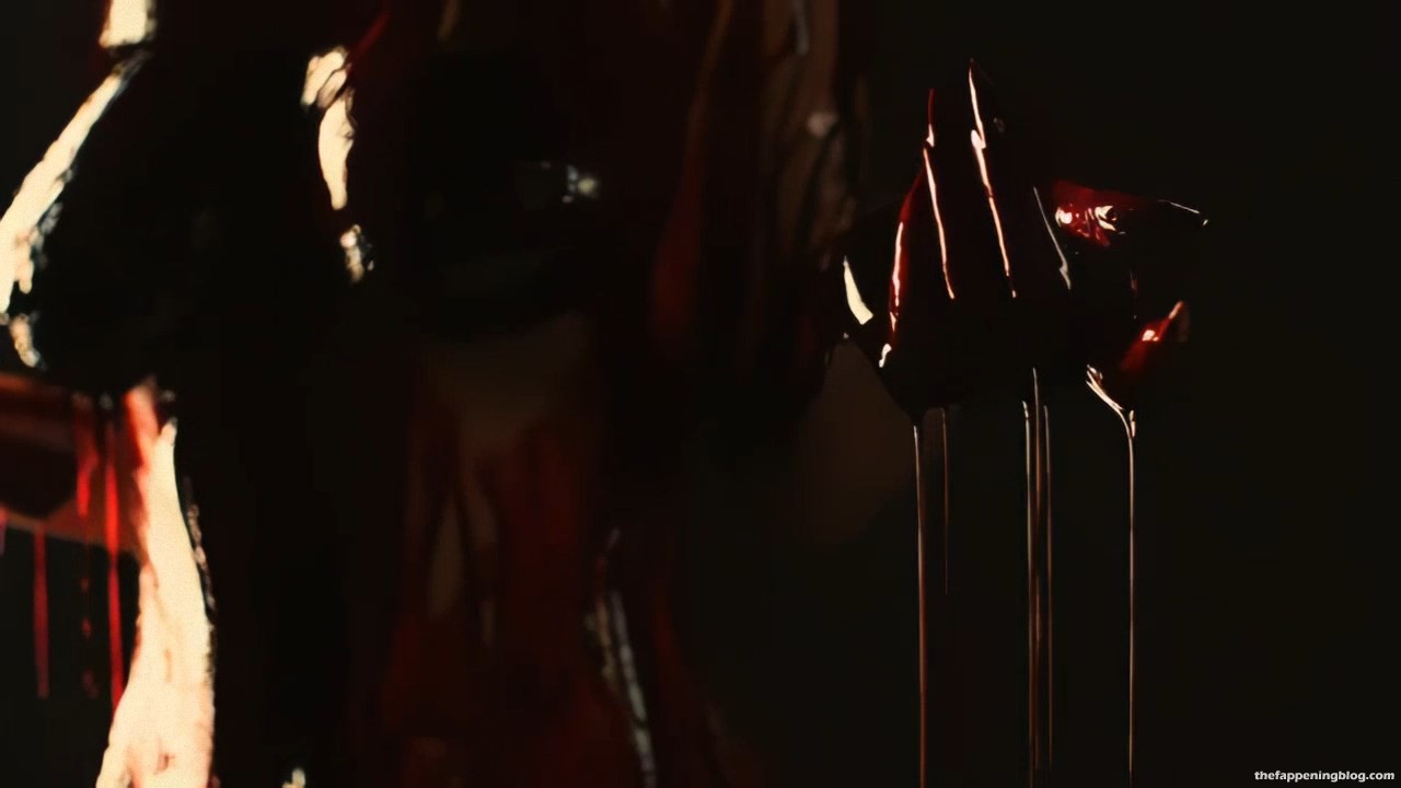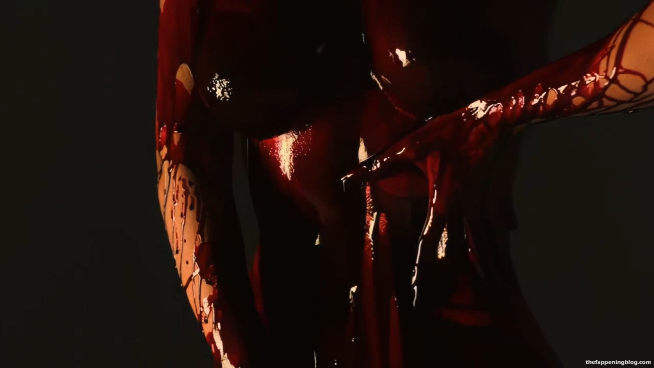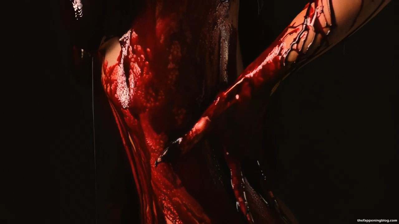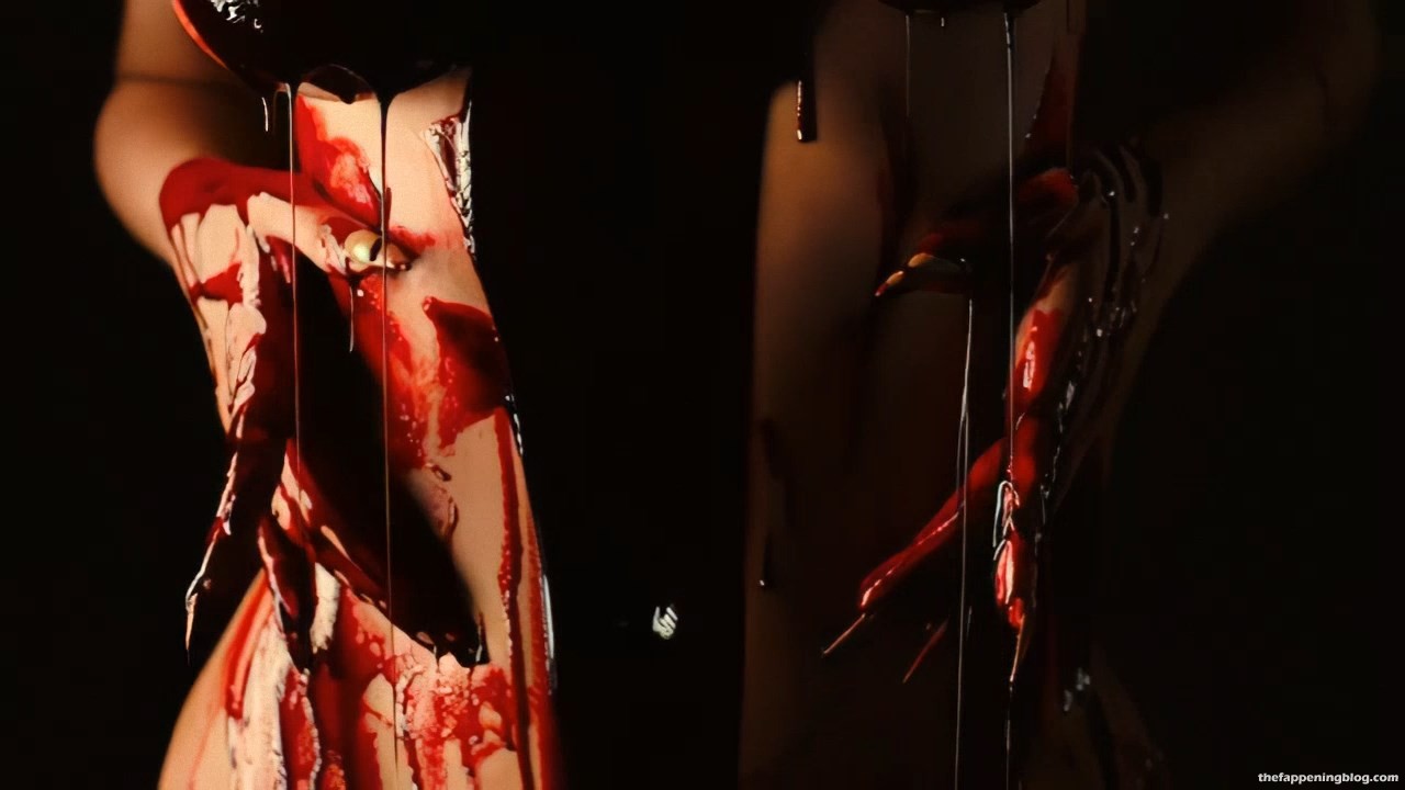 En el video en redes sociales en desnudez, Kylie Jenner presenta su nueva línea de cosméticos inspirada en “Pesadilla en Elm Street” en Halloween (octubre de 2021). Nos provoca con sus pechos, posando sin camiseta con sangre falsa cubriendo su cuerpo desnudo.