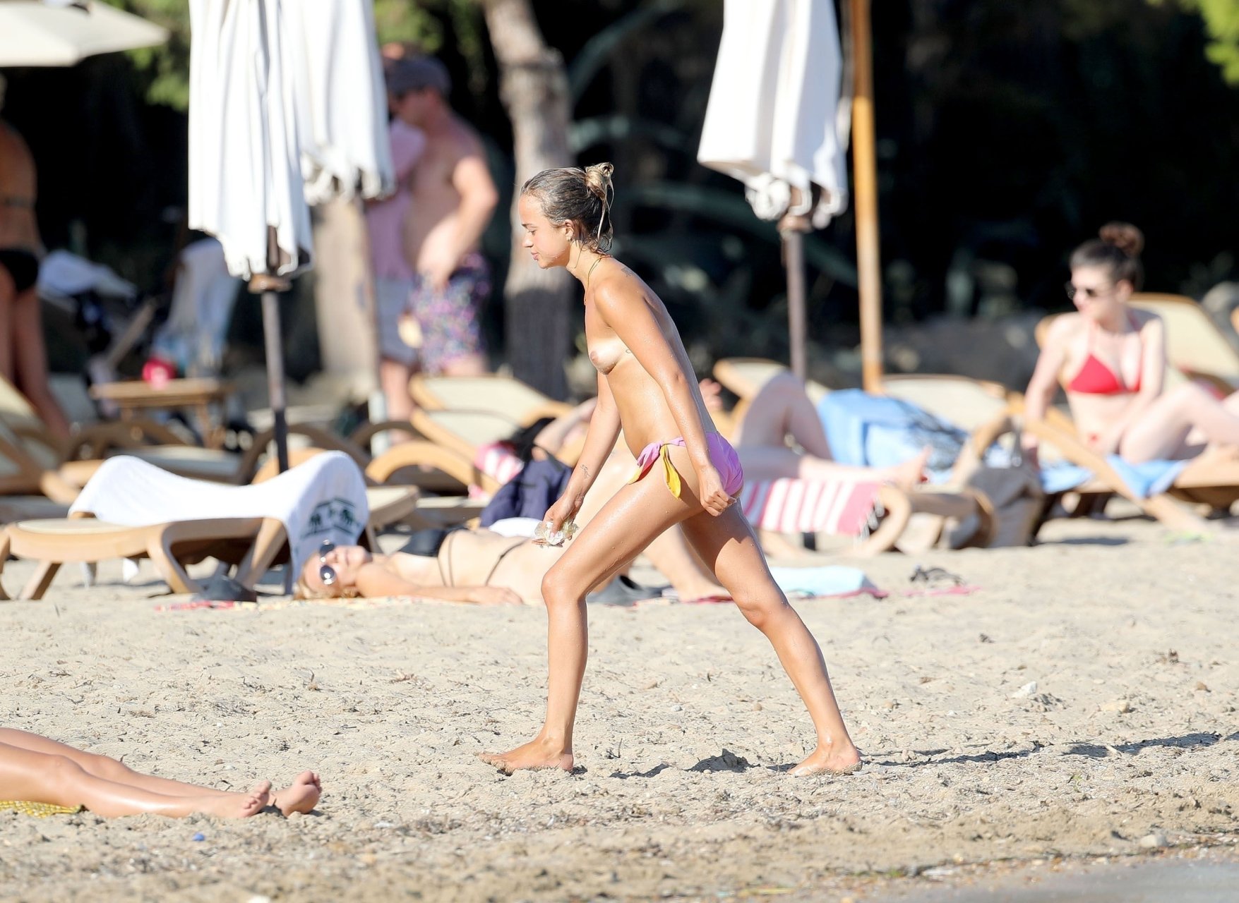 La modelo, que es la 38ª en la línea de sucesión al trono británico y prima de 22 años del Príncipe Harry, sobrina de la Princesa Diana, hizo su buena acción del día recogiendo basura mientras se daba un baño en el mar.