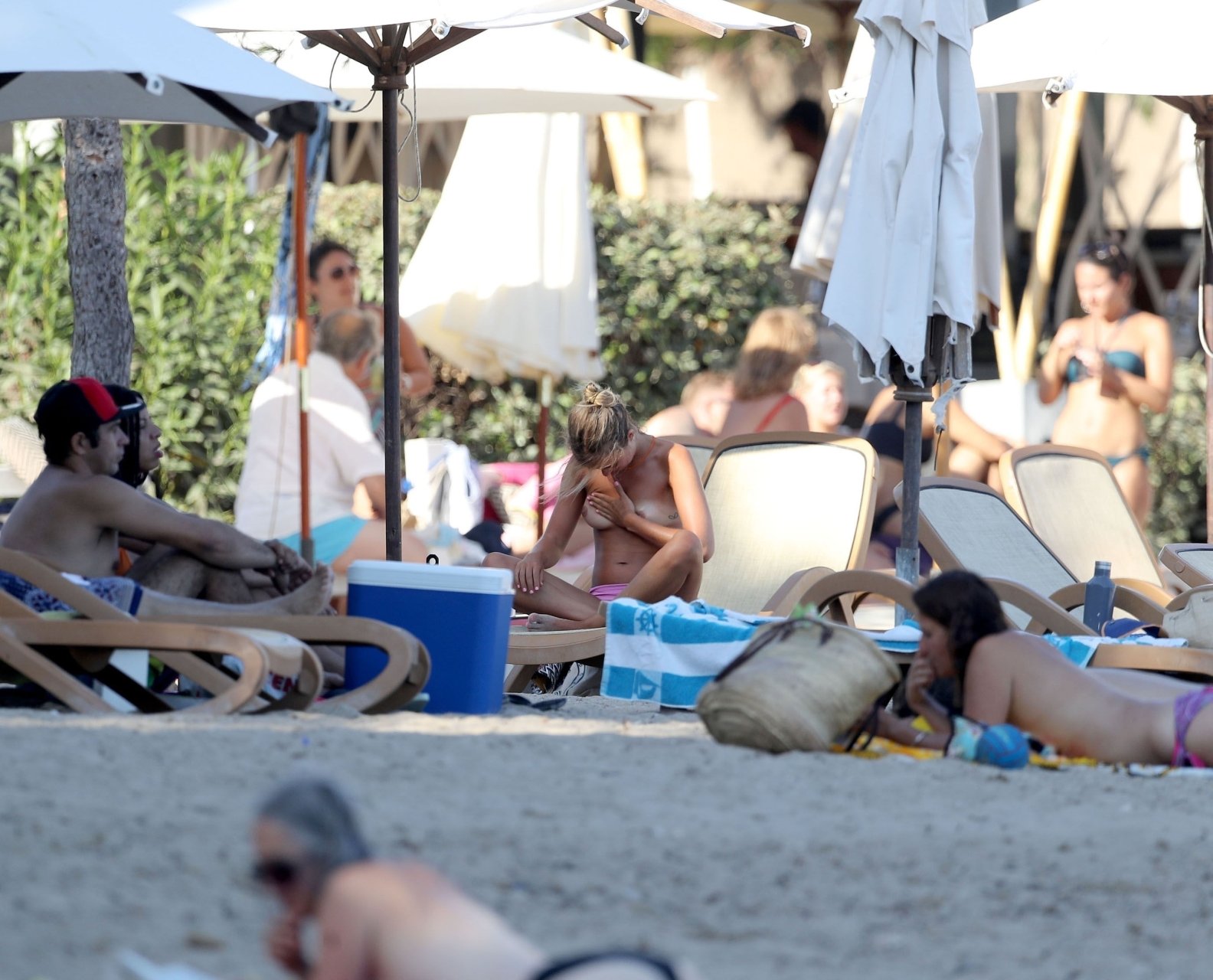 Lady Amelia Windsor fotografiada disfrutando del sol de Ibiza y se quita la parte superior mientras lee un libro y toma el sol durante su tiempo libre.
