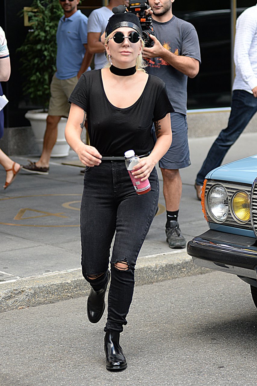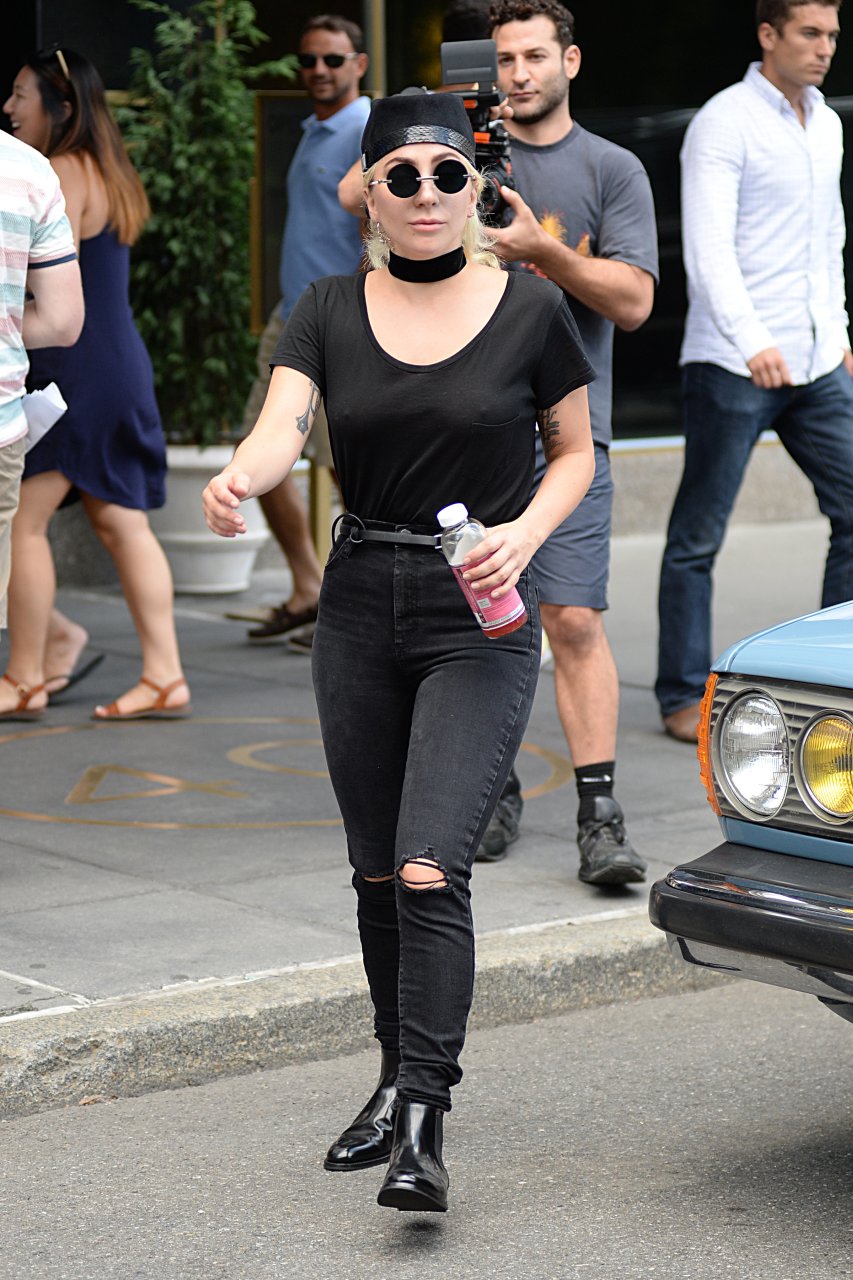 Lady Gaga saliendo de su apartamento en la ciudad de Nueva York, 27/07/2016. ¡Tetas! Lady Gaga (Stefani Joanne Angelina Germanotta) es una cantante, compositora y actriz estadounidense. Edad: 30 (28 de marzo de 1986).