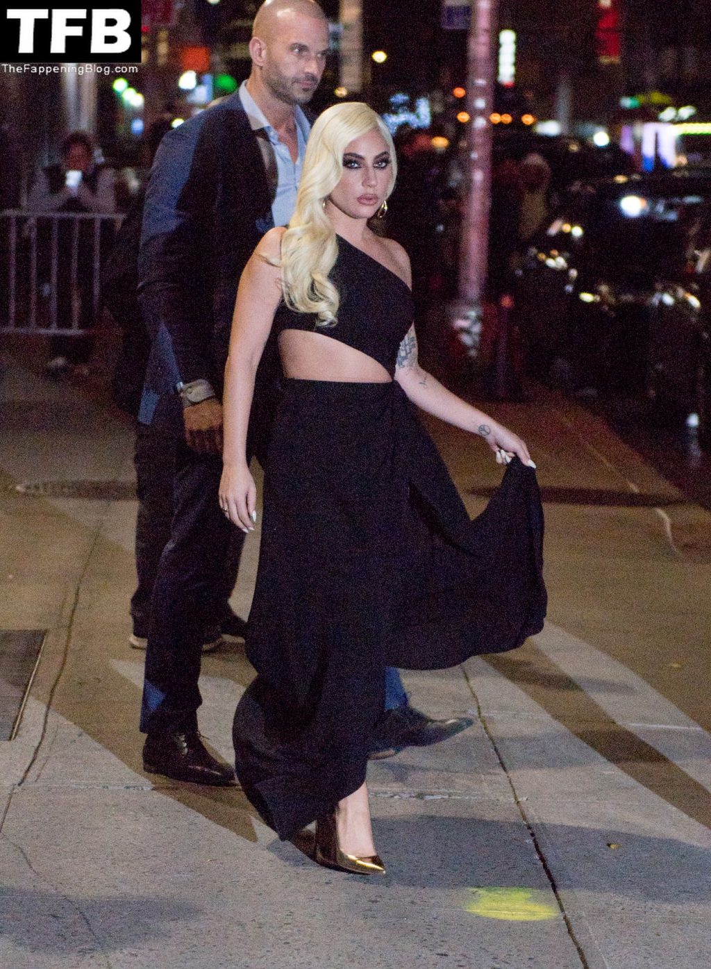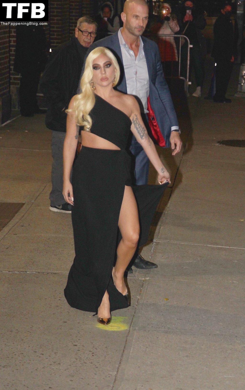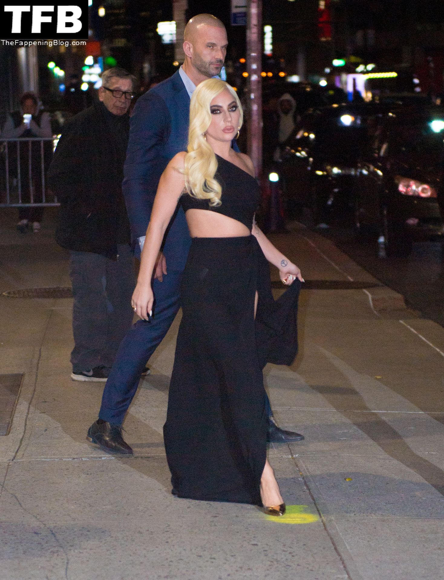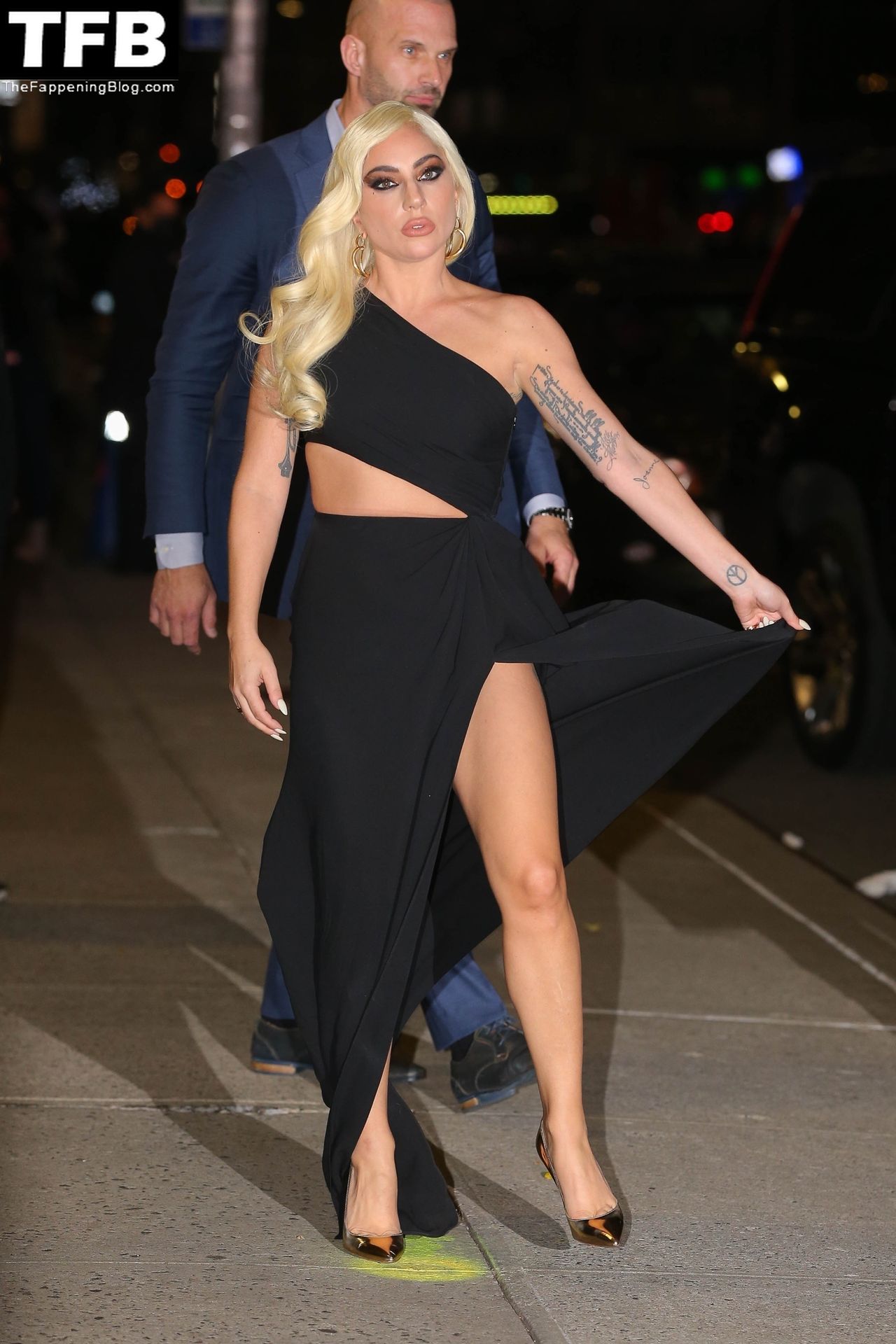 Lady Gaga fue vista saliendo del programa de Stephen Colbert en Manhattan y luciendo un vestido con corte en la pierna, posando como Marilyn Monroe… con su ropa interior color nude visible. La actriz convertida en cantante salió a promocionar su nueva película ‘House of Gucci’.