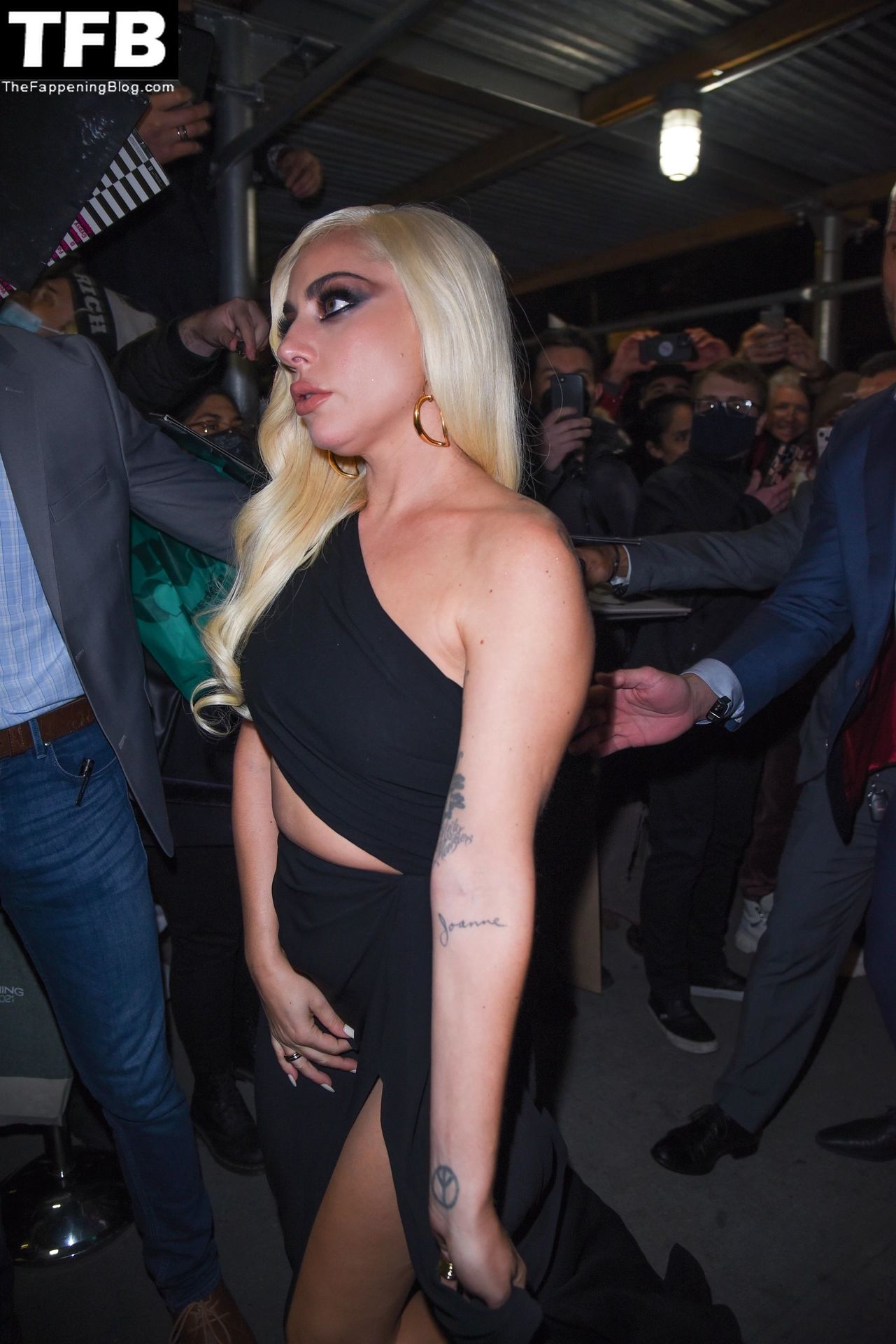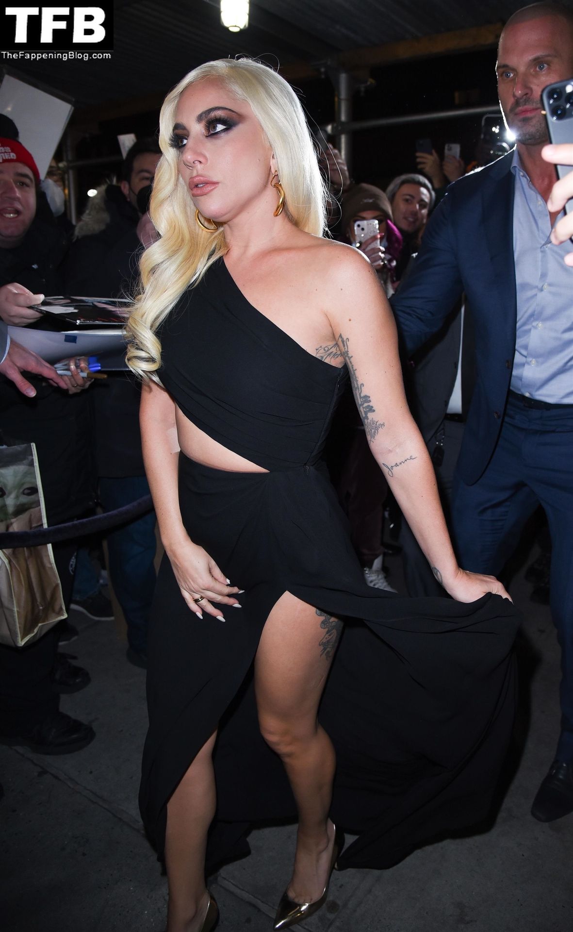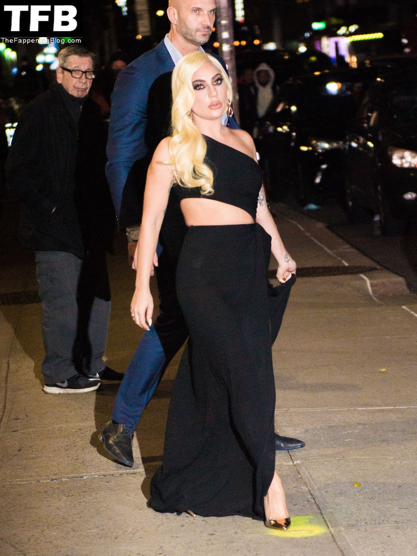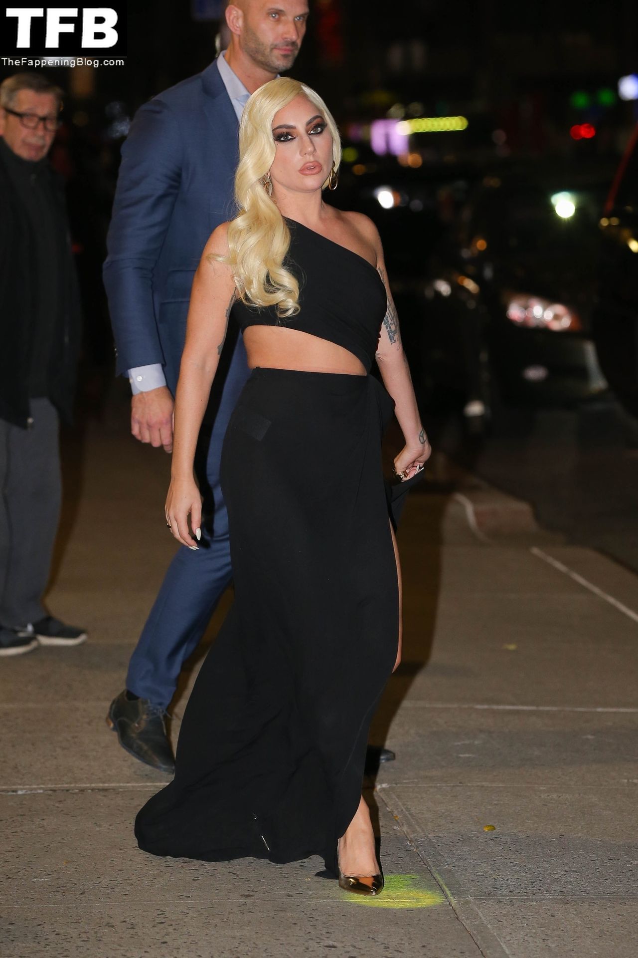 Lady Gaga fue vista saliendo del programa de Stephen Colbert en Manhattan y luciendo un vestido con corte en la pierna, posando como Marilyn Monroe… con su ropa interior color nude visible. La actriz convertida en cantante salió a promocionar su nueva película ‘House of Gucci’.