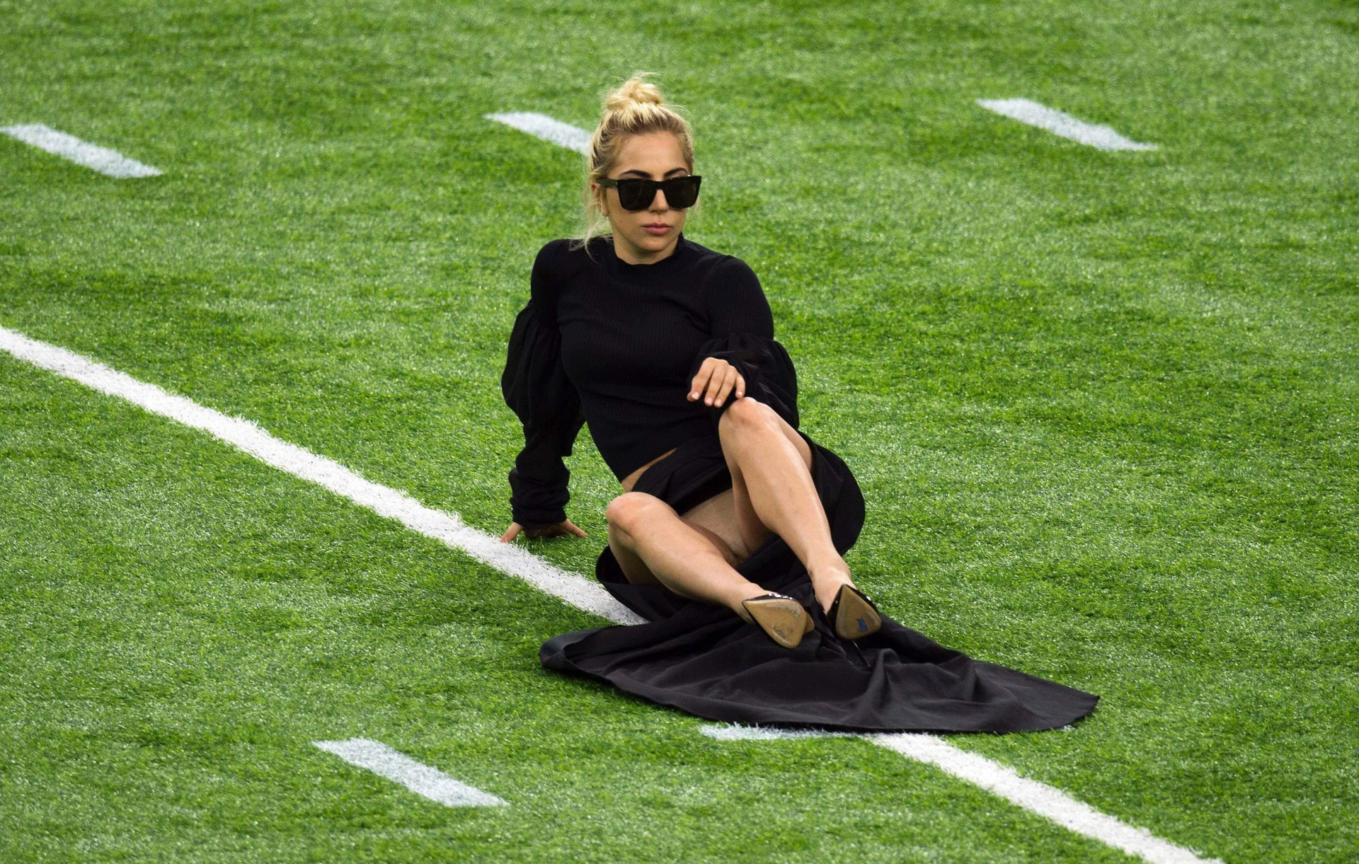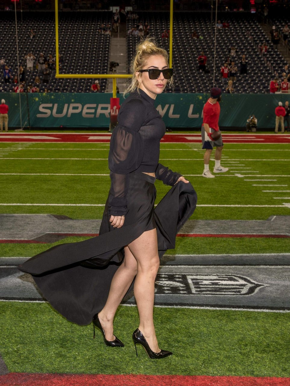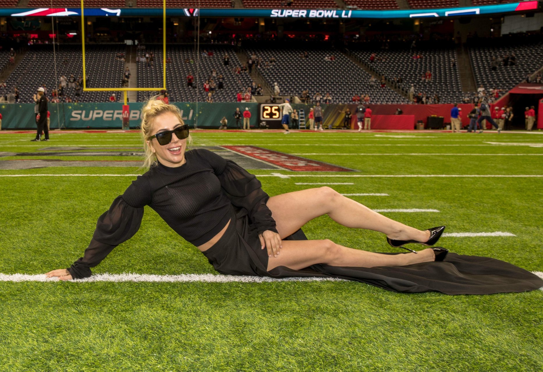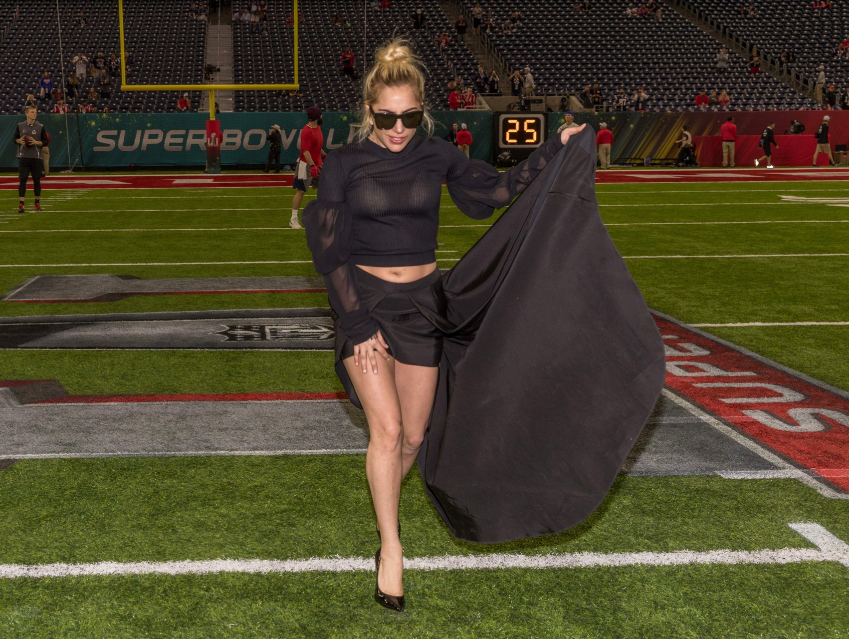 Lady Gaga muestra sus bragas en el Super Bowl 2017 en el NRG Stadium de Houston, 05/02/2017. Lady Gaga (nombre real Stefani Joanne Angelina Germanotta) es una cantante/compositora y actriz estadounidense. Edad: 30 (nacida el 28 de marzo de 1986).