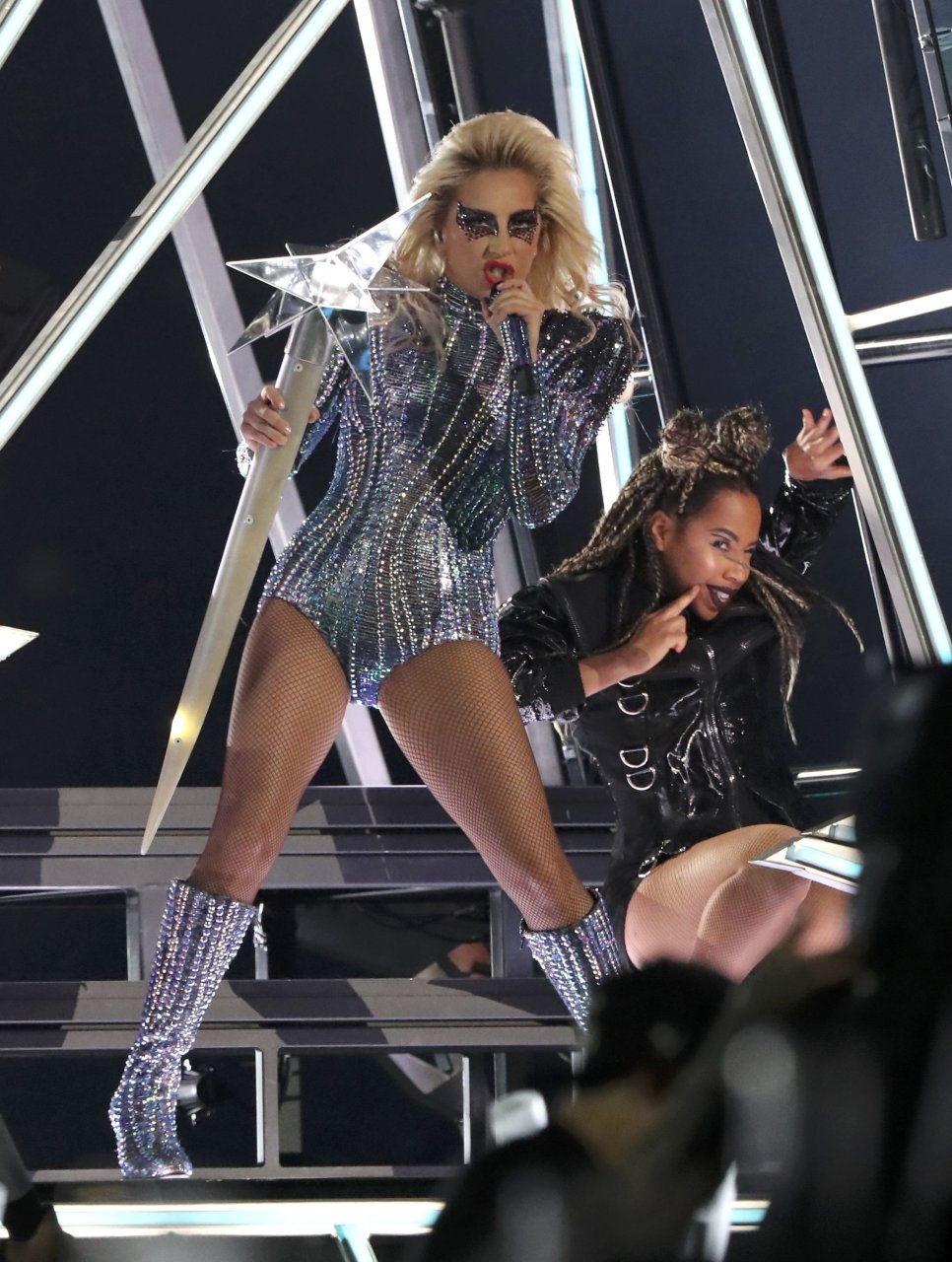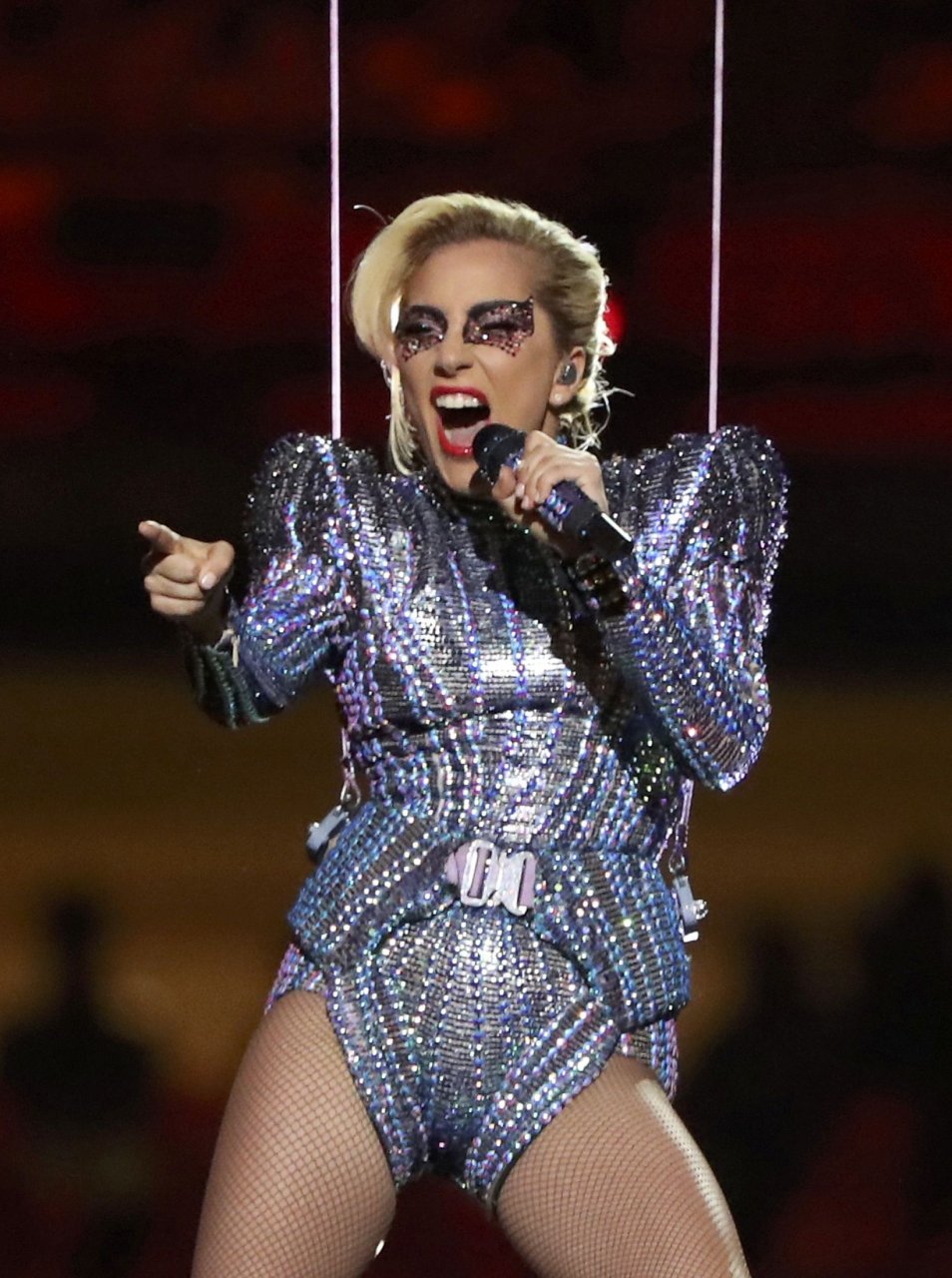Lady Gaga actúa durante el espectáculo de medio tiempo en el Super Bowl LI en Houston