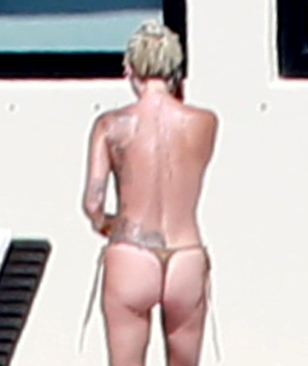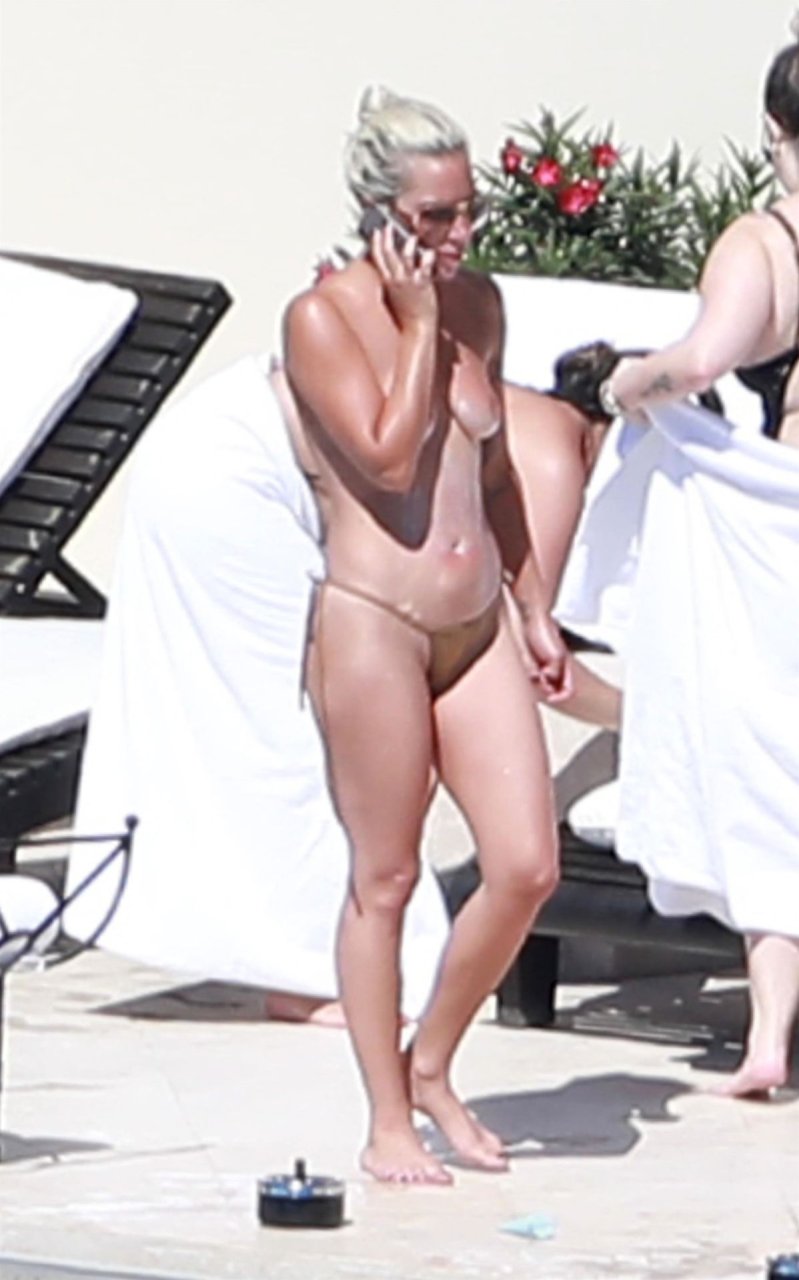 La cantante y actriz estadounidense Lady Gaga se broncea topless tomando el sol en México con amigos, 14/02/2019.