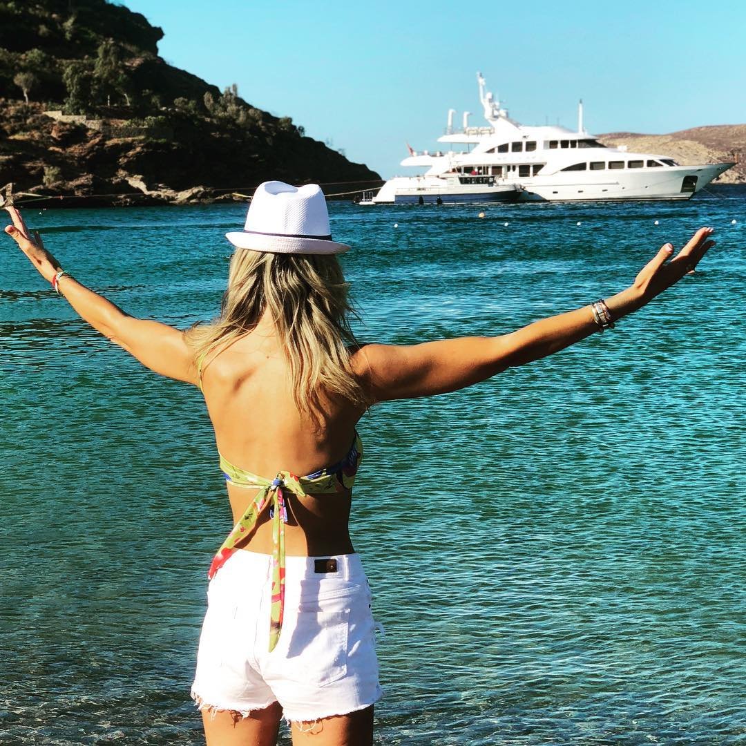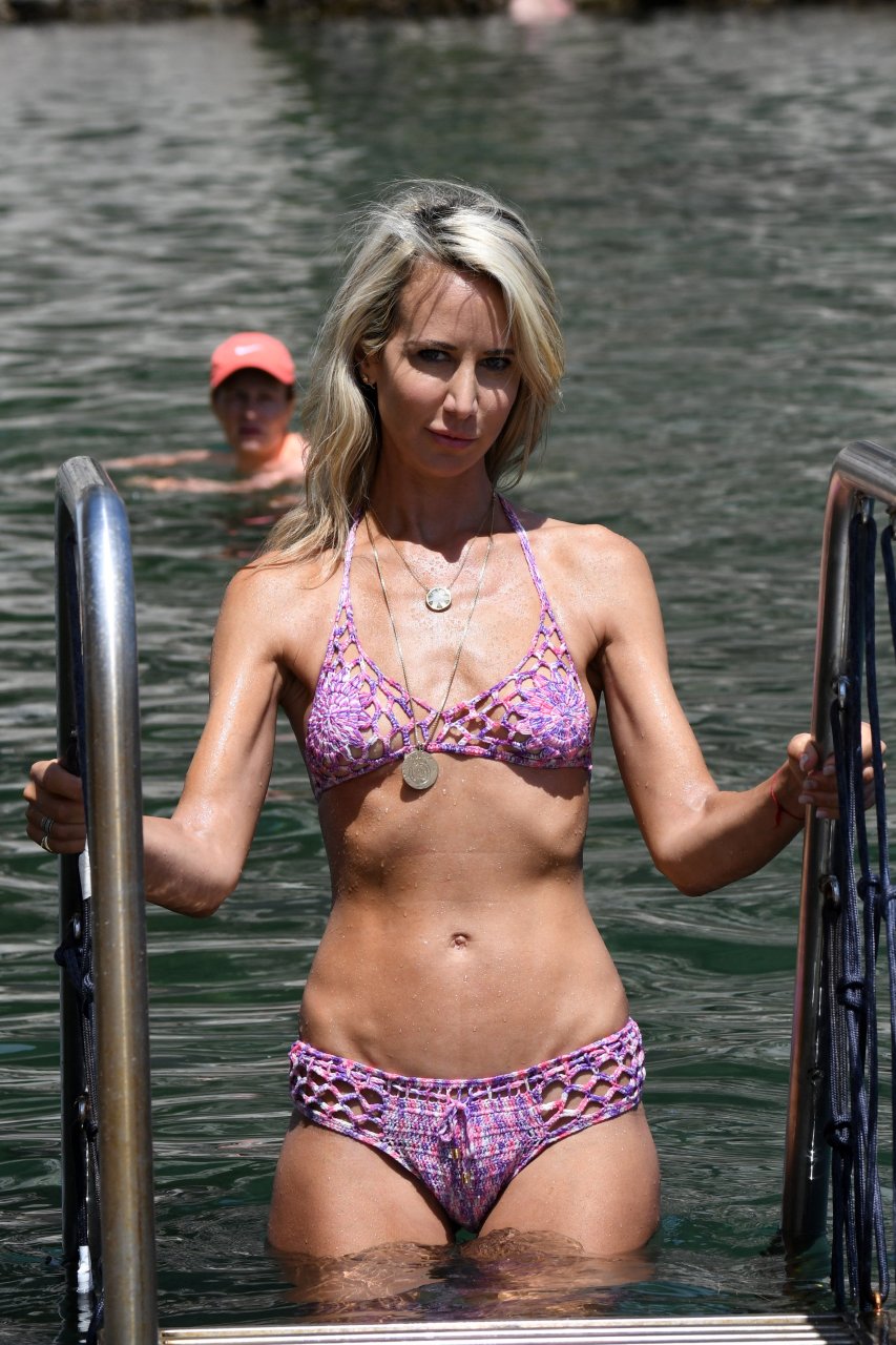 La modelo Lady Victoria Hervey fue vista en bikini y en un traje de baño rosa en el Hotel Regina Isabella en Ischia, Italia (julio de 2018) + algunas fotos de desnudos de Instagram.
