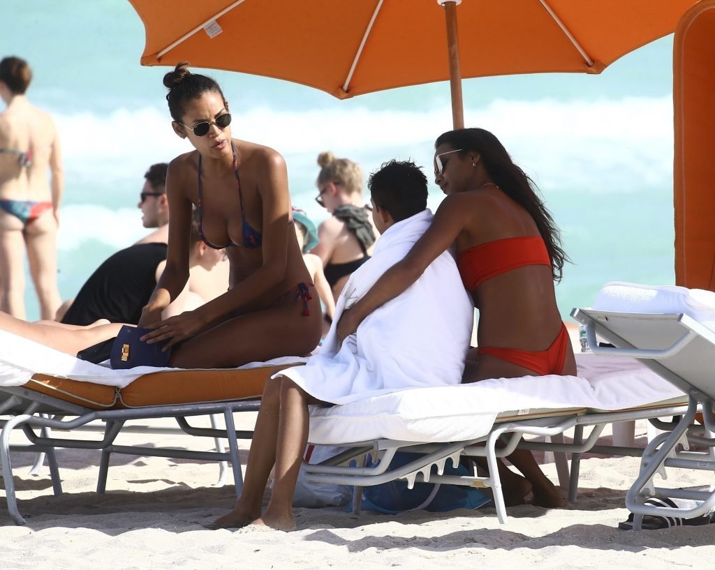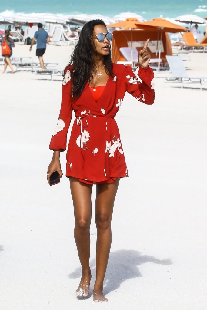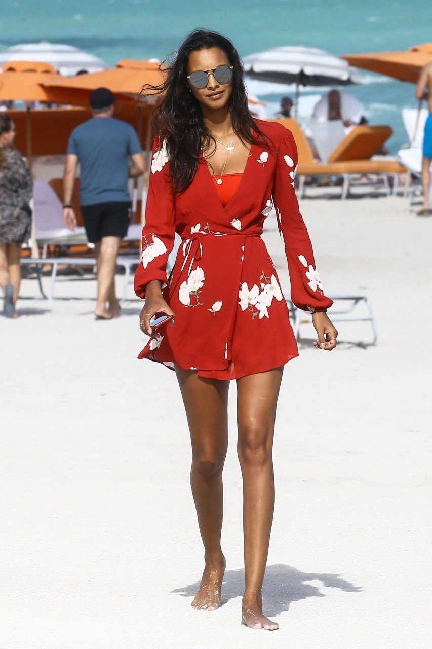 Top model Lais Ribeiro (24) disfruta de un día en la playa en Miami Beach, 22/02/2018.