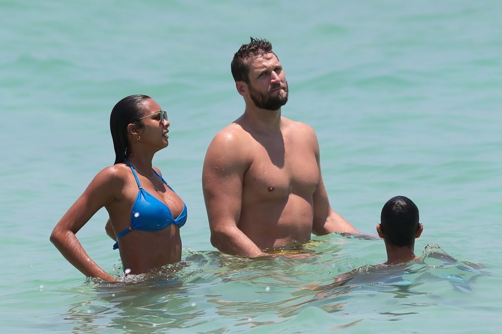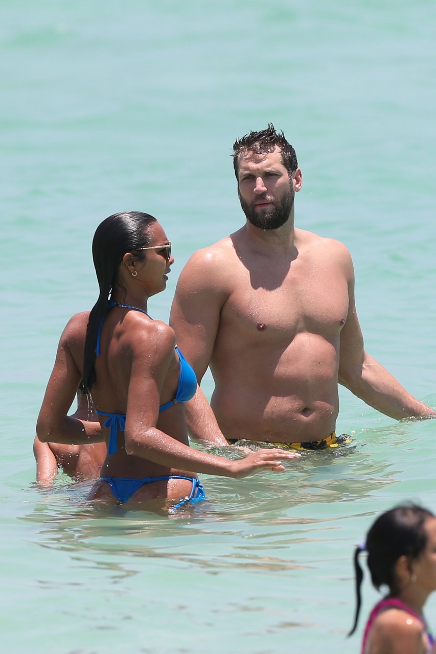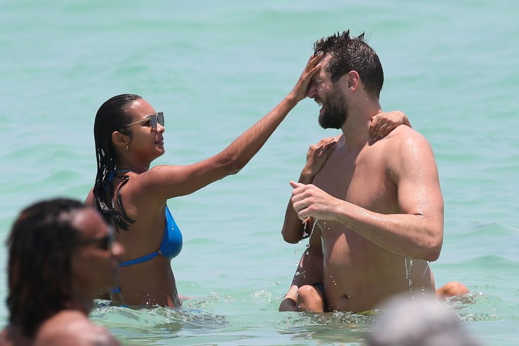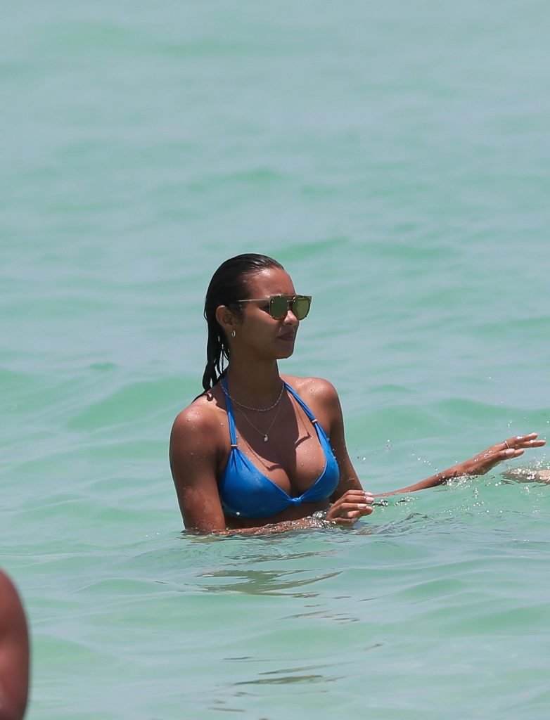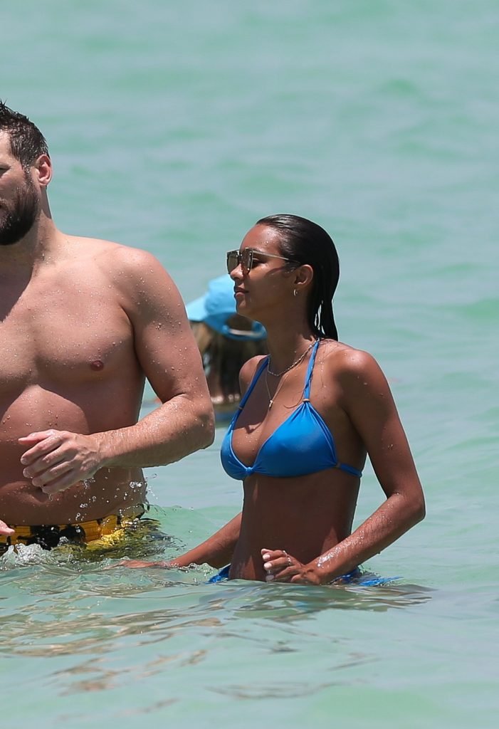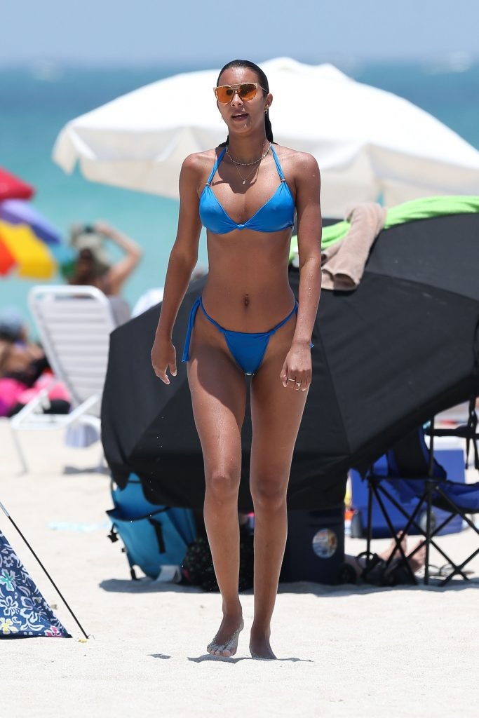 Lais Ribeiro lleva un pequeño bikini azul mientras disfruta un día con su novio en Miami Beach, 27/05/2017. Lais Ribeiro es una supermodelo brasileña y estrella de Victoria’s Secret. Edad – 26.