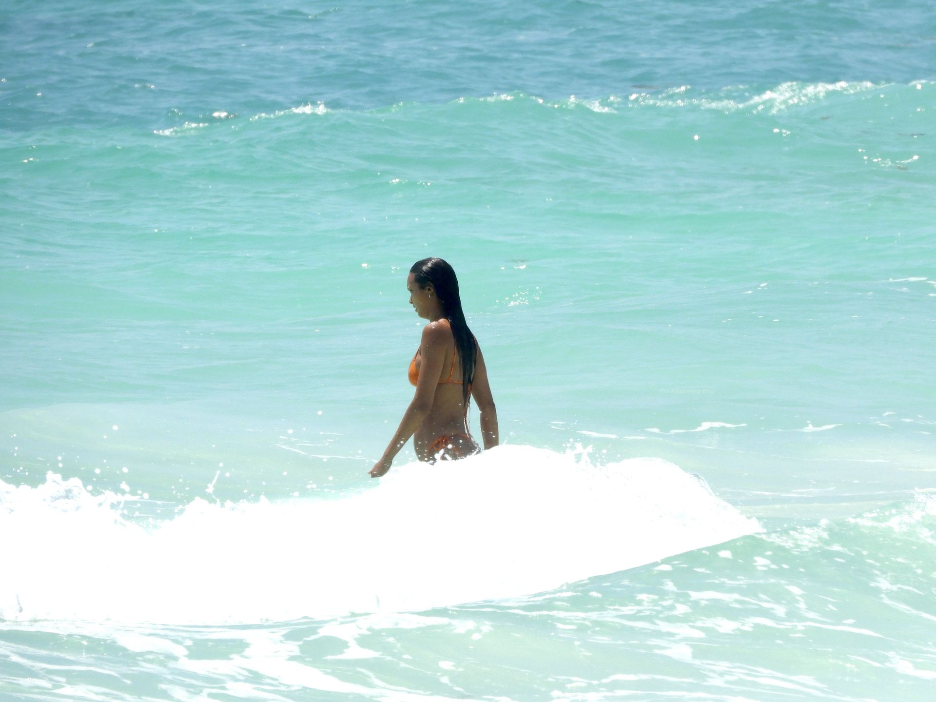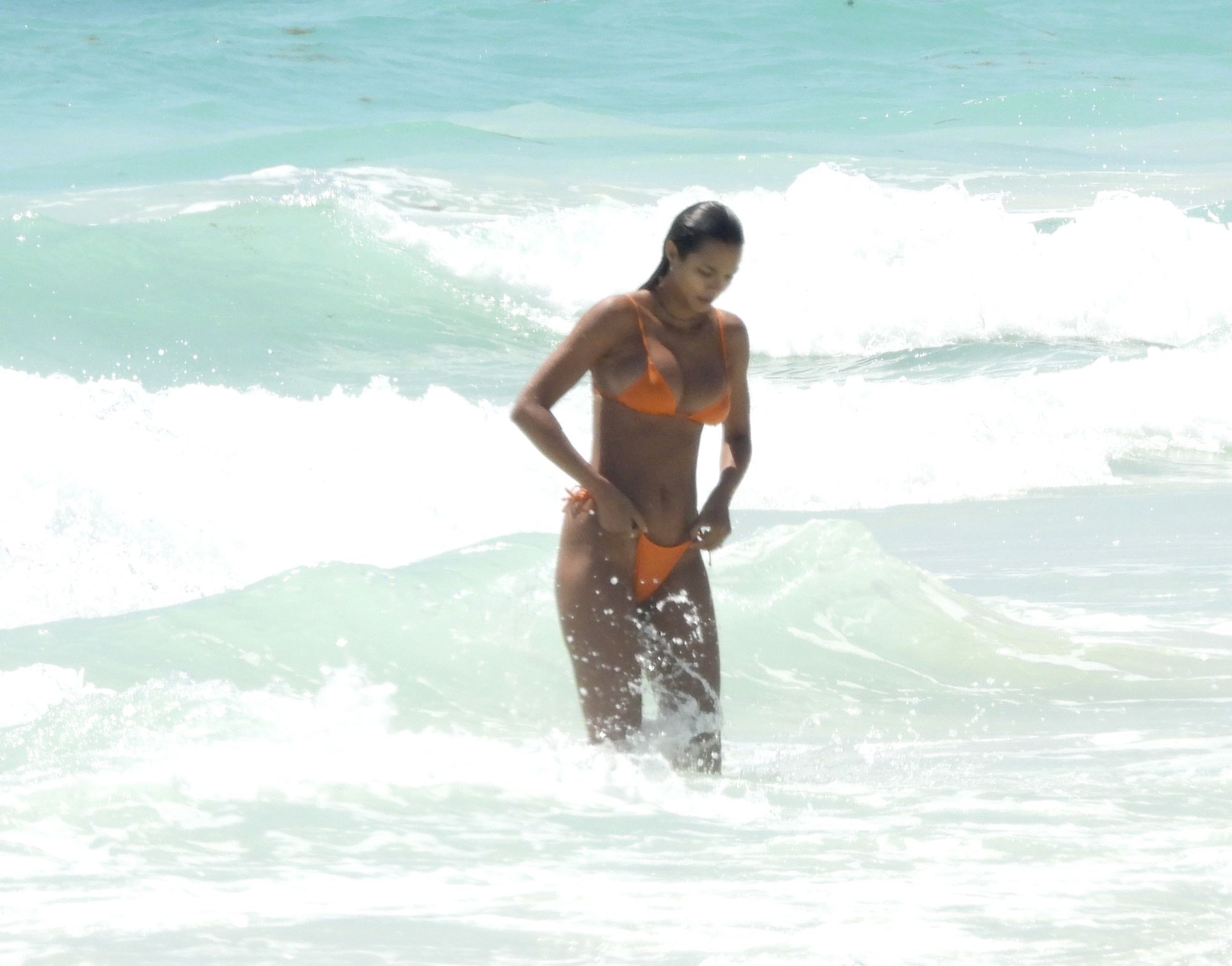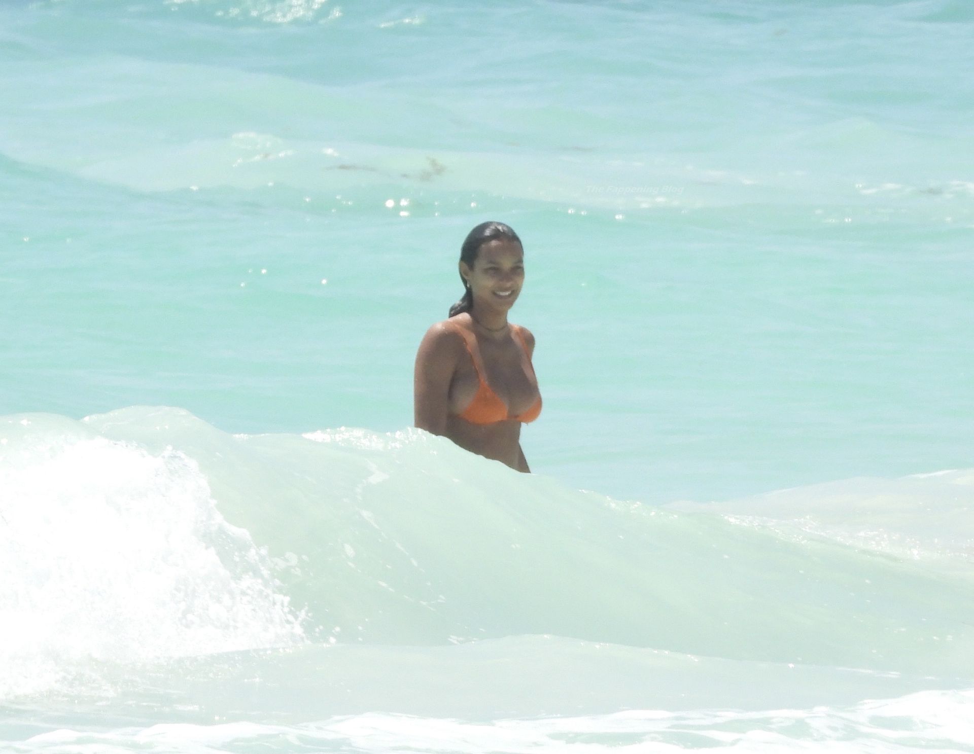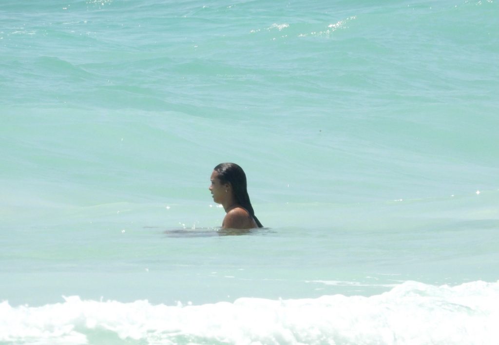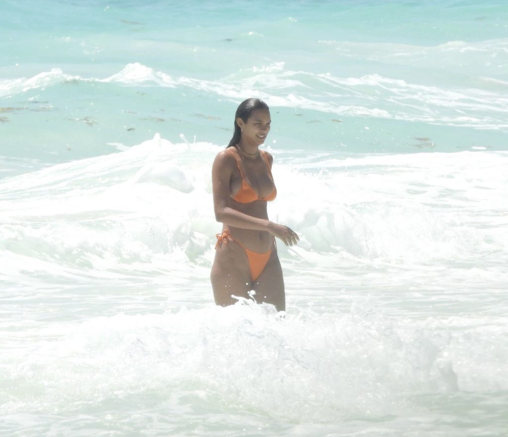 La modelo de Victoria’s Secret Lais Ribeiro (30) se da un baño en el océano mientras está de vacaciones en Tulum, México, 29/03/2021.