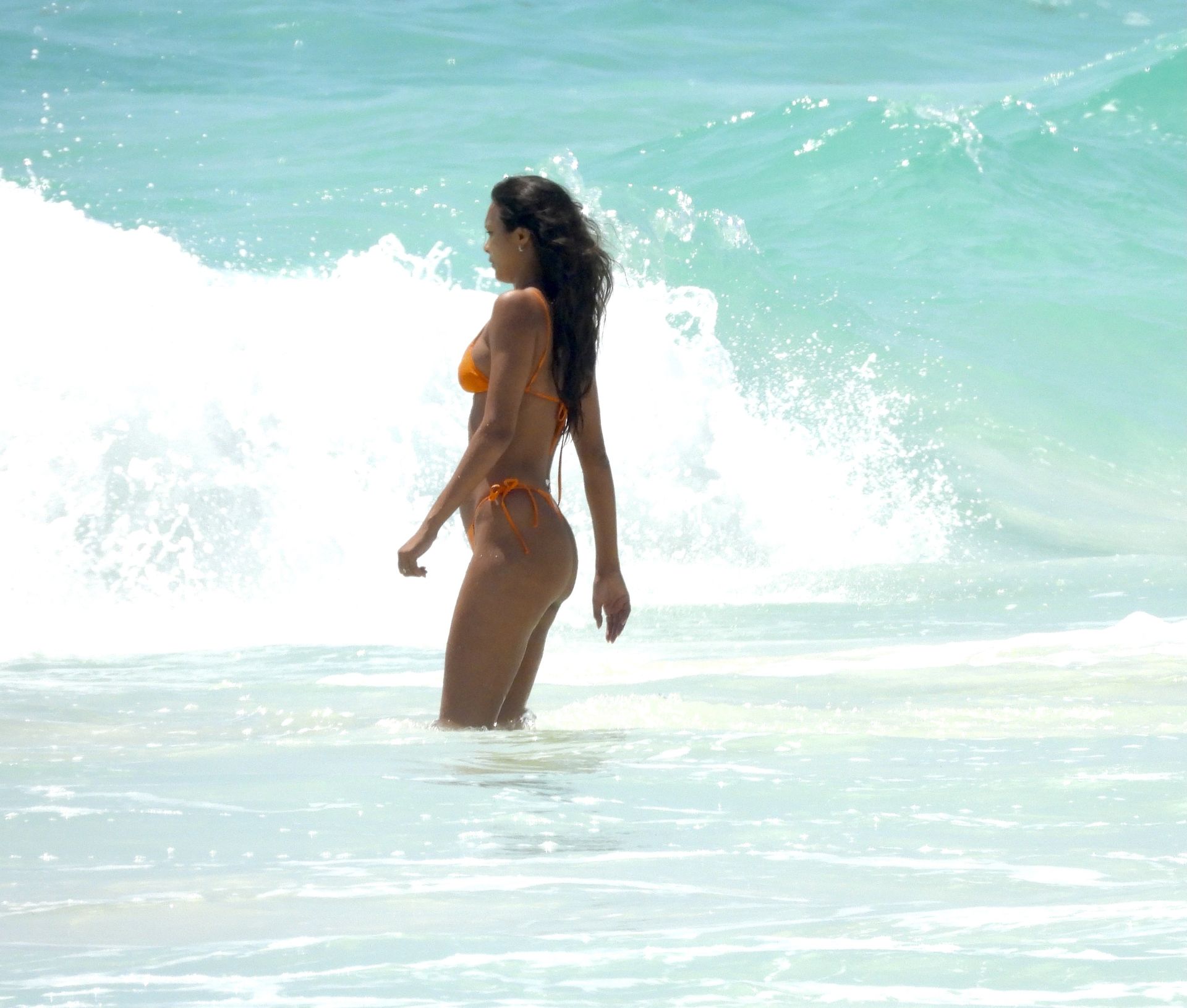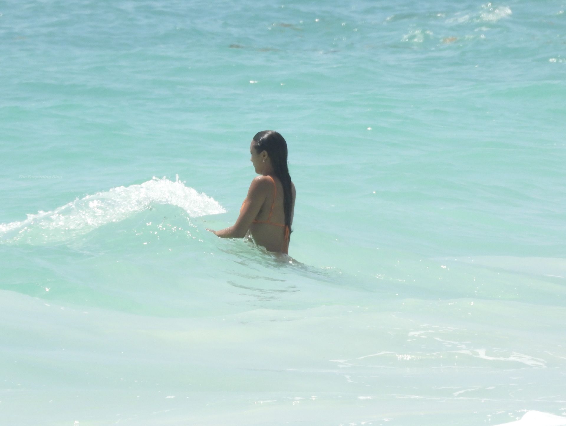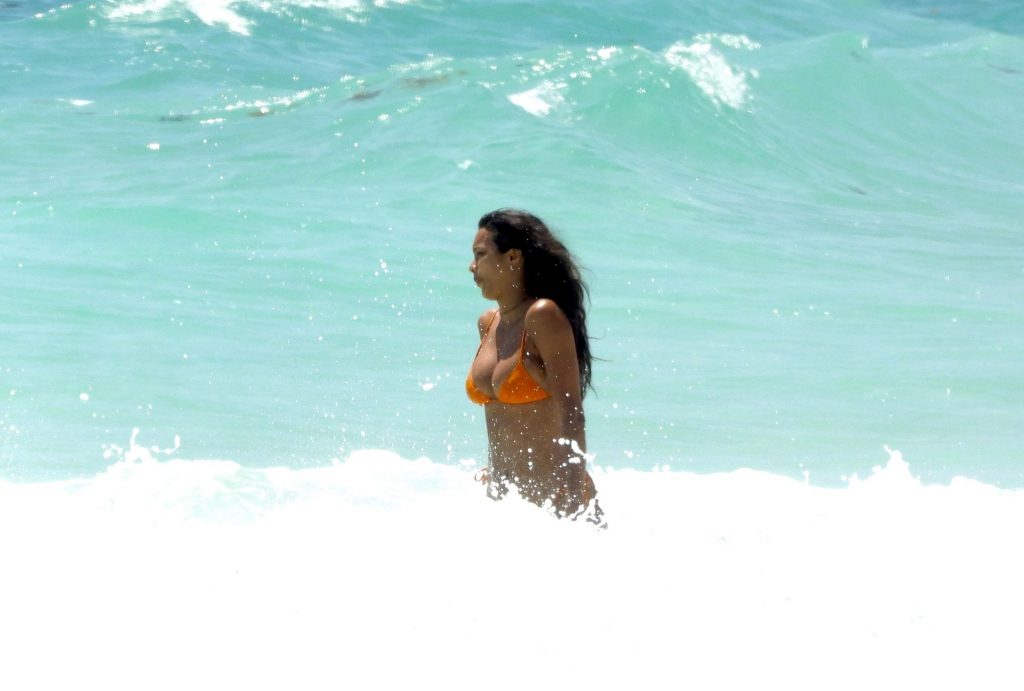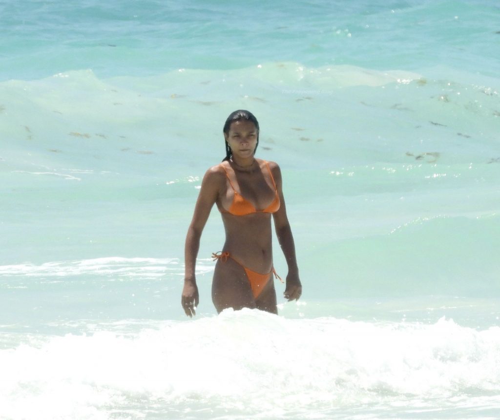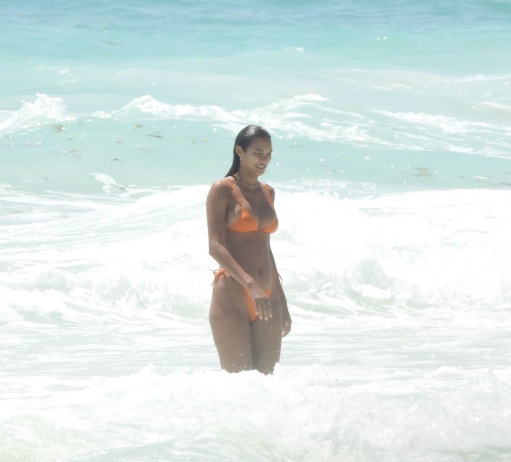 La modelo de Victoria’s Secret Lais Ribeiro (30) se da un baño en el océano mientras está de vacaciones en Tulum, México, 29/03/2021.