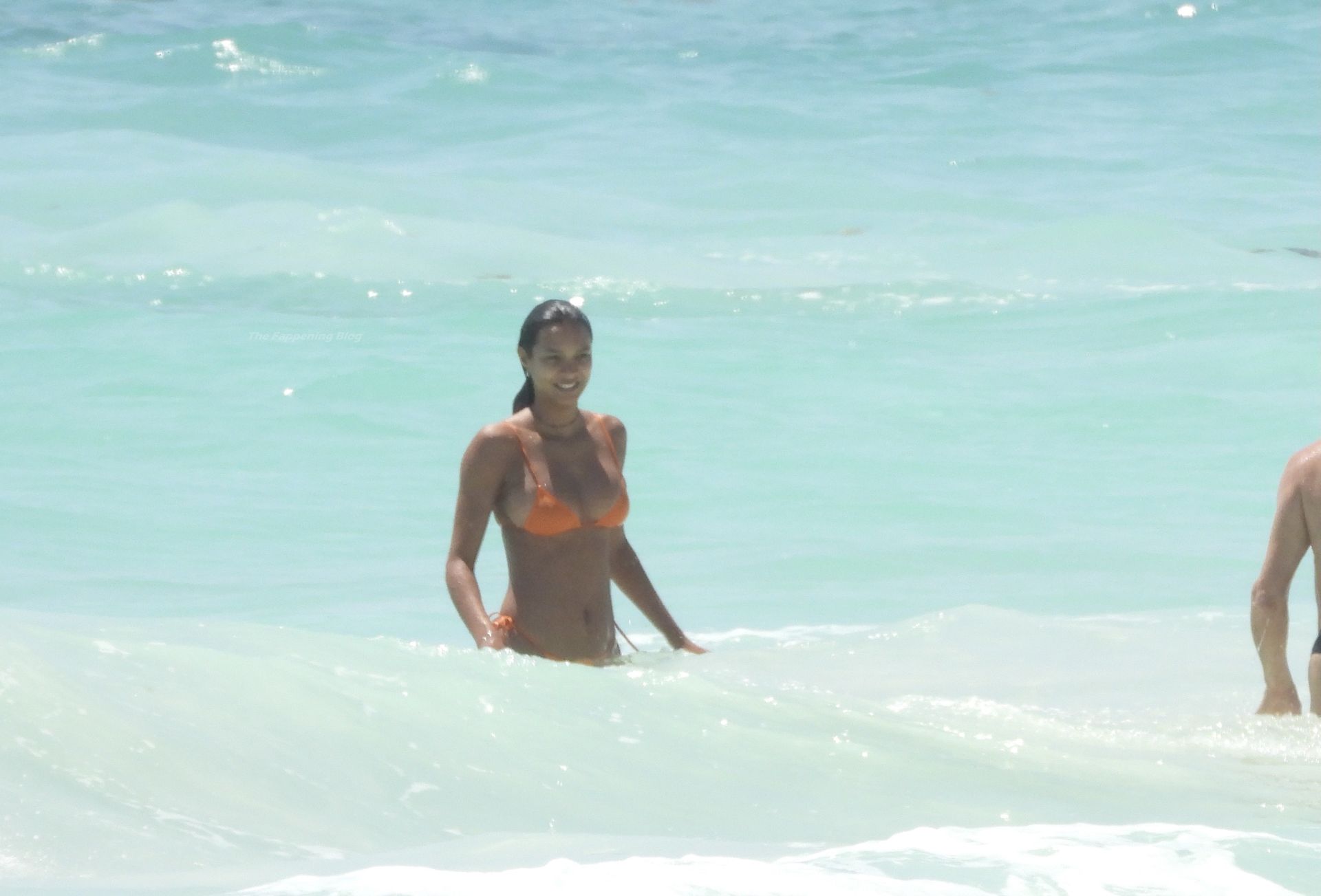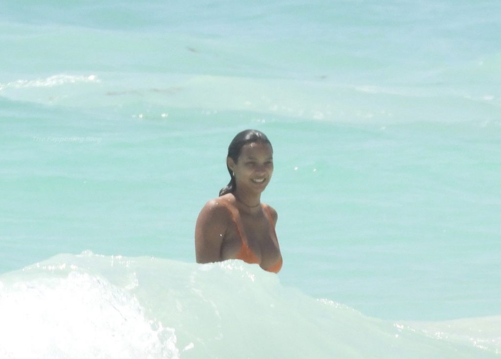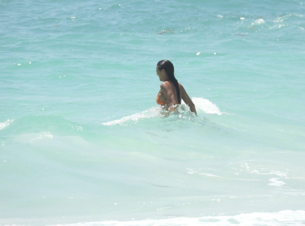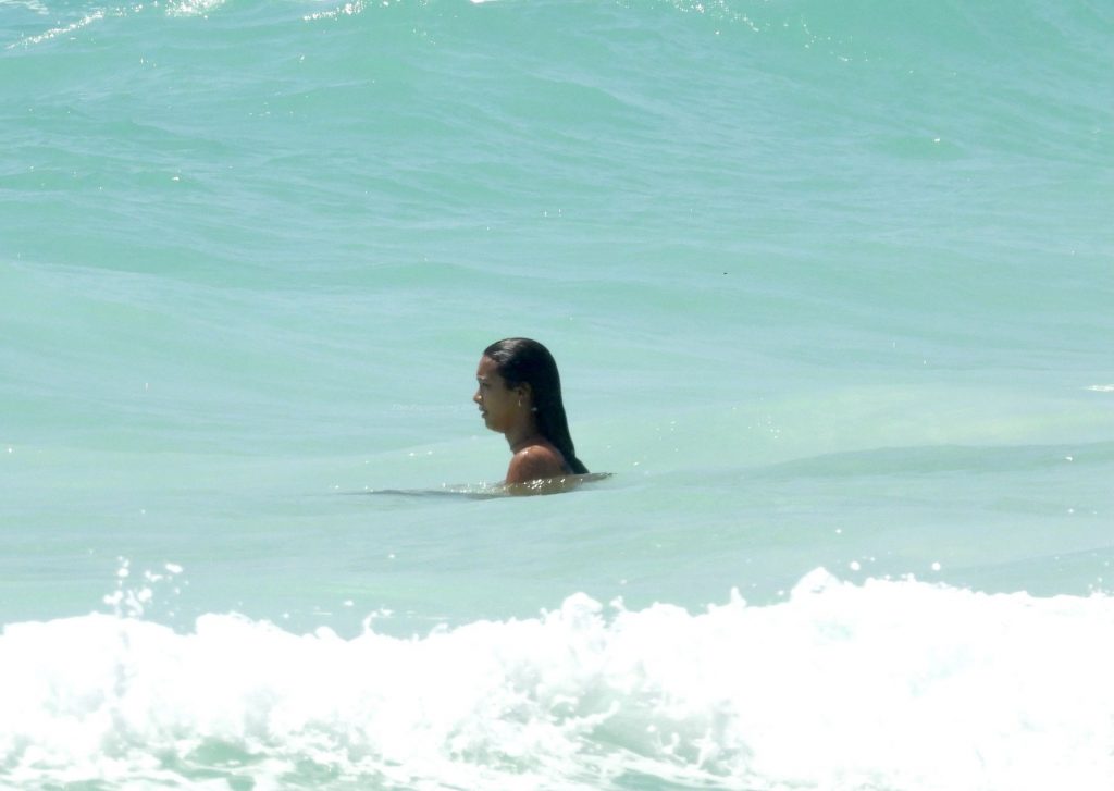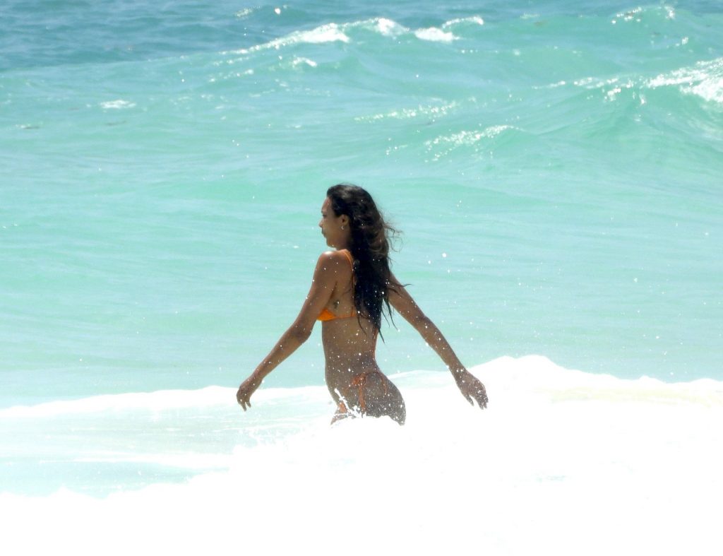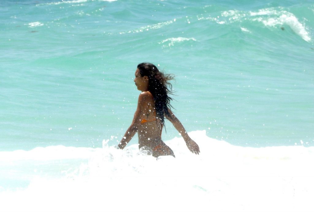 La modelo de Victoria’s Secret Lais Ribeiro (30) se da un baño en el océano mientras está de vacaciones en Tulum, México, 29/03/2021.