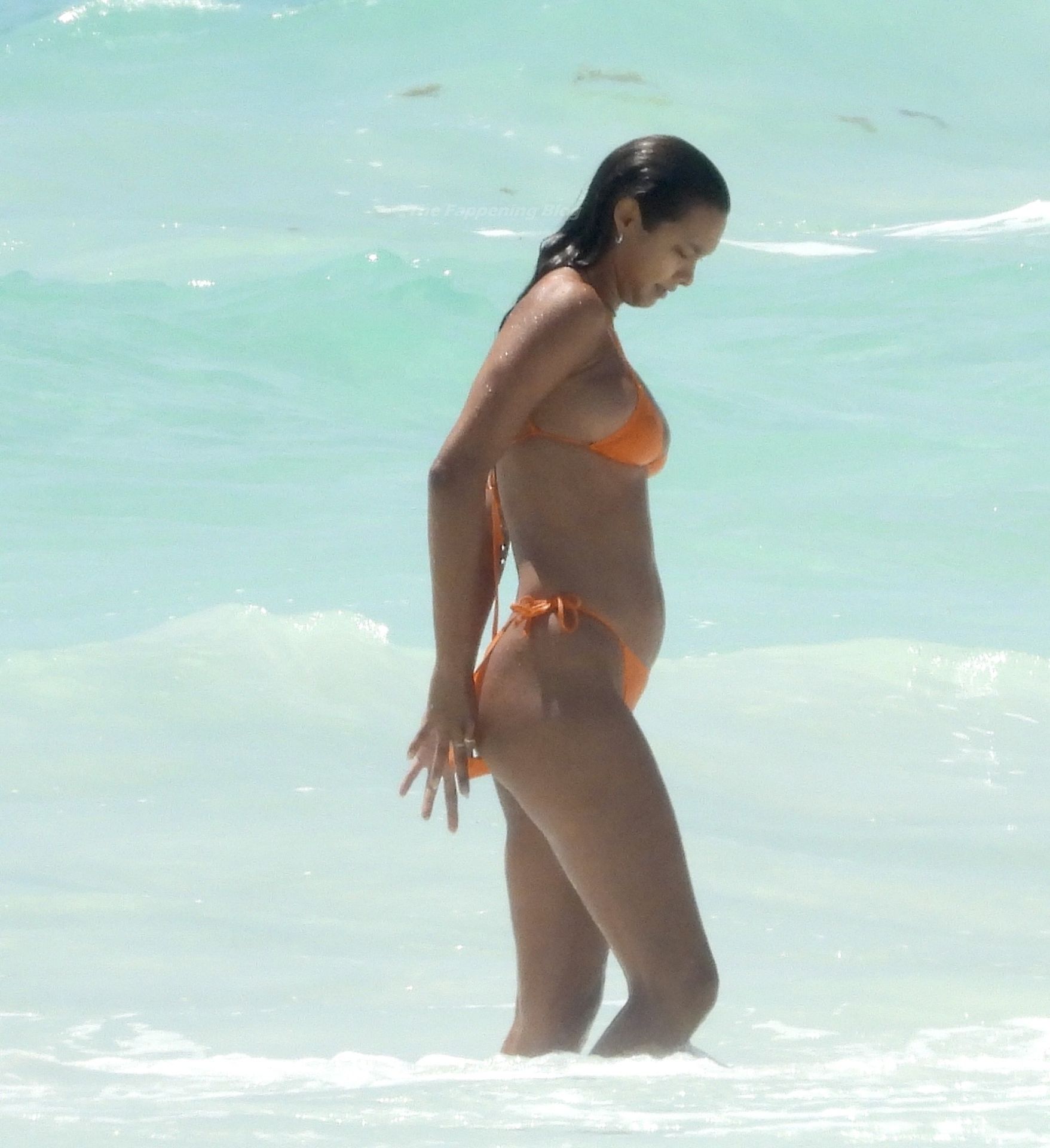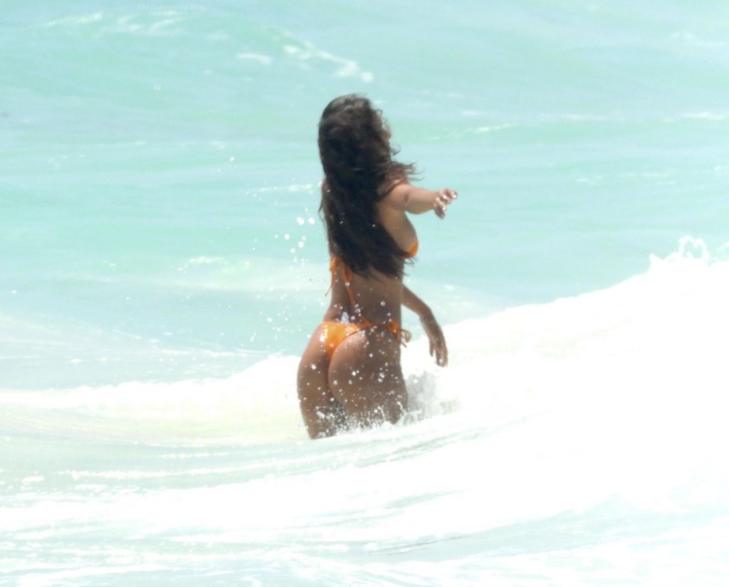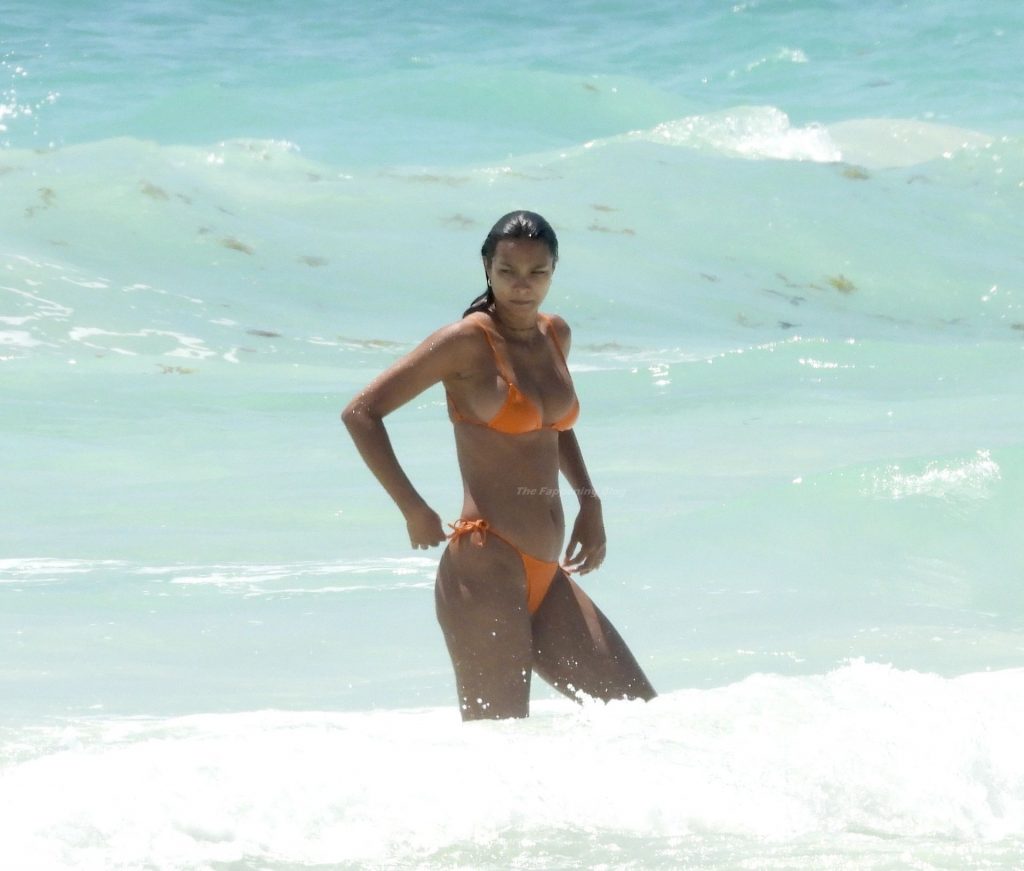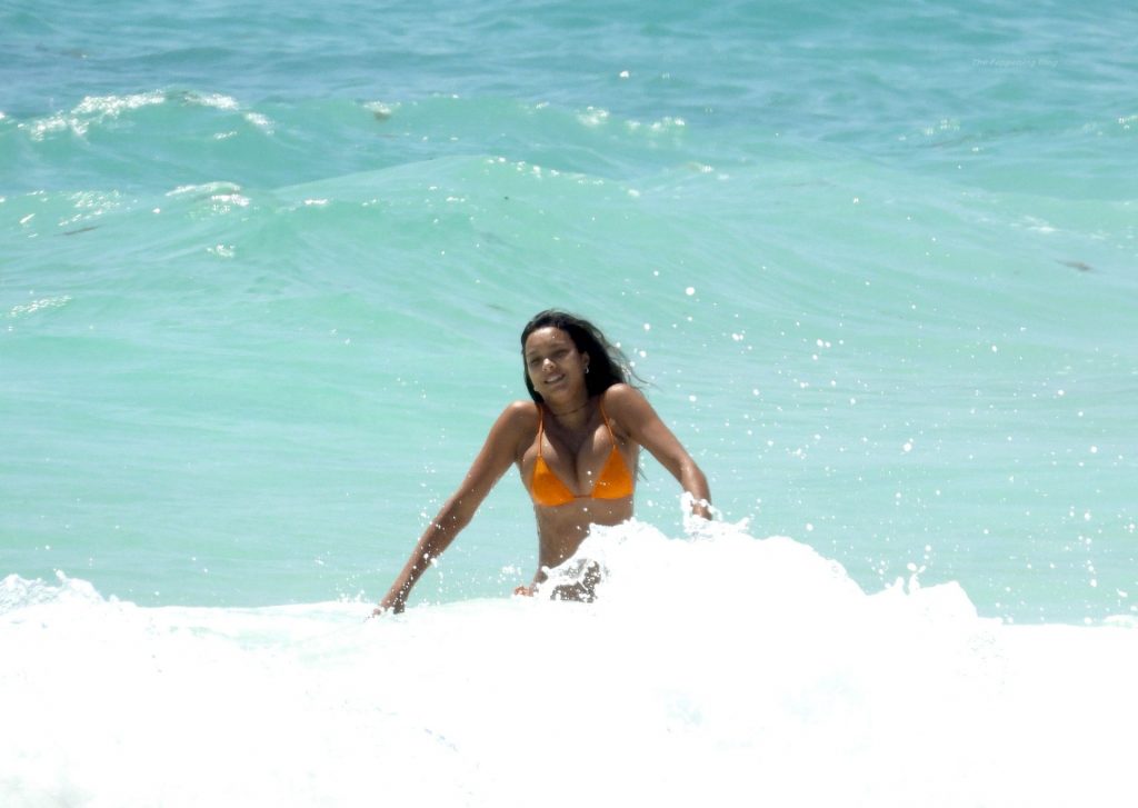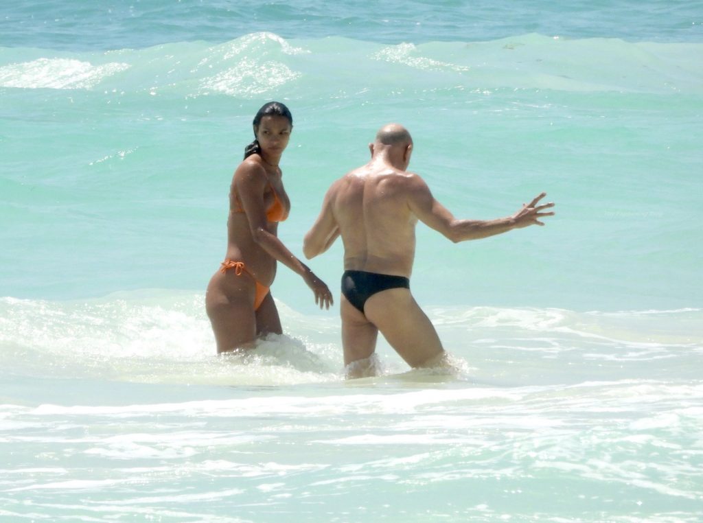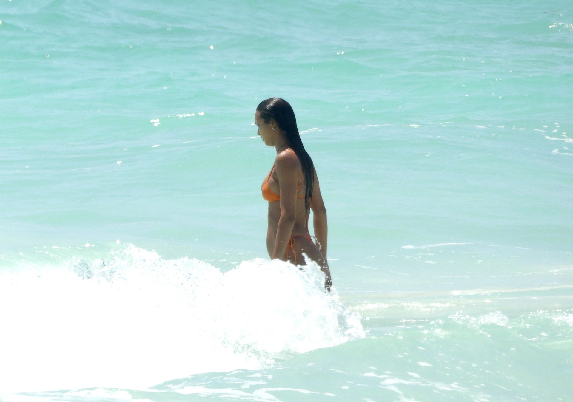 La modelo de Victoria’s Secret Lais Ribeiro (30) se da un baño en el océano mientras está de vacaciones en Tulum, México, 29/03/2021.