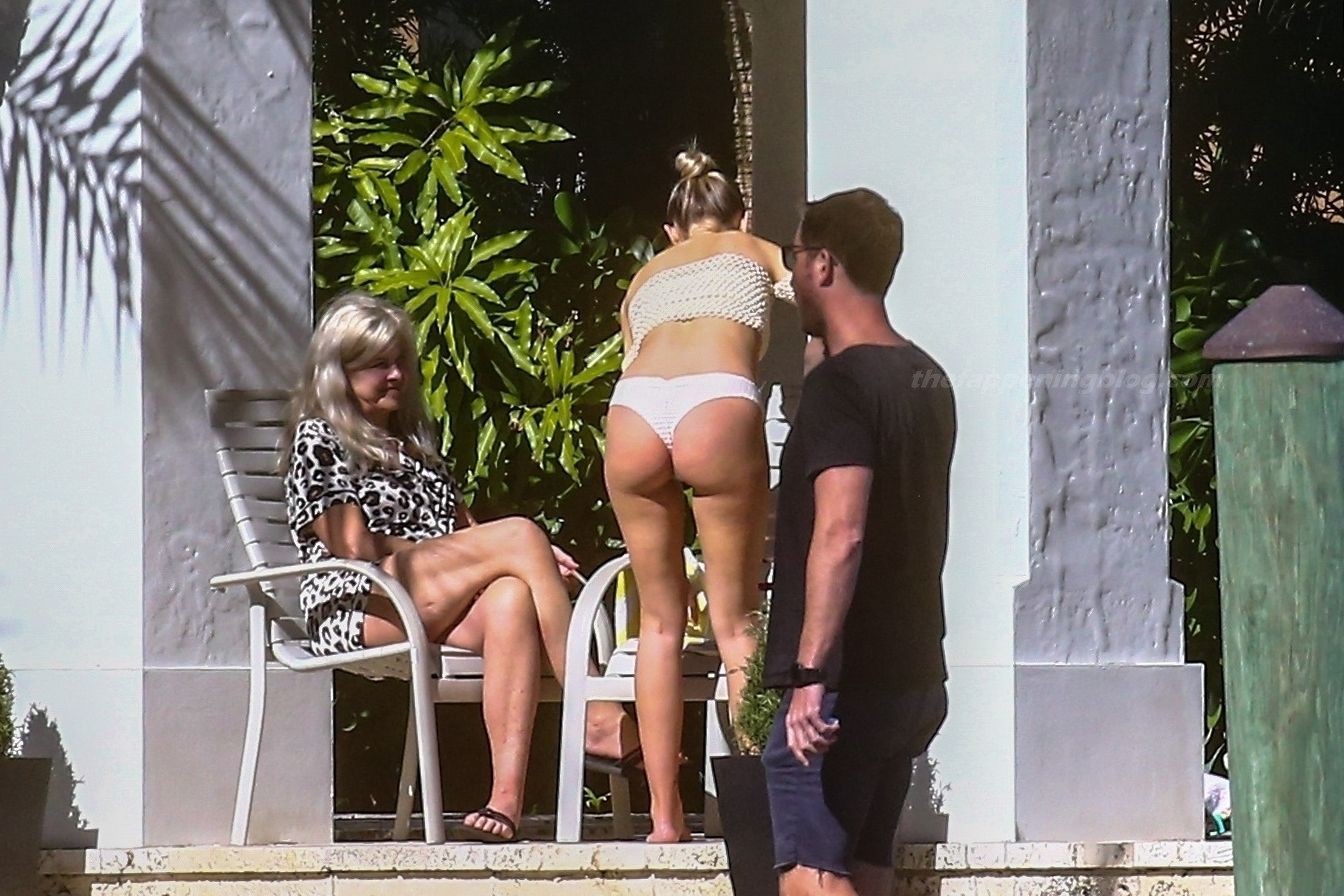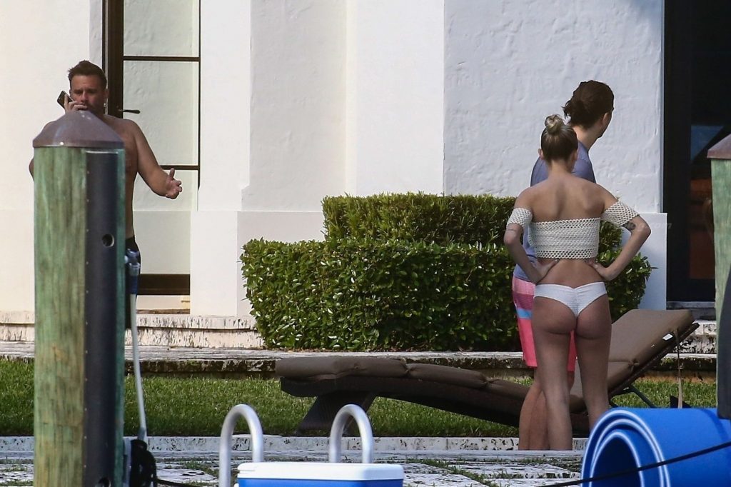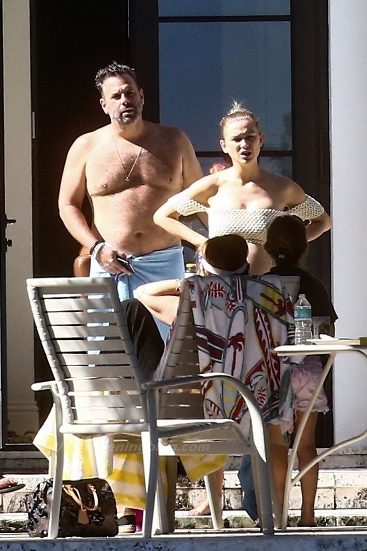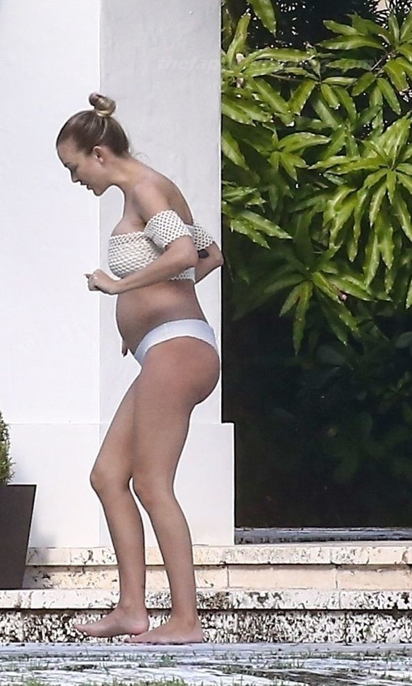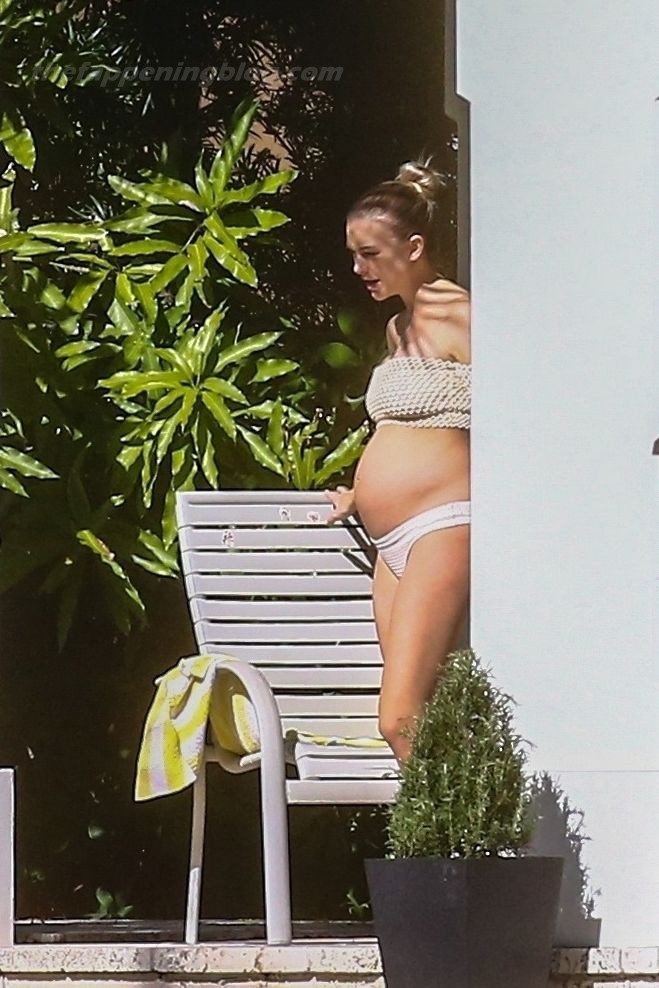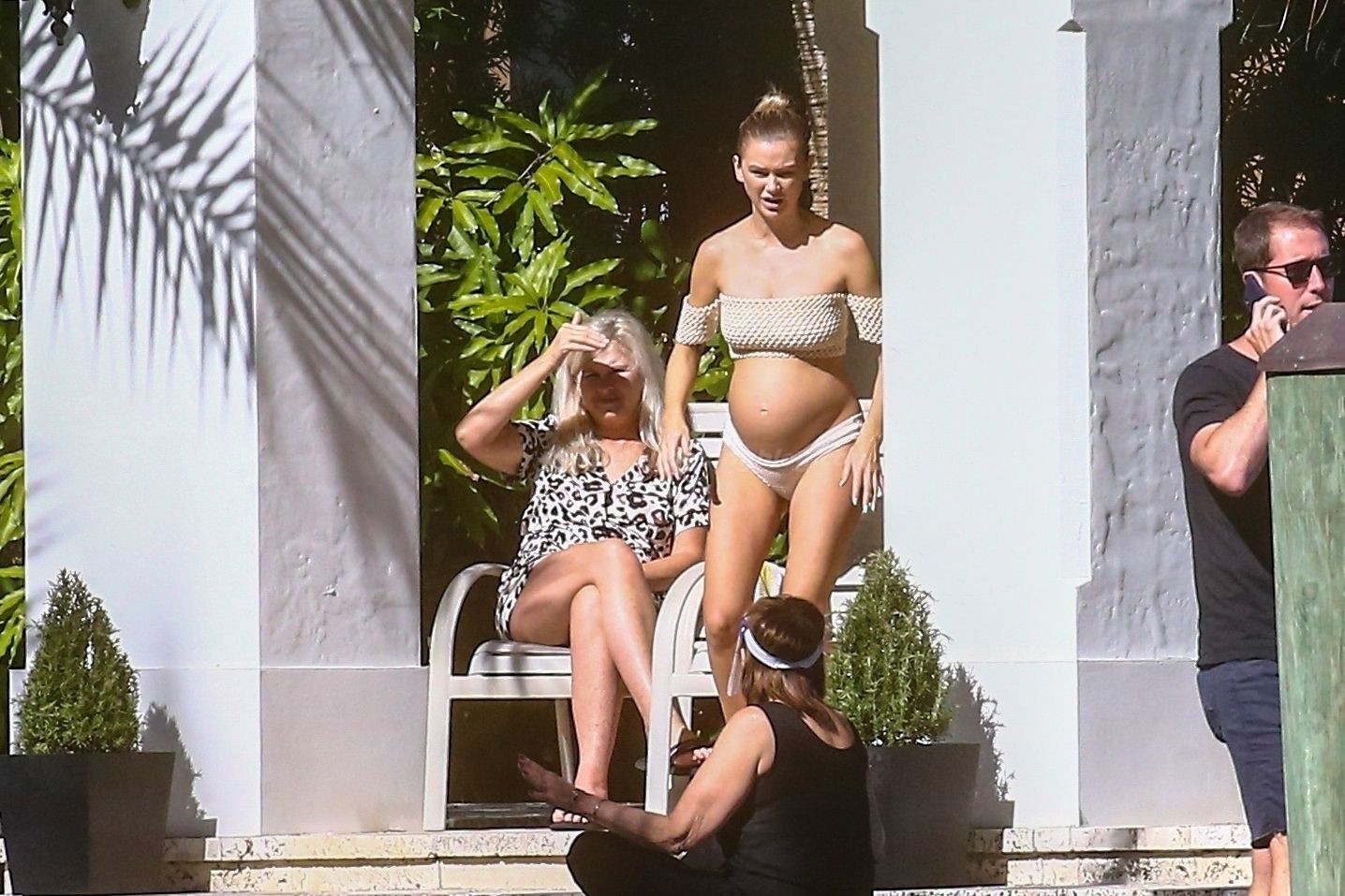 La embarazada Lala Kent lleva un bikini crema mientras pasa el rato con Randall Emmett y su familia fuera de su casa en Miami hoy. A Lala le encantó tomar un poco de sol mientras lucía orgullosa su barriga de embarazada.