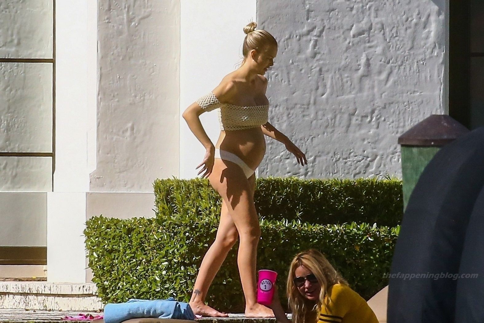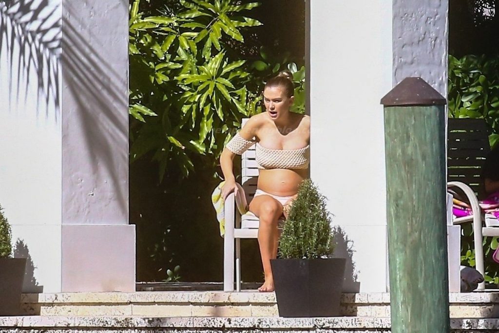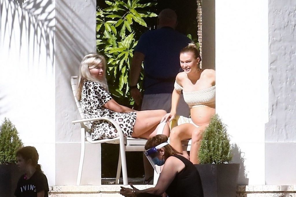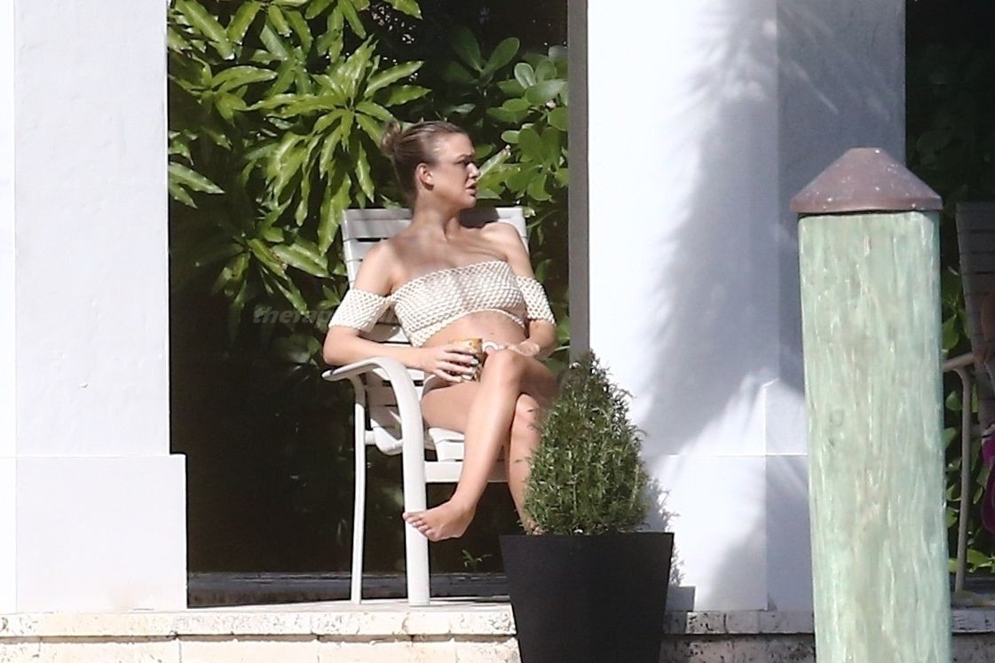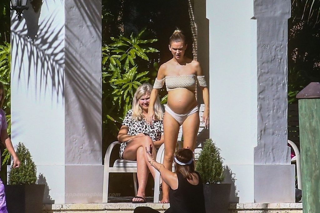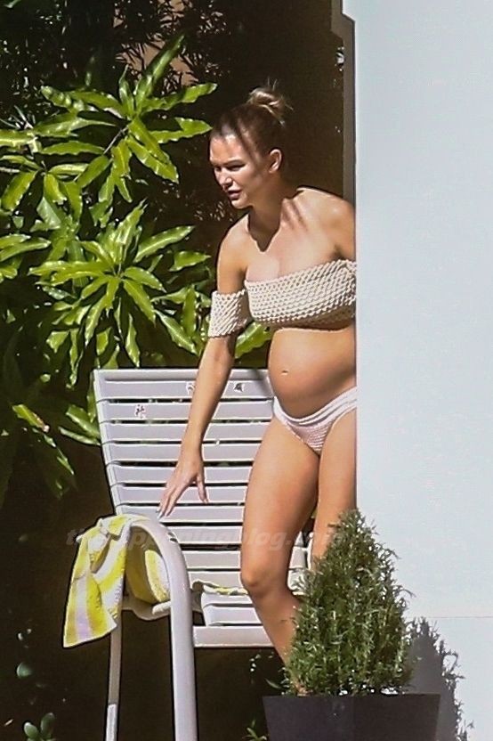 La embarazada Lala Kent lleva un bikini crema mientras pasa el rato con Randall Emmett y su familia fuera de su casa en Miami hoy. A Lala le encantó tomar un poco de sol mientras lucía orgullosa su barriga de embarazada.