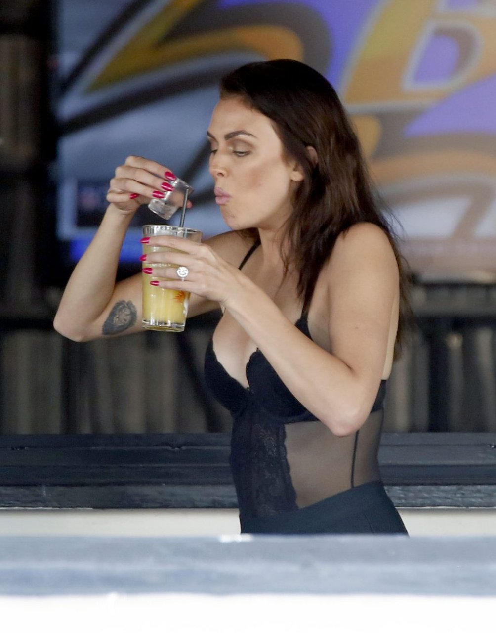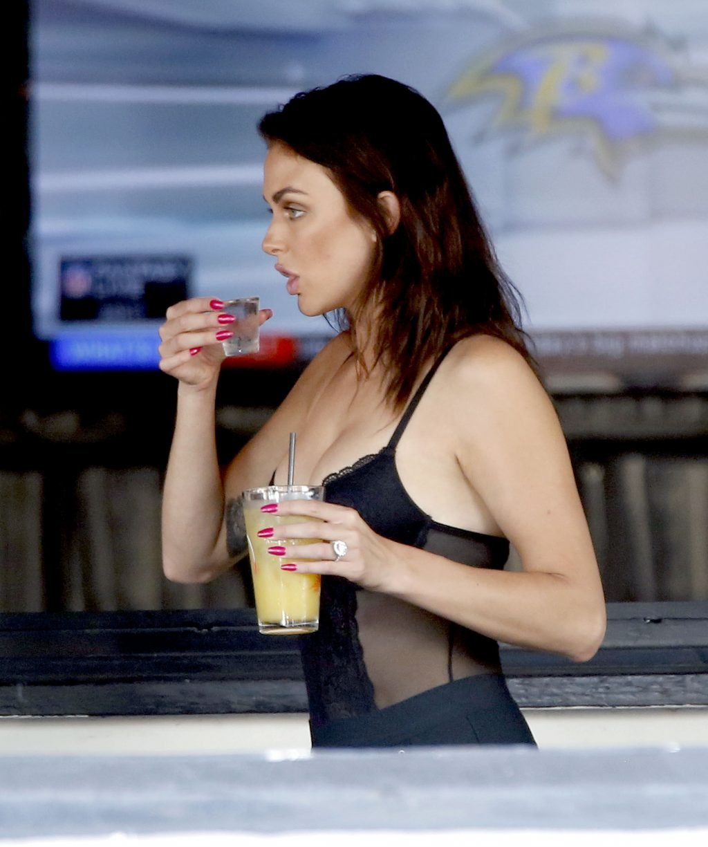 ¡Cuatro tragos de tequila y conducir! ¡No hay problema para Lala Kent! Tomando más de cuatro tragos de tequila durante un almuerzo borracho a última hora de la tarde en el bar The Belmont en West Hollywood, 30/09/2018.