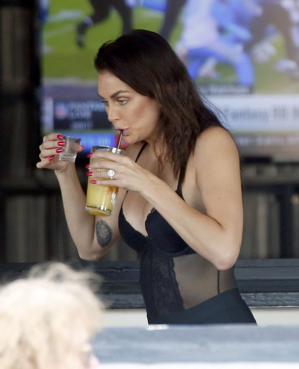¡Cuatro tragos de tequila y conducir! ¡No hay problema para Lala Kent! Tomando más de cuatro tragos de tequila durante un almuerzo borracho a última hora de la tarde en el bar The Belmont en West Hollywood, 30/09/2018.
